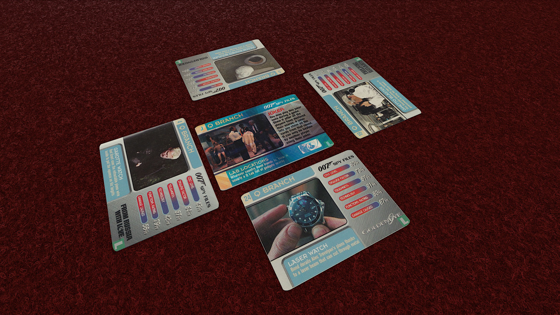The cards game in four types: Allies, Location, Q Branch, Vehicles and Villains. You choose one of these categories to play and shuffle that deck of cards between each player.