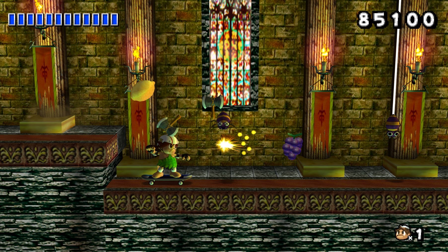 Like Bonk, this is another classic 2D platformer, although Adventure Island is probably more forgotten than Bonk. This is another Hudson Selects remake with 3D graphics, with a nice visual look to it. Unlike Bonk, though, this version is not redesigned, but is an identical copy of the NES version with new graphics.