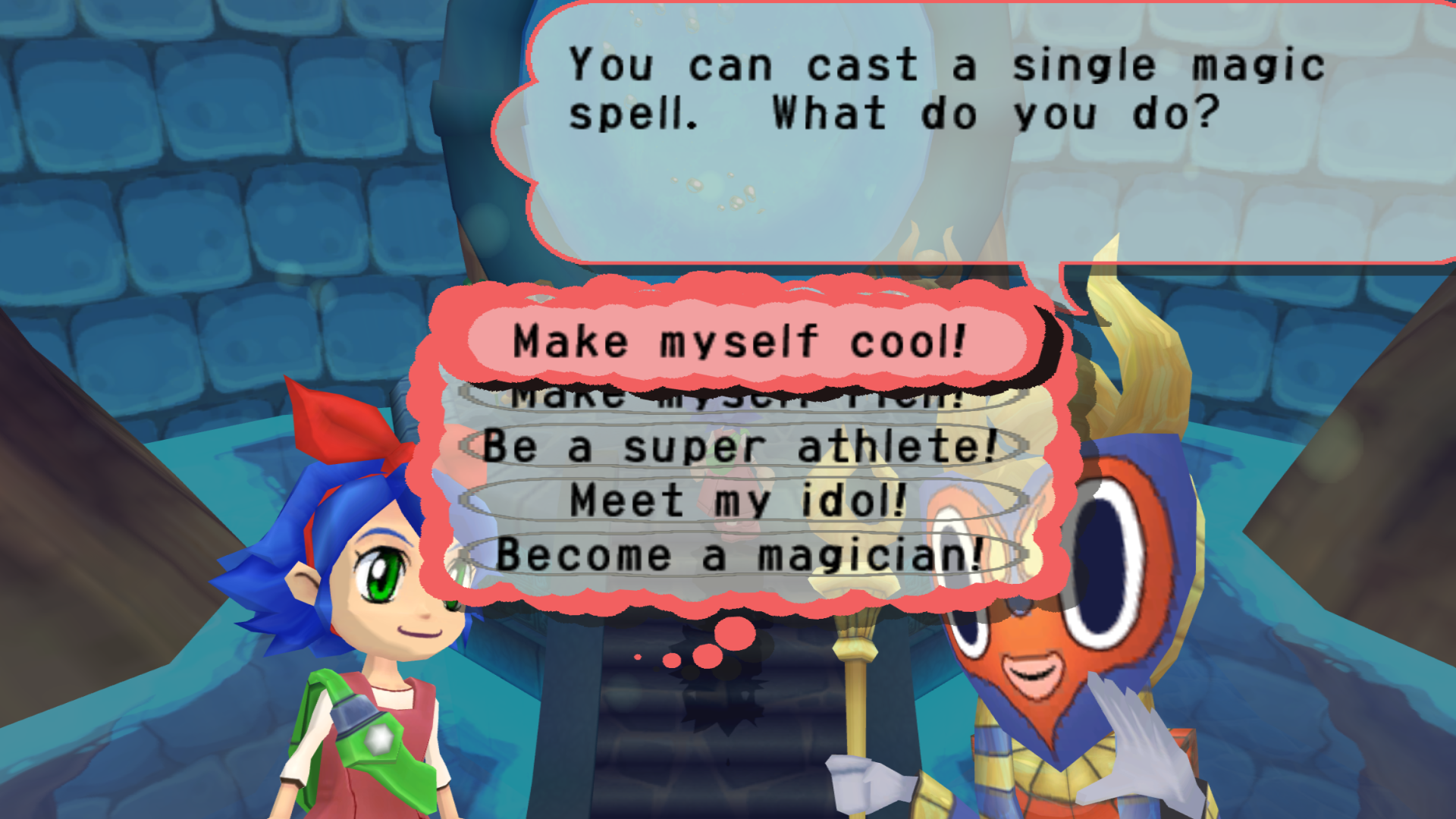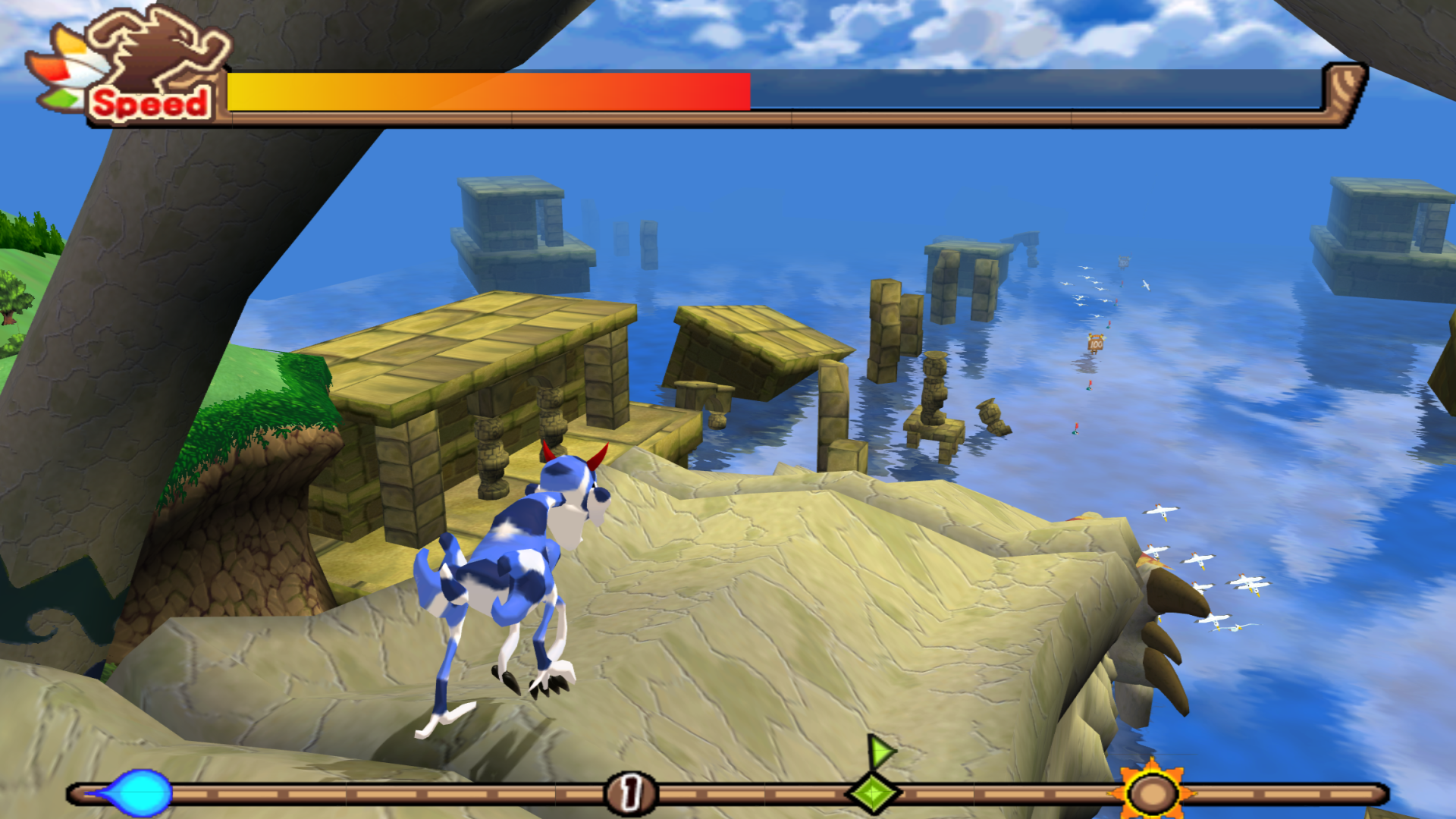 Using a magical portal on the island, you can create your own monsters. You start off with a frame (you unlock more as you progress) and draw the head, body, arms, legs and tail. It’s similar to Tensai Bit-Land Glamon Battle, although much simpler, making it easier to create but you can’t really fine-tune anything. With the very limited amount of accessories you have to begin with, you just end up with messy looking things. Still, it’s entertaining to have your drawings brought to life.