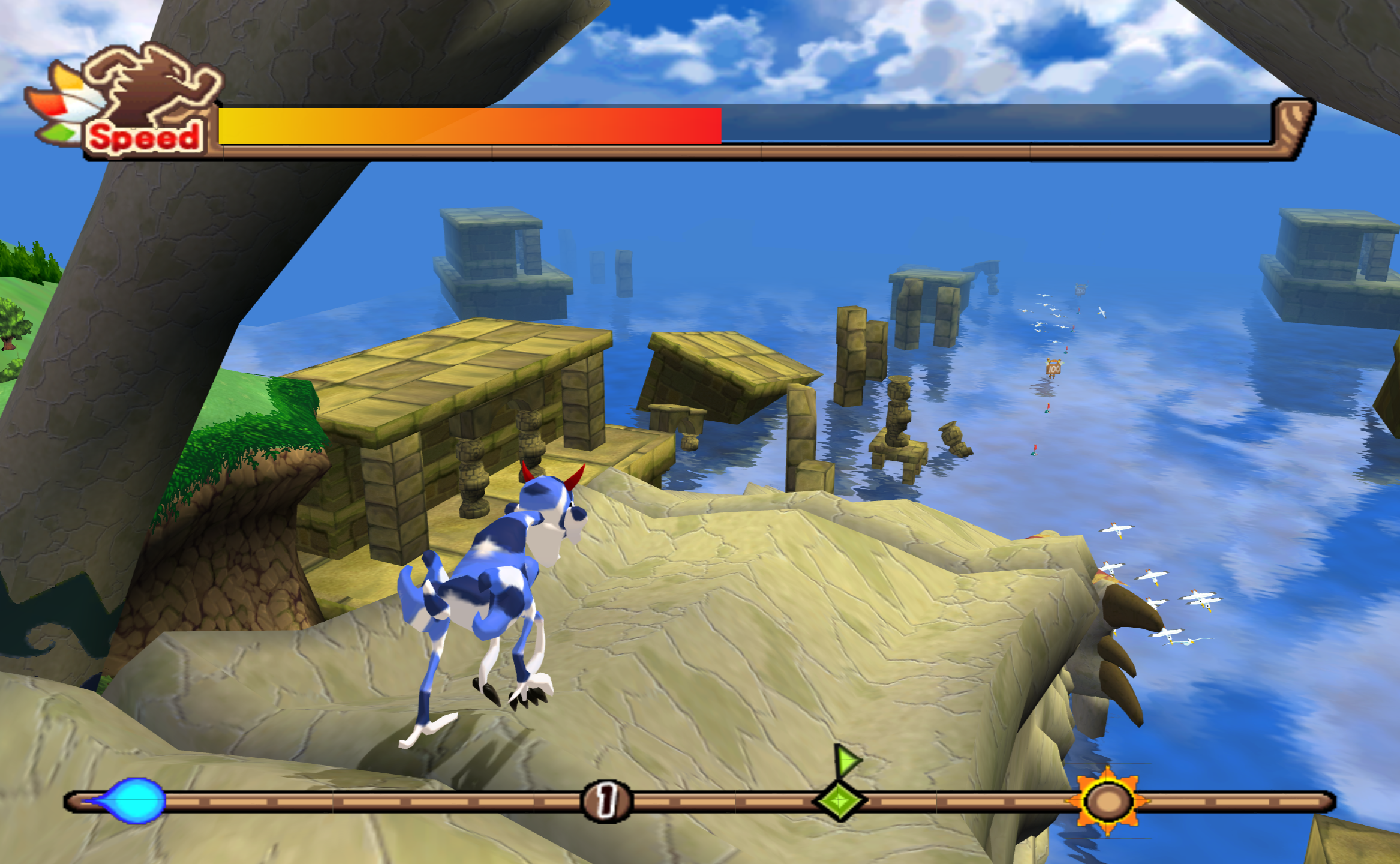 These creatures are sent off for the minigames, which are Mario Party-style bashing minigames. You need to hit a particular score to proceed, which the game doesn’t like to tell you, so you have no idea if you’re doing something completely wrong or if you just need to fine-tune what you’re doing. That said, the minigames themselves are good fun. There’s one where your creature spins in a bowl, knocking out other spinning creatures, that in itself is a much better game than the official Beyblade video game.