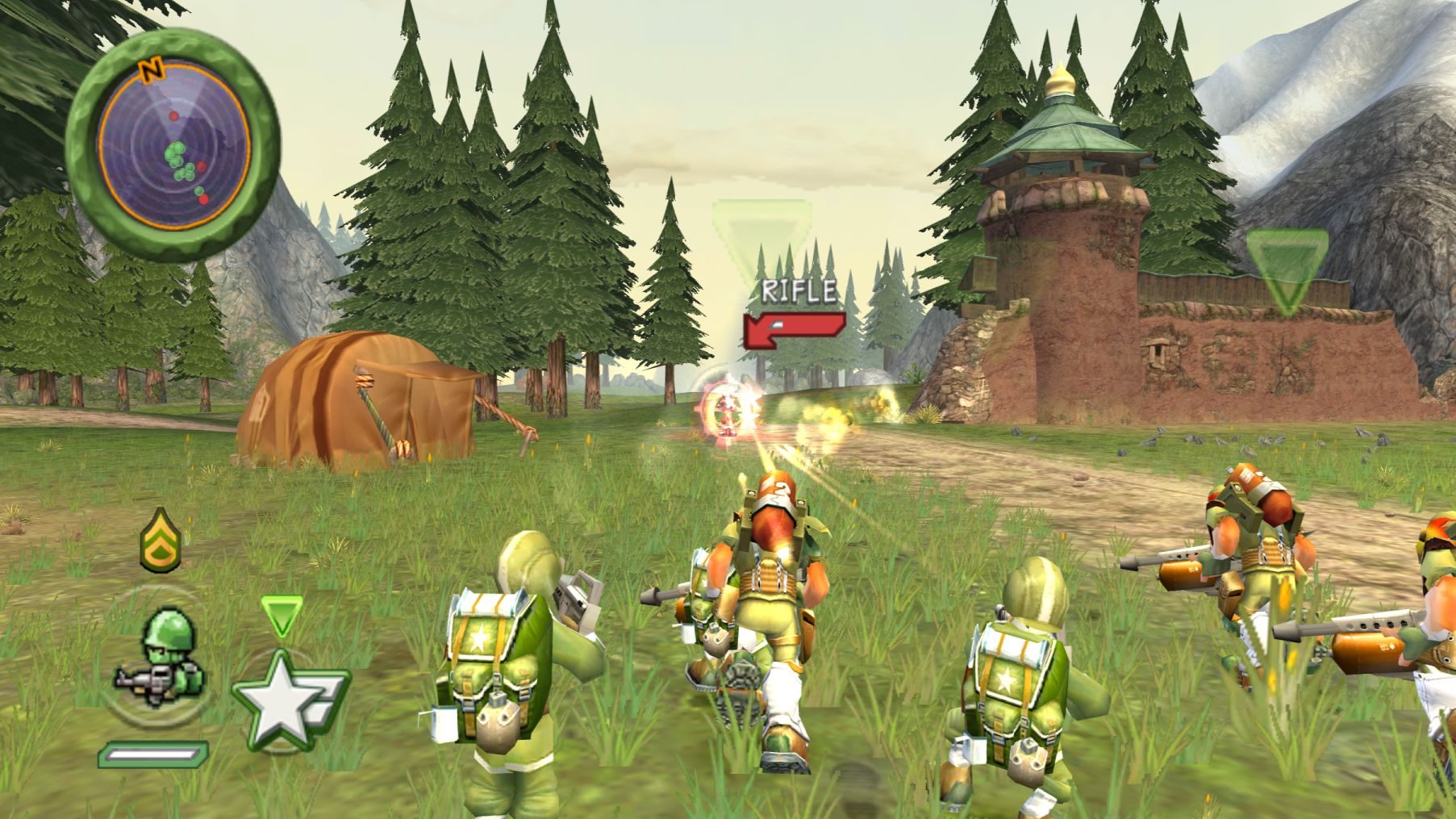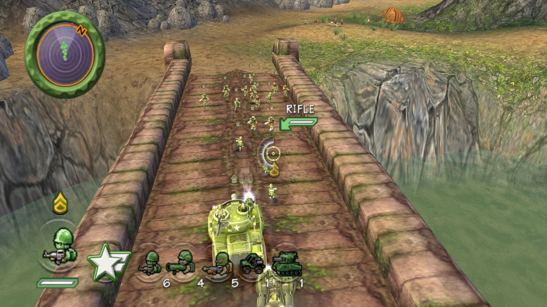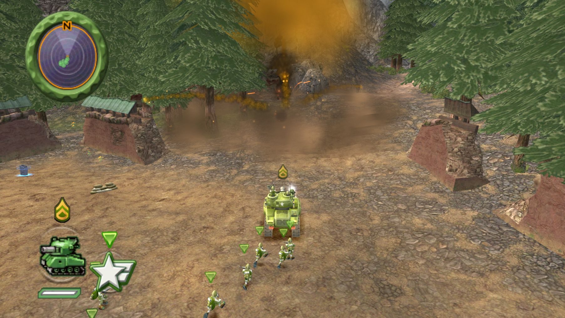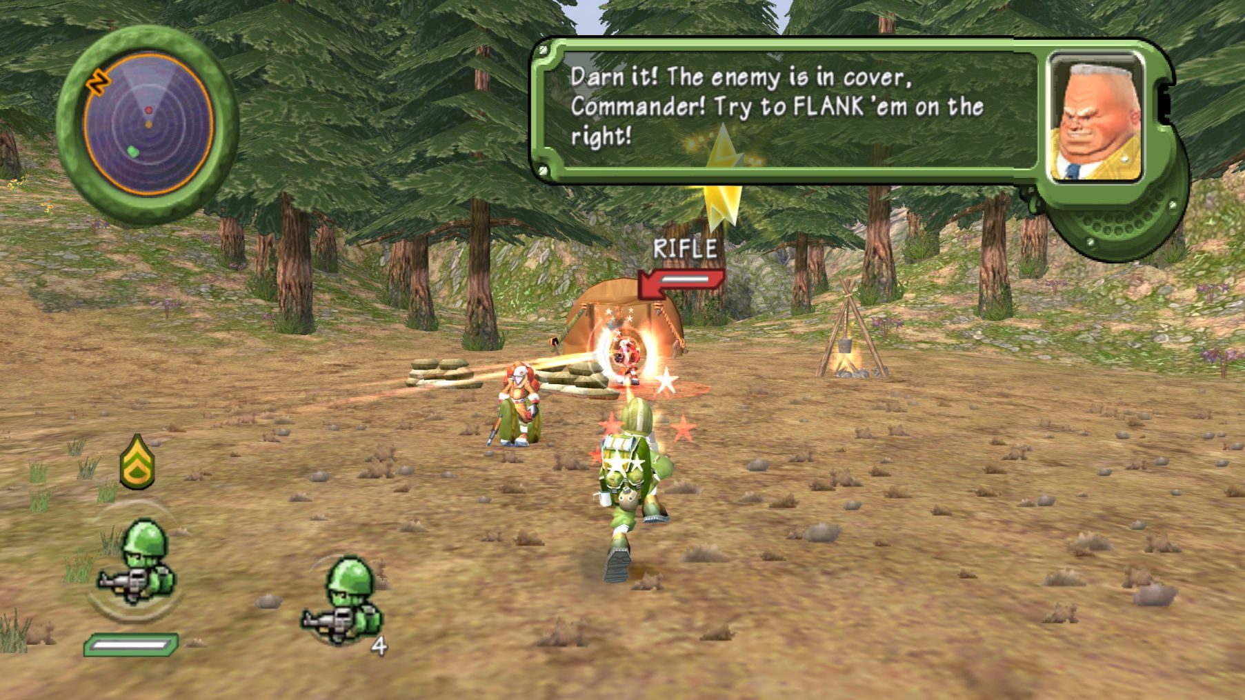 You control one unit and can move and shoot, with a lock-on to help target enemy units. You don’t have dual analogue control (which I’m not a fan of) as the C-stick is used to select between different unit types (or even individual units) to order them to stand guard, follow you or attack your target. The D-pad is only used to swap between two camera angles, so I feel like the D-pad would be better to select with full camera control on the C-stick. However, the most important part of this is the Z button.