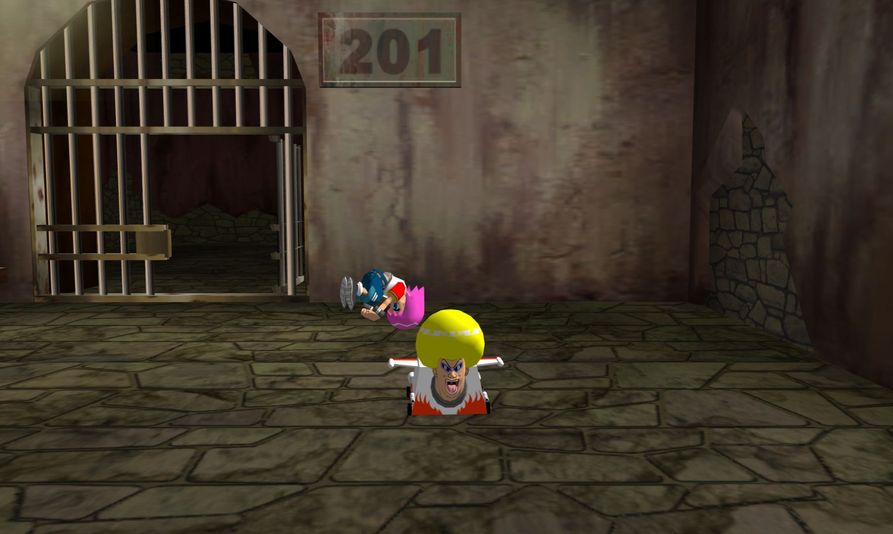 The battles are essentially games of dodgems, or the “stay on the platform” minigame from Mario Party 1. You have a rush attack and one power attack, but once you’ve played one fight, you’ve pretty much seen everything. You can play the fights individually if you want, including against others, but there’s not much to it at all.