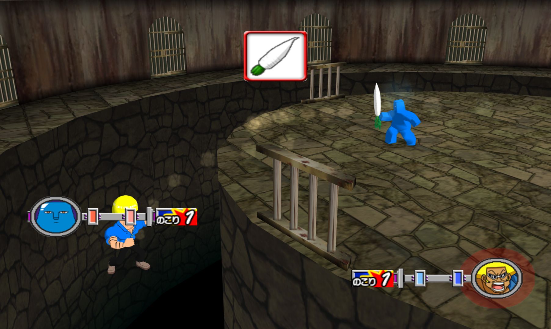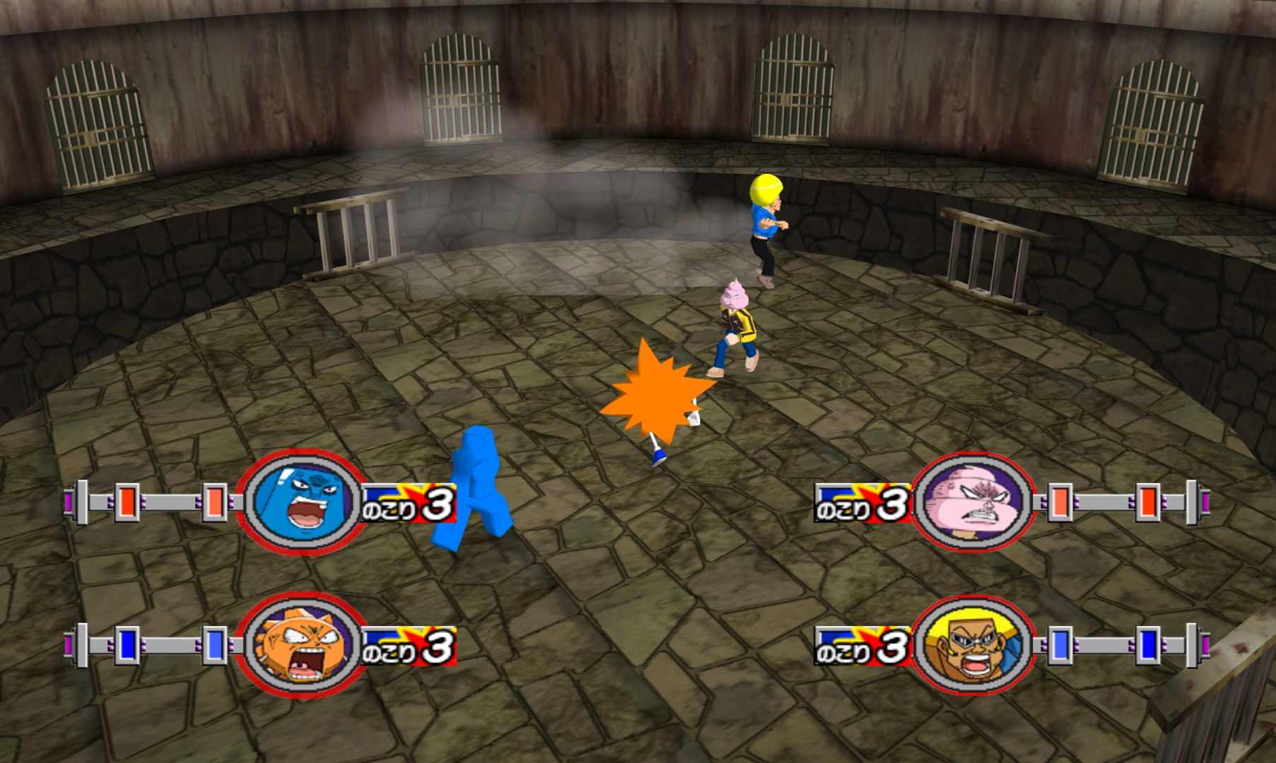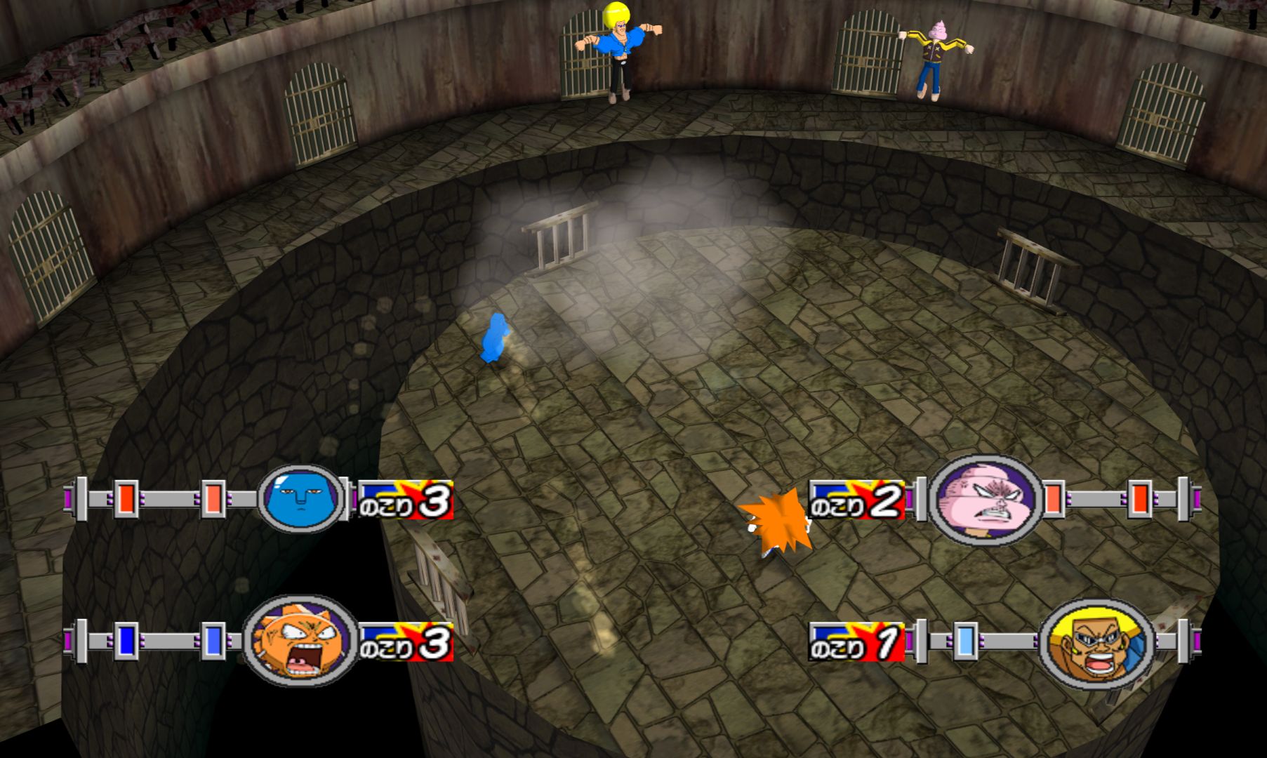 We think we’ve seen something like this as a mini game in Mario Party. It’s possible that someone could make a fun game based exclusively on the idea of knocking your opponents out of a ring, but Hudson sure didn’t try with Dasshutsu Hajike Royal. This game has some serious issues, most notably the frequent little pauses that disrupt battle. It seems like the game is loading up data for items and moves. Imagine if Street Fighter had paused to load up Ryu’s fireball and you should be able to see how annoying this can be.