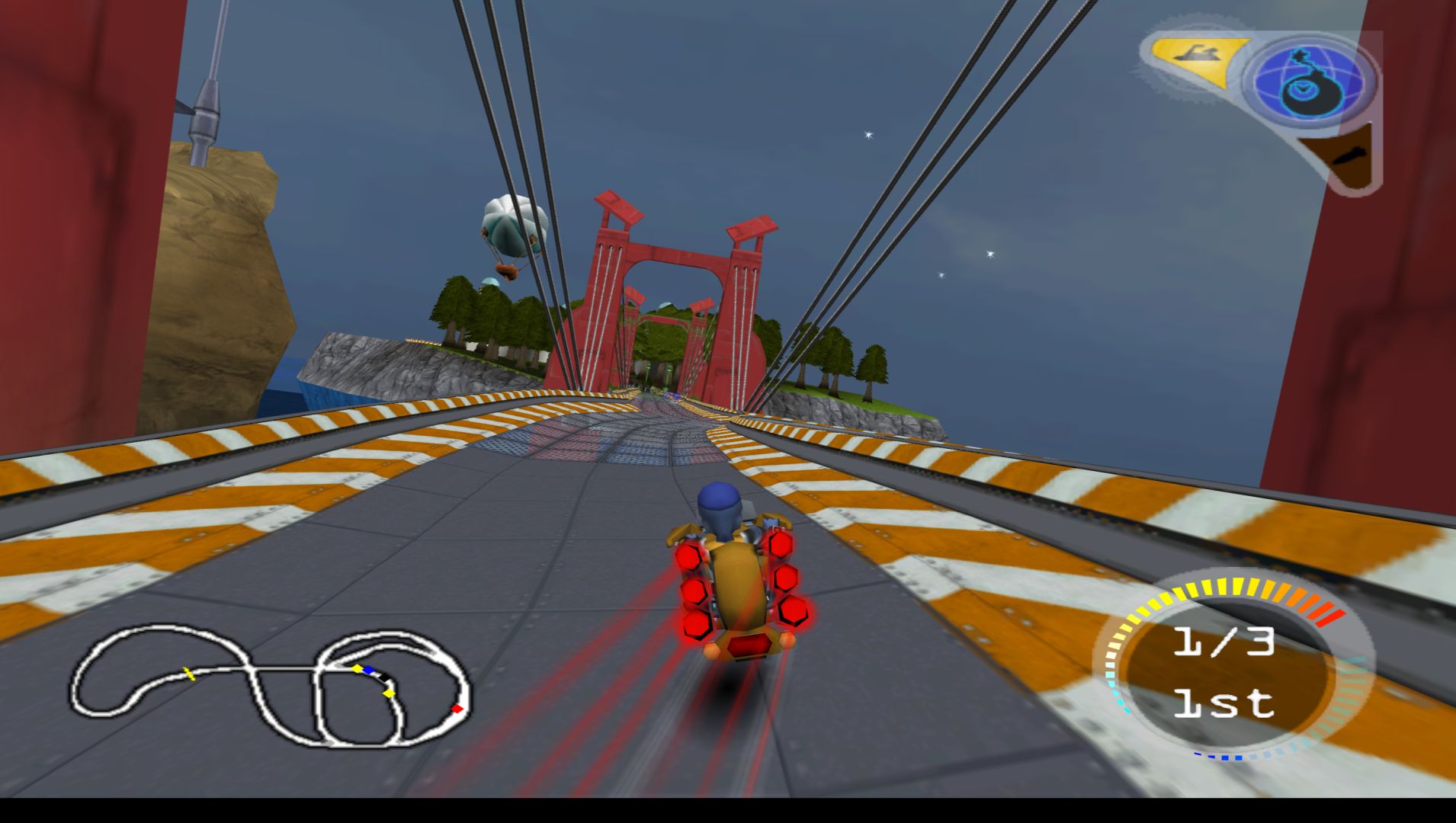 There are also the standard kart racer weapons, but the iconography is unclear and you never get a sense of what they actually do. Between each race, you also take part in a short, straight-line race in between every race where the winner starts the race with a random item, which is just needless padding.