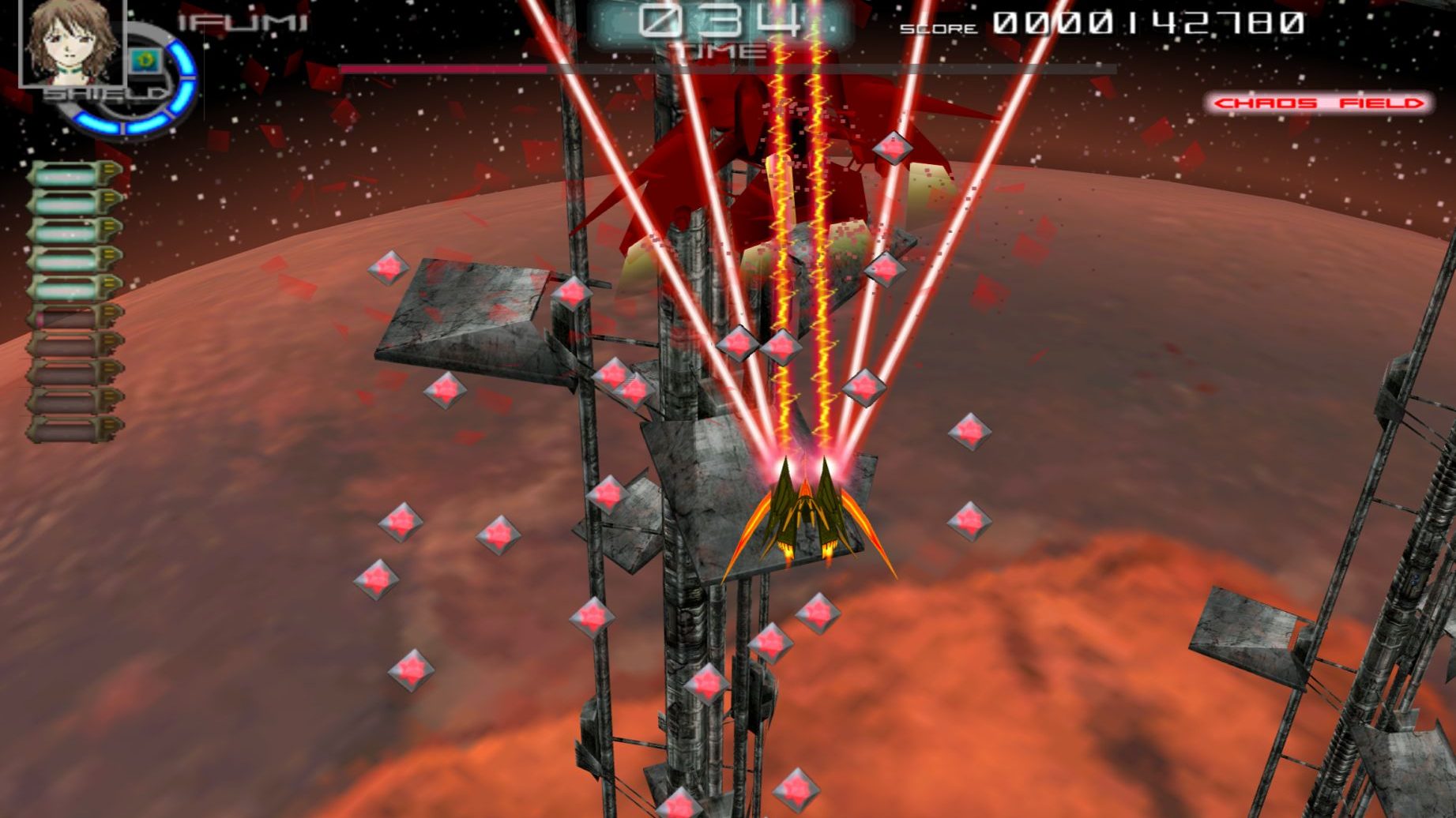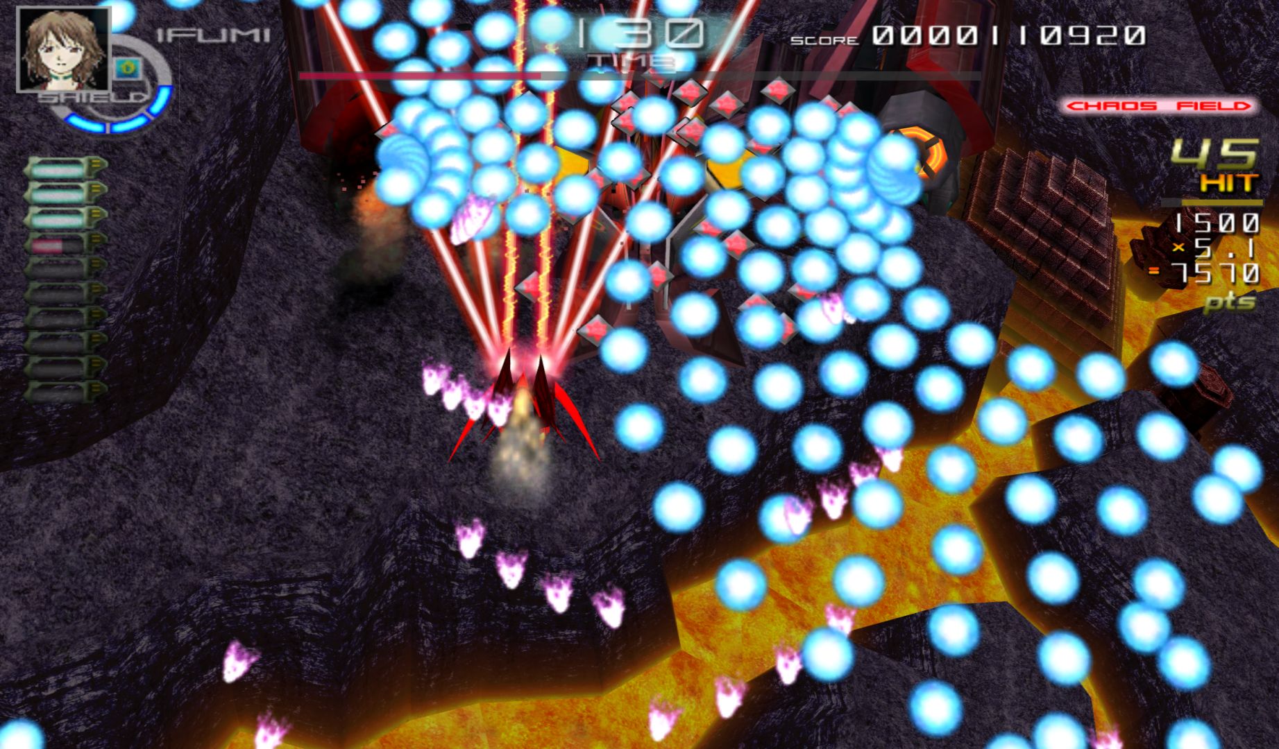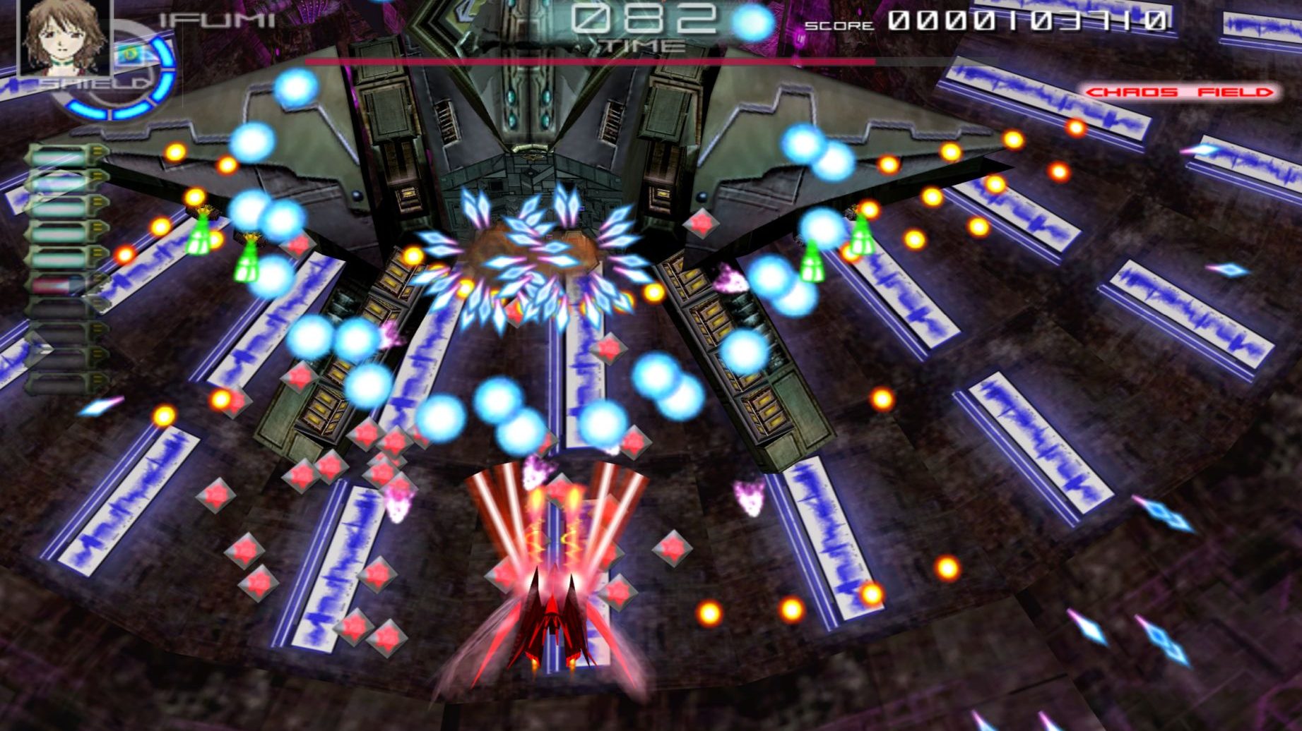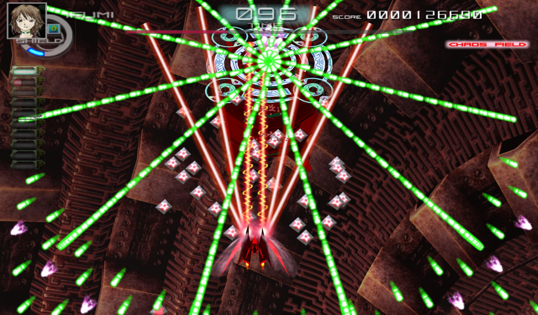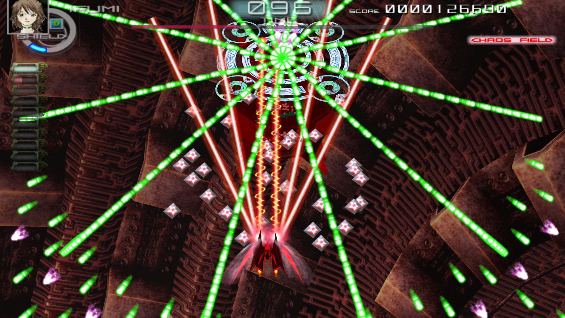 In terms of mechanics, you have homing weapons and a defence that sweeps around you and absorbs certain types of bullets. You can also switch to a chaos mode which disables the homing ability of your weapons but makes them more powerful, while also making your ship weaker. On top of this, it switches the graphics to make the levels look more oppressive. It seems like it would be good for people skilled at the genre.