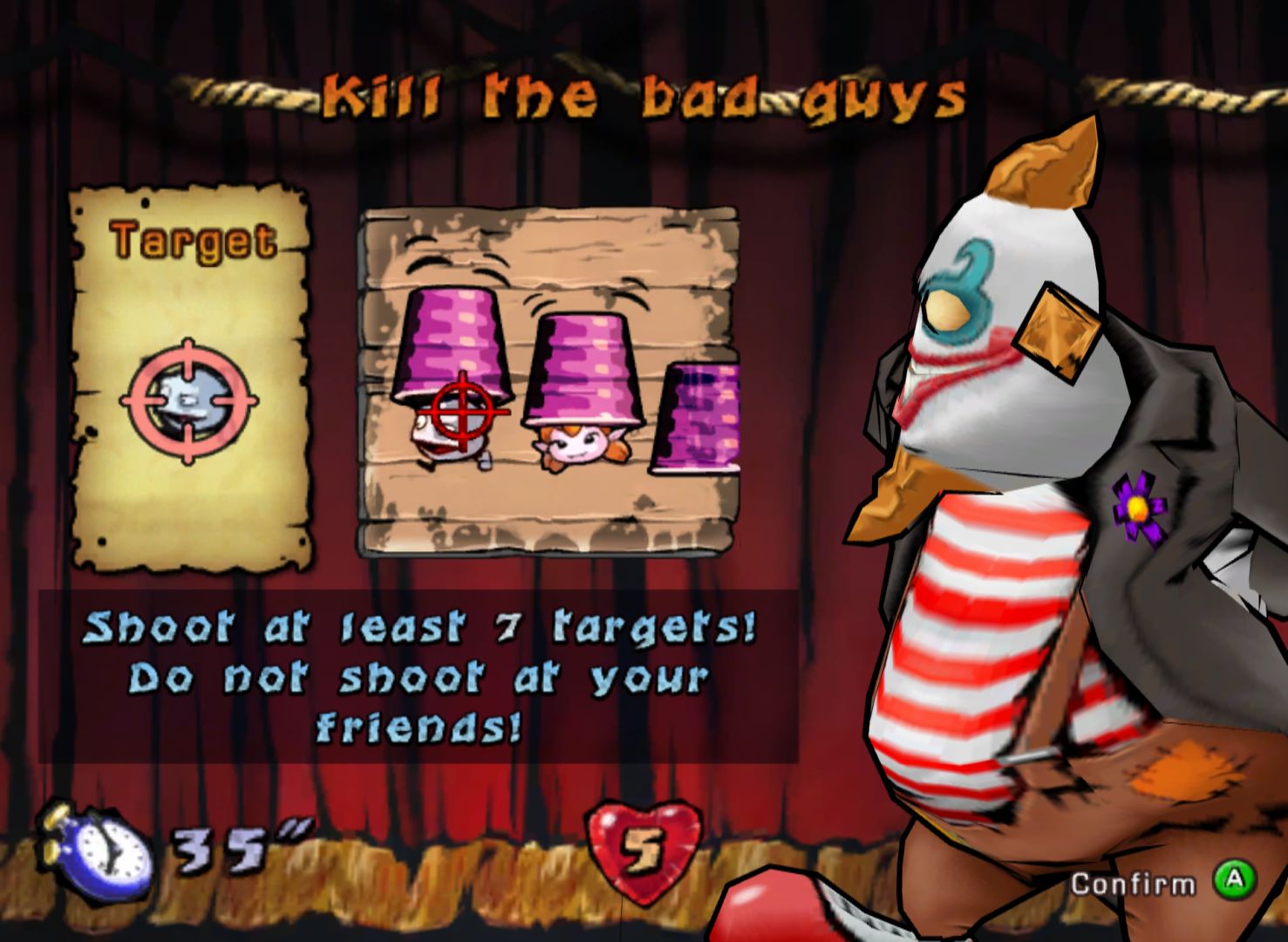 While it advertises “40 minigames”, this isn’t really all that true. While the name does give the impression that you’ll be playing lots of different carnival games, it doesn’t fall into the trap of trying to be a Mario Party clone with inconsistent minigames. Instead, it’s very much one type of minigame done is slightly different ways: a lightgun shooter.
