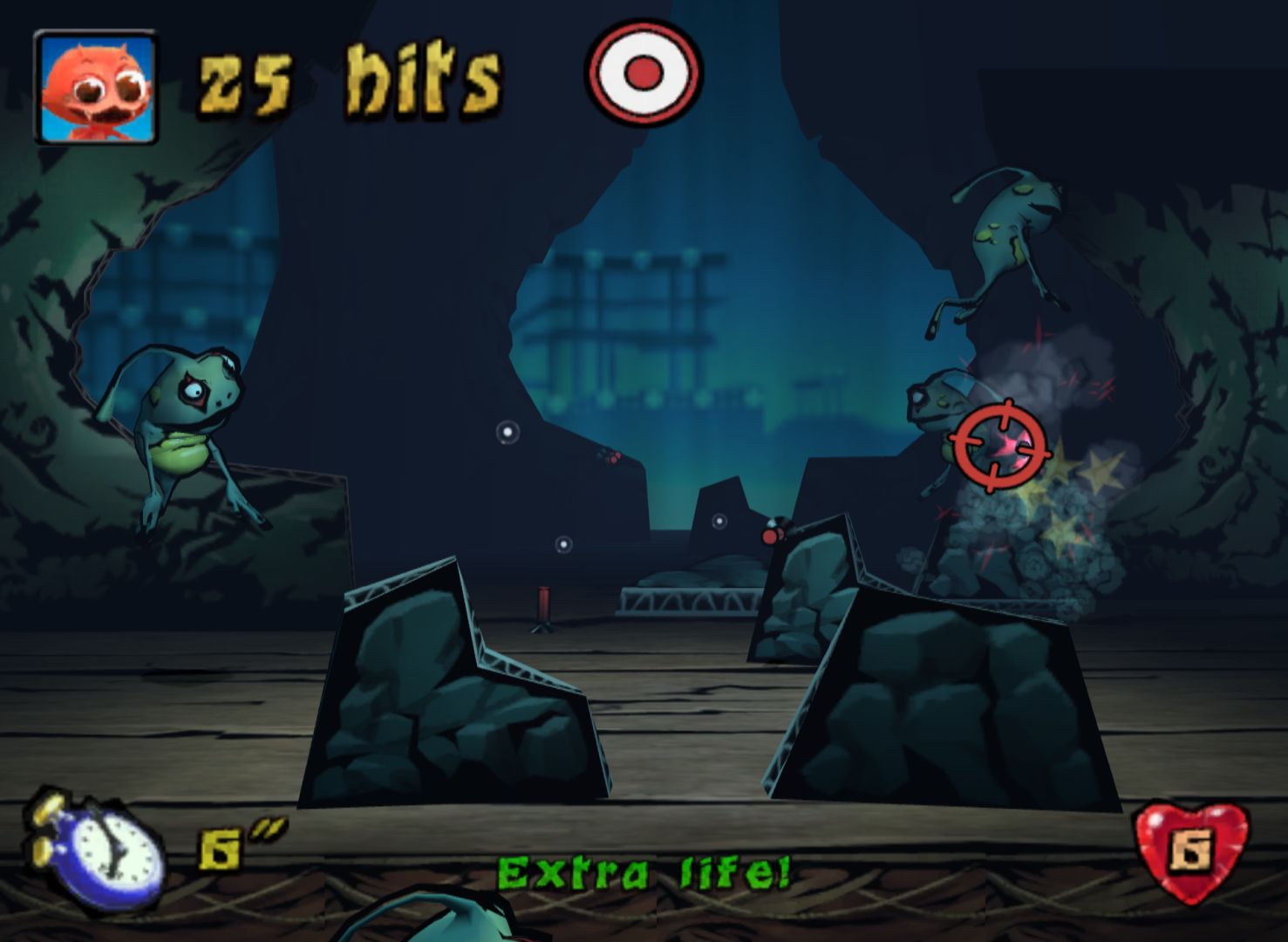 There’s just one massive problem: the GameCube doesn’t have any light guns. So while the PS2 version of this game had what was needed to make the game a lot of fun, GameCube users had to move a cursor with an analogue stick. Which is not fun for a game like this at all. Unsurprisingly, this game later became a pointer-based game on the Wii (the Wii Remote would be shown off a month after this came out), but the GameCube version just has no reason to exist at all.