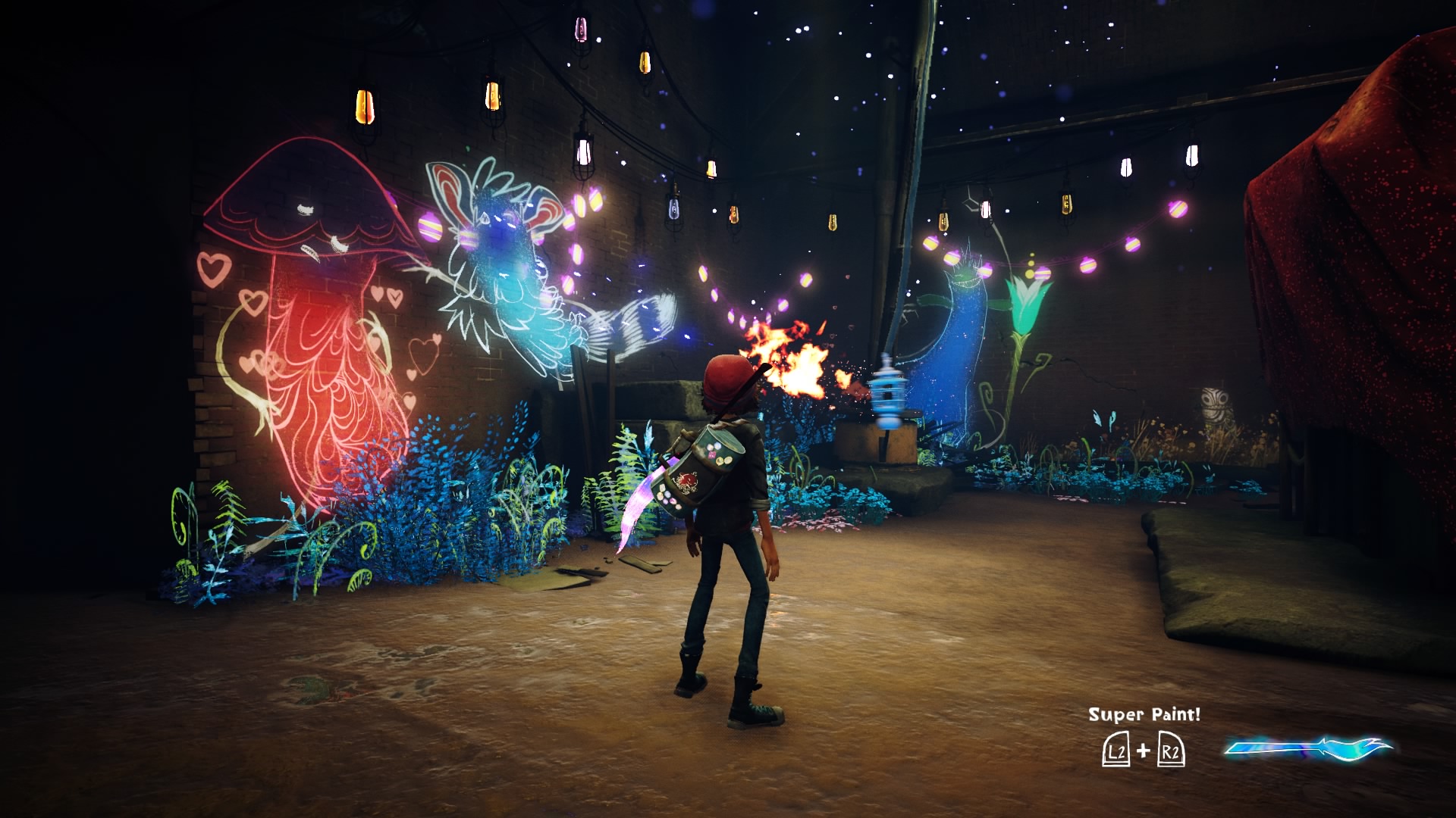 Using this paintbrush, you can create creatures on walls and paint designs using templates (that you need to find from your scattered pages). The aim of the game is to brighten up the town and get rid of a mysterious dark substance that is growing. The creatures you create all like you to paint certain things, and in some locations will request a few different drawings to be placed,and you’ll get a very cute animated scene playing out on the wall when you do so.