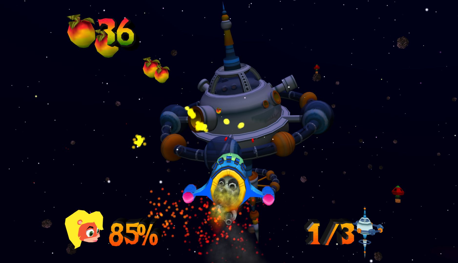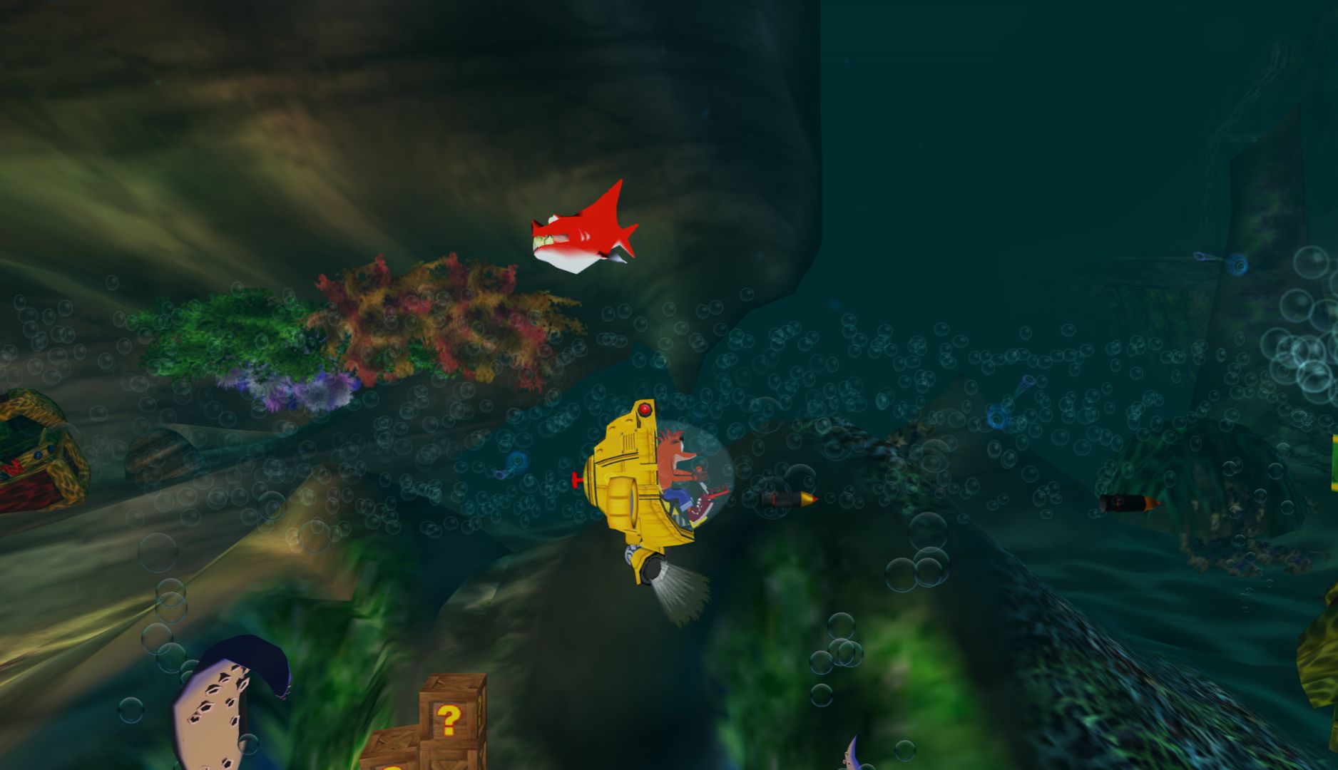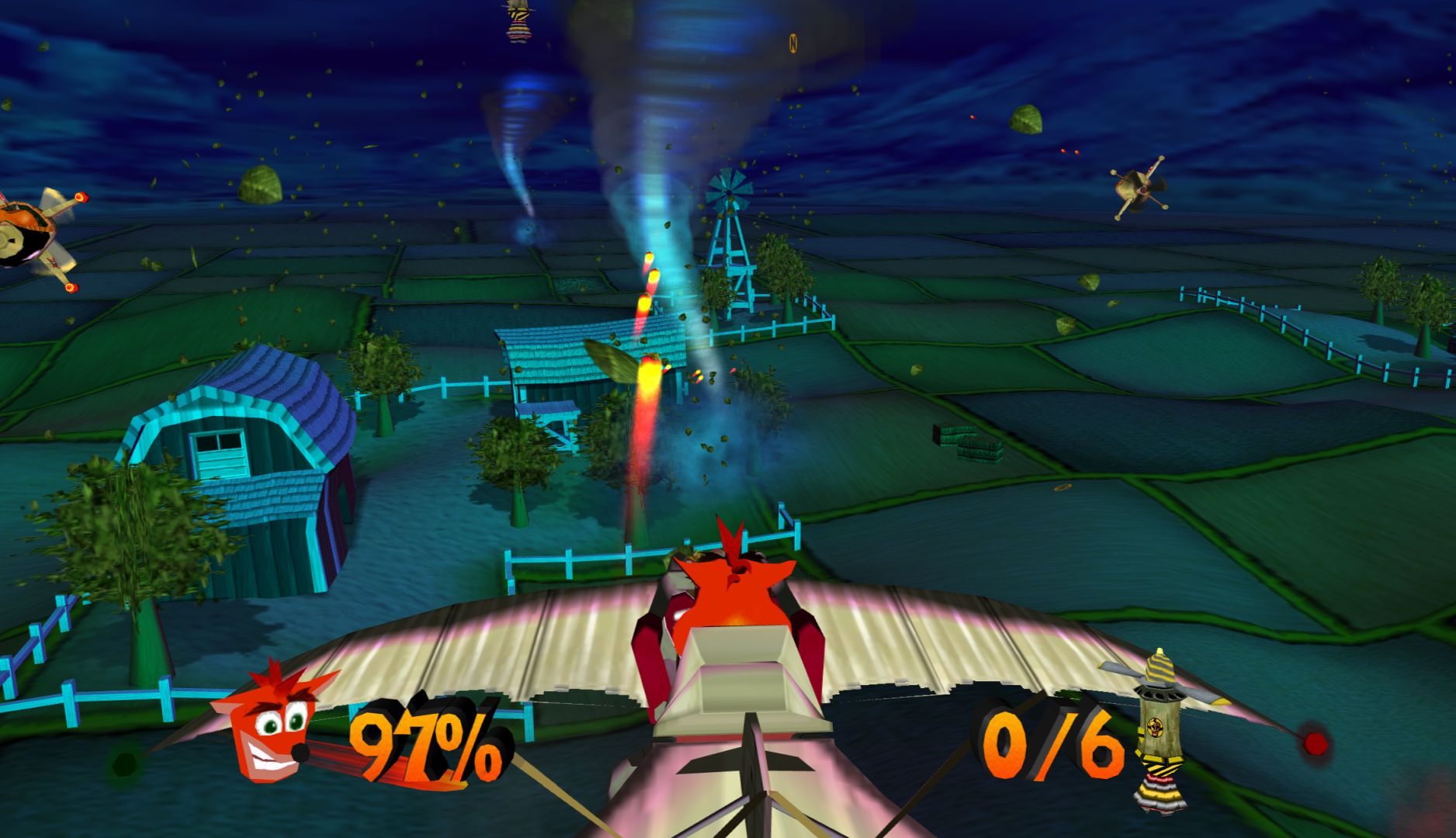 The next level starts and I’m suddenly flying a plane in the middle of a battle. No reason why, nothing to show the controls (they could have shown them on the long loading screens). There are multiple vehicle sections throughout, most of them are ok, none of them are exciting and the submarine is really boring. There are also levels where Crash is trapped in a ball for no reason, which makes the controls slippery and removes Crash’s jump.