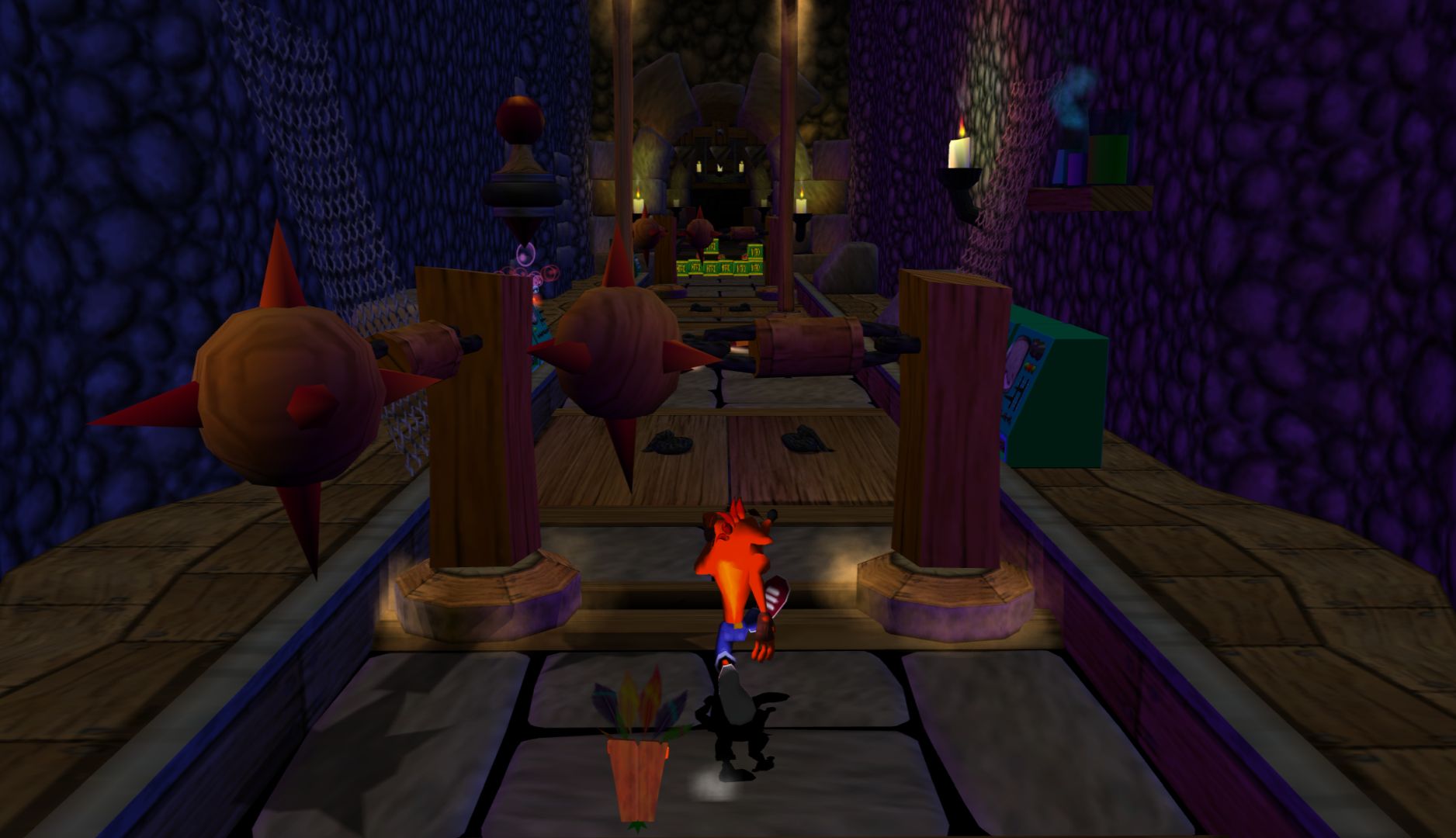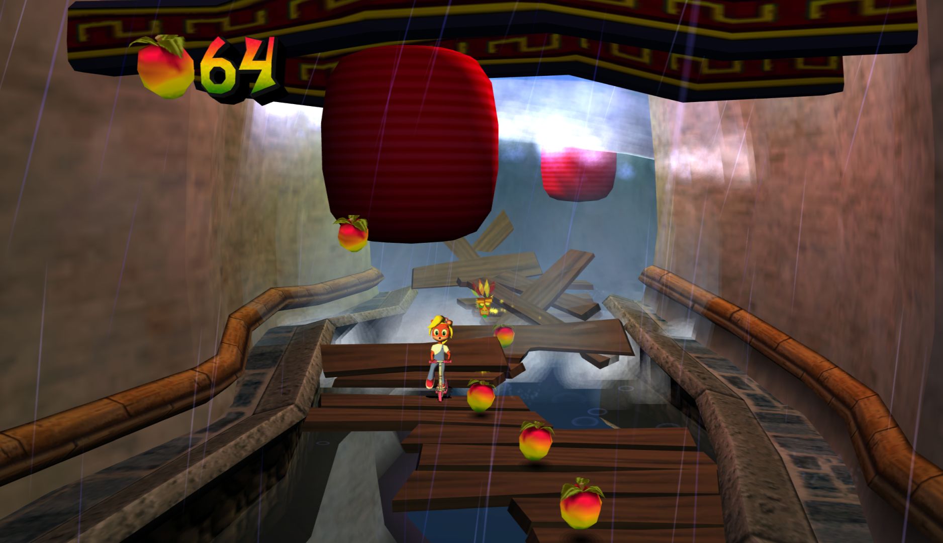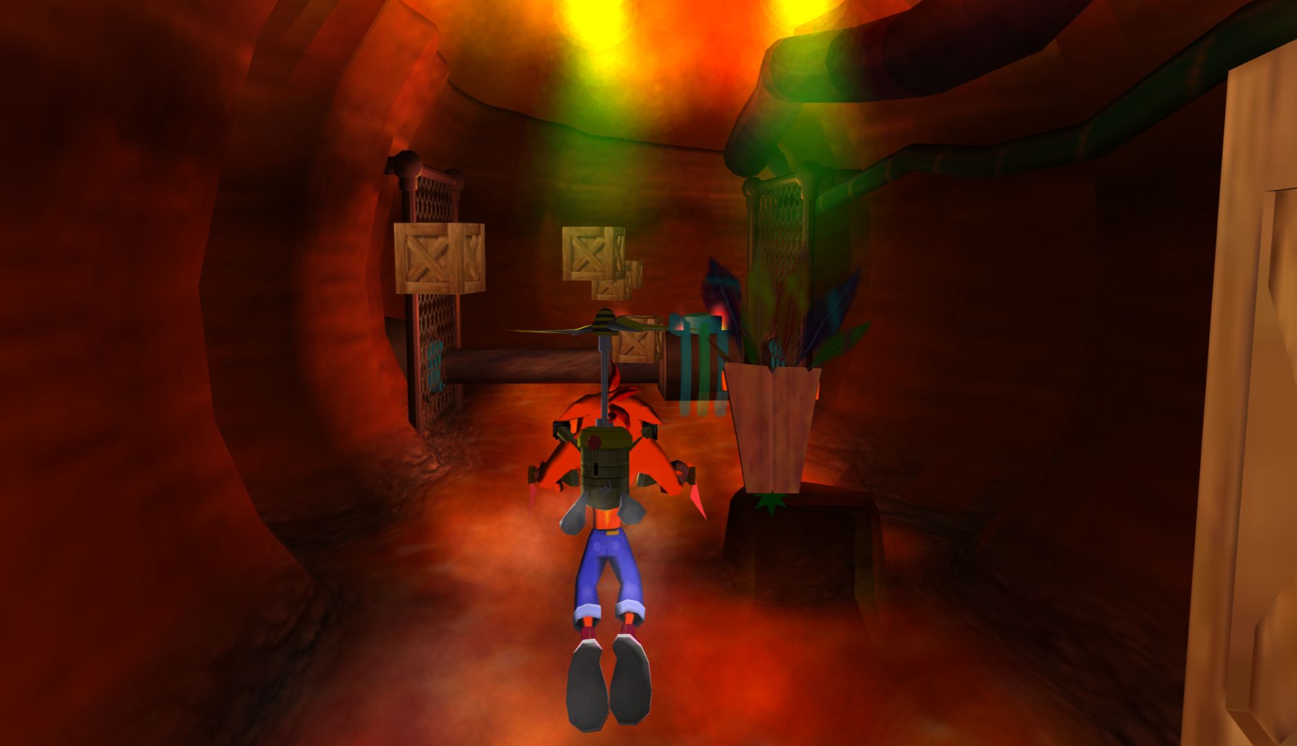 The controls are mostly fine, but Wrath of Cortex has issues regarding perspective. In the 3D sections, it’s difficult to determine the position of floating objects or the edges of platforms. The 2D sections are worse, as it doesn’t “lock” Crash into 2D movement, you can still move up and down. The big problem is that in the transition from a 3D to 2D section, you’re likely moving forward which will push Crash out of the “intended” plane so when you jump onto crates, you’ll fall behind them.