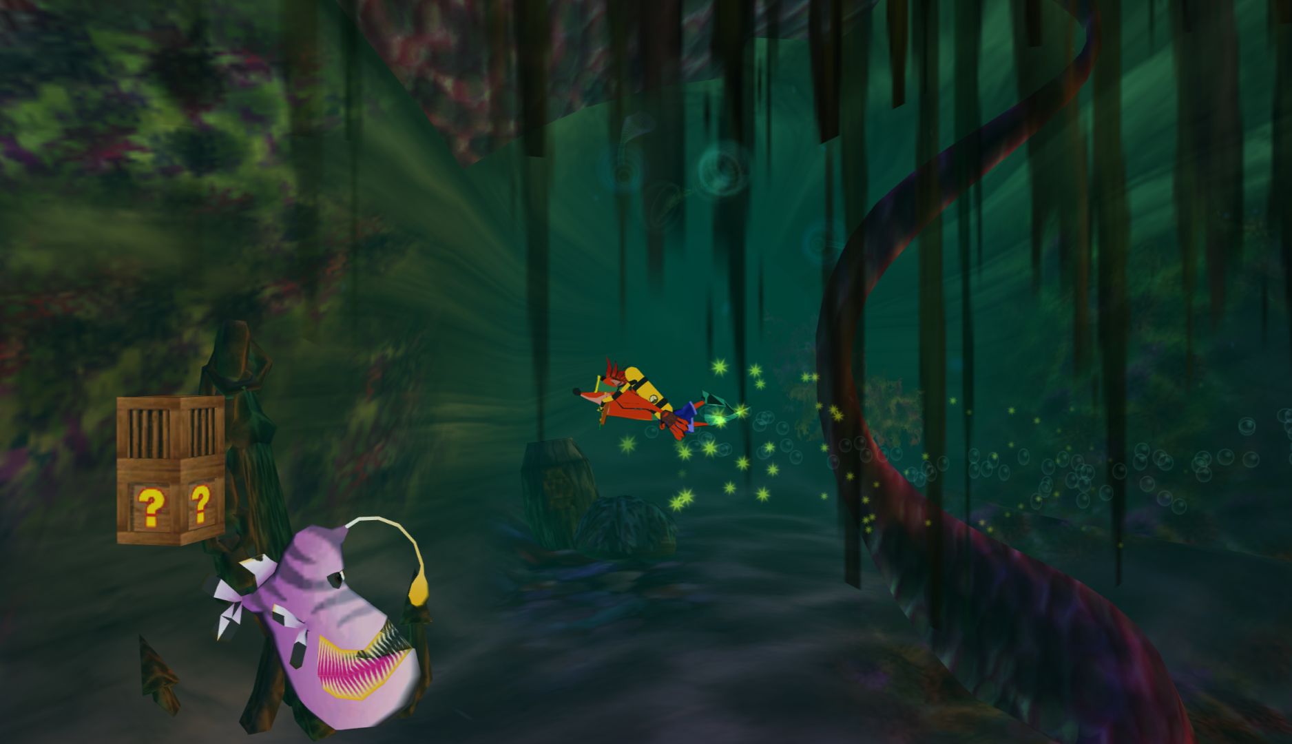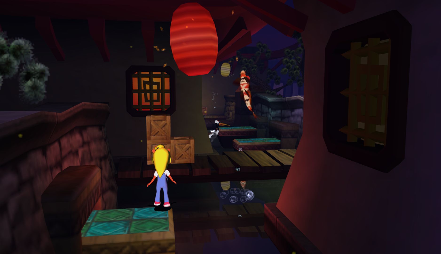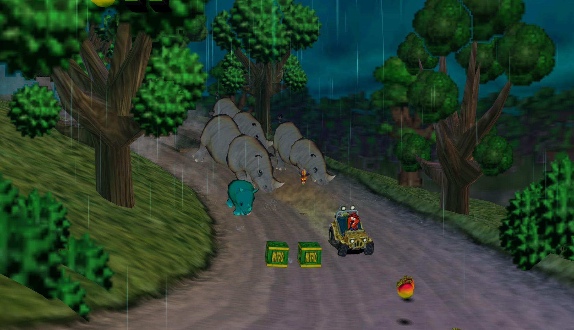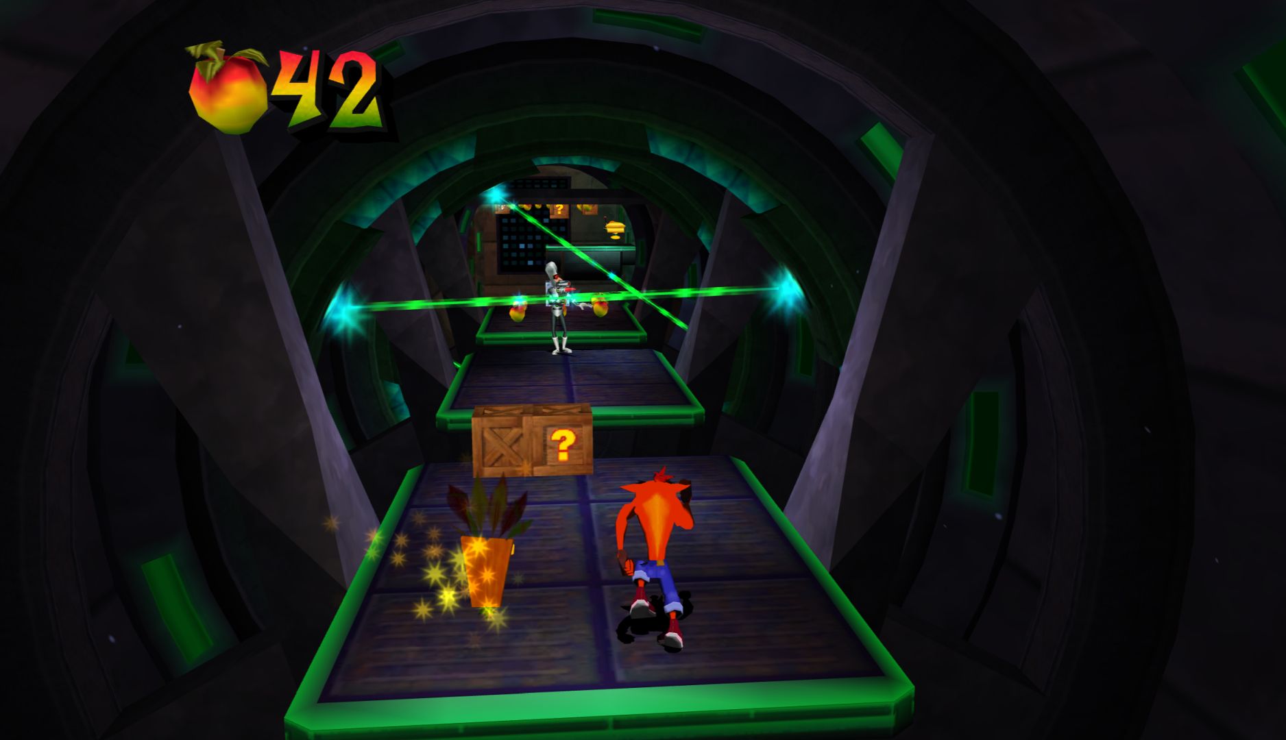 The controls are mostly fine, but Wrath of Cortex has issues regarding perspective. In the 3D sections, it’s difficult to determine the position of floating objects or the edges of platforms. The 2D sections are worse, as it doesn’t “lock” Crash into 2D movement, you can still move up and down. The big problem is that in the transition from a 3D to 2D section, you’re likely moving forward which will push Crash out of the “intended” plane so when you jump onto crates, you’ll fall behind them.