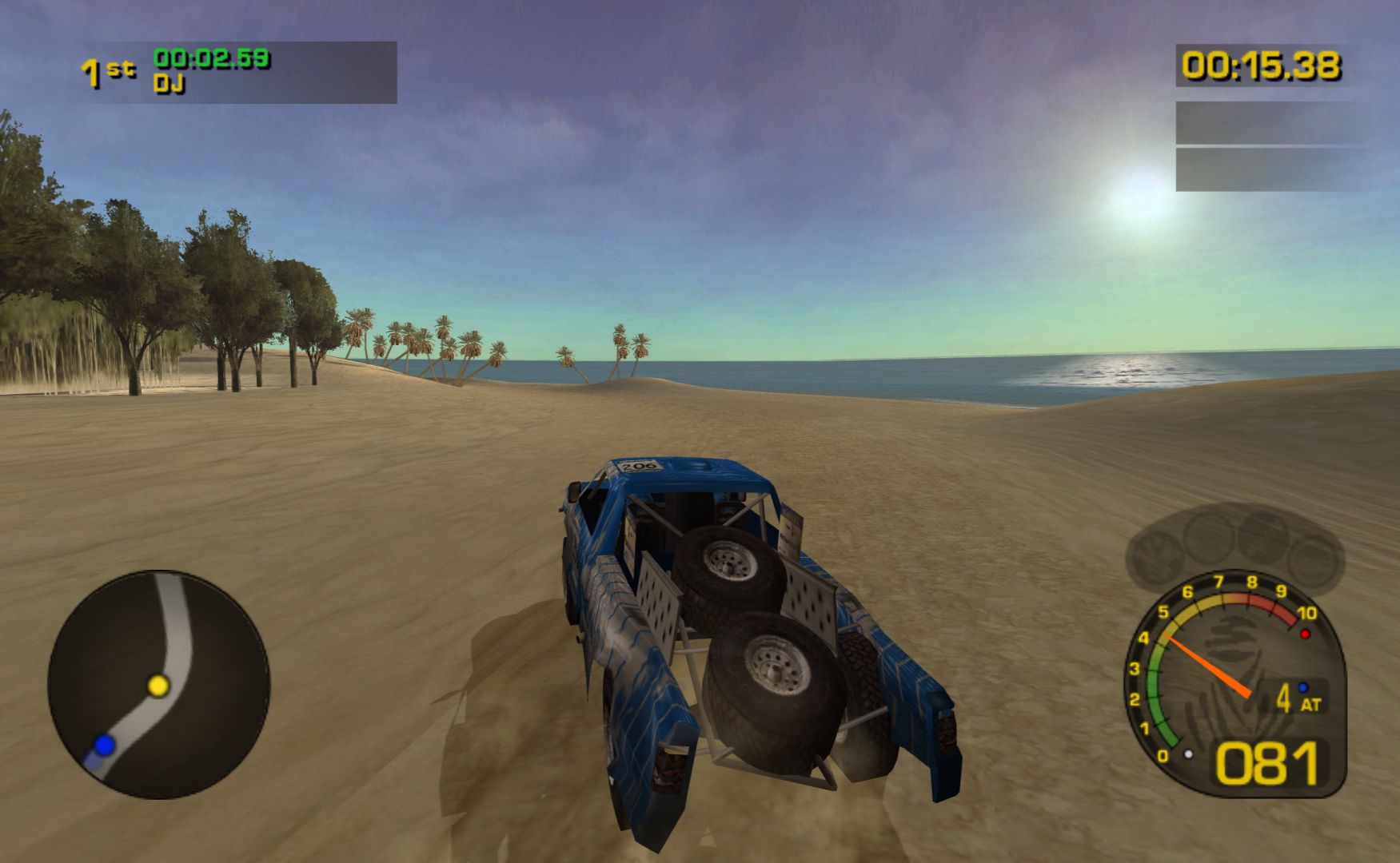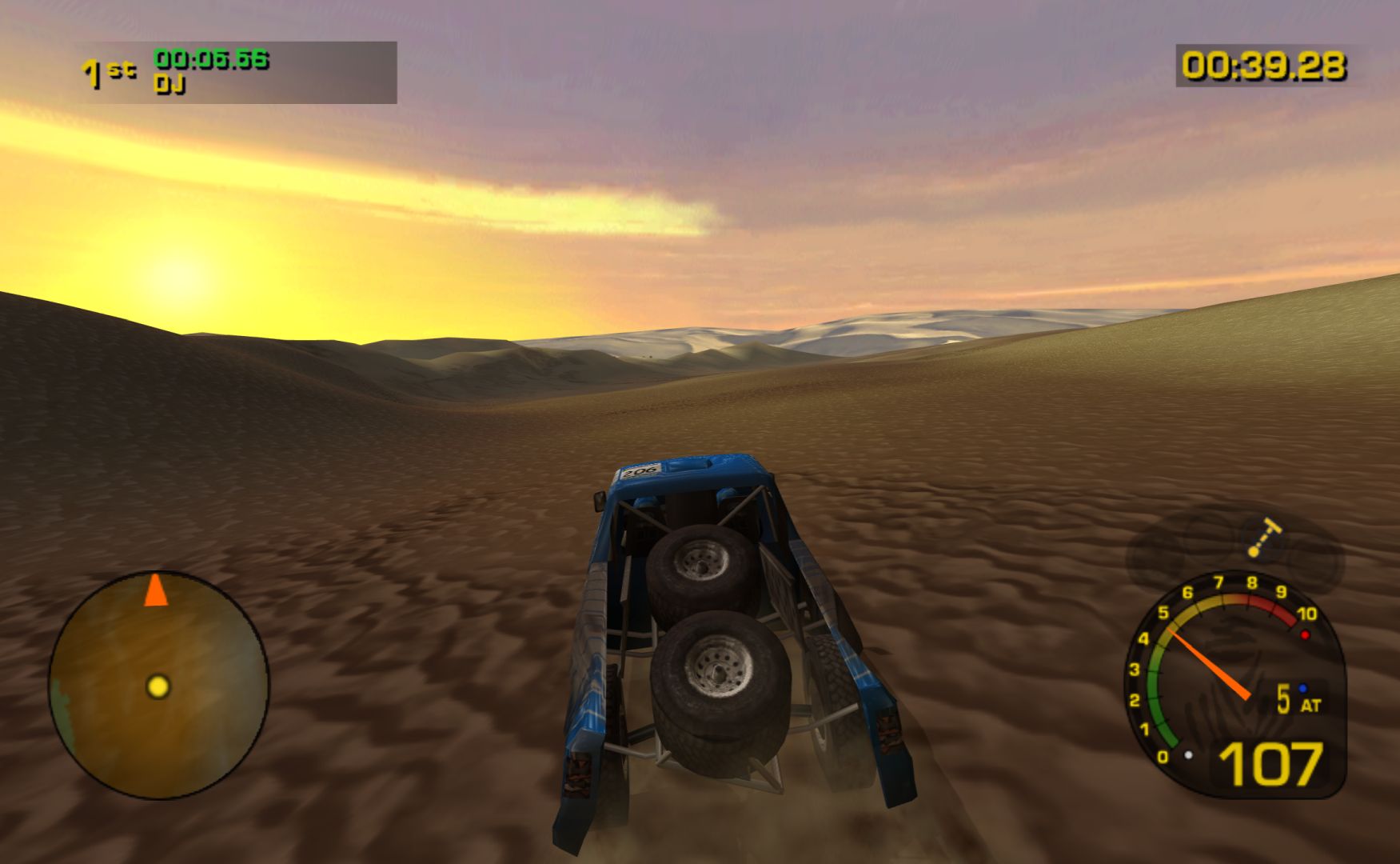 Compared to other rally games on the GameCube, Dakar 2 is far more arcade-like in terms of handling, and on top of featuring the regular time trial mode, also lets you race against three others in the arcade mode. Itβs quite fun to zip around, although you still have to be careful as you can sustain damage, which affects your performance.