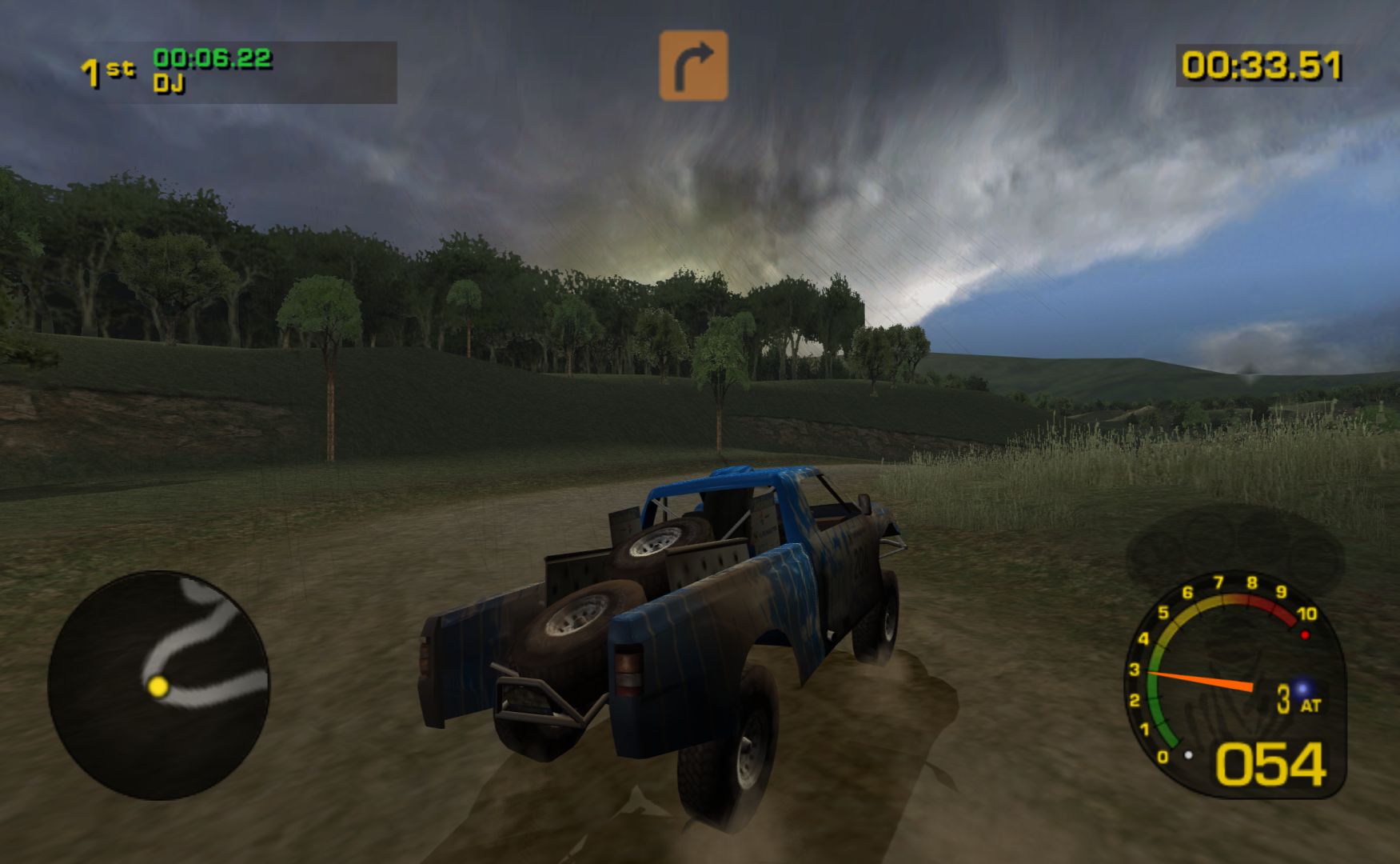 The three different kinds of vehicles do affect performance, and gives an interesting sense of sale as the trucks really do make everything feel small while the bikes let you feel every part of the ground. You’ll also come across some circuits tracks, A to B races and more open checkpoint races in the desert, which helps with variety. Due to set weather and times of day, each track feels unique as well, it’s all good fun.