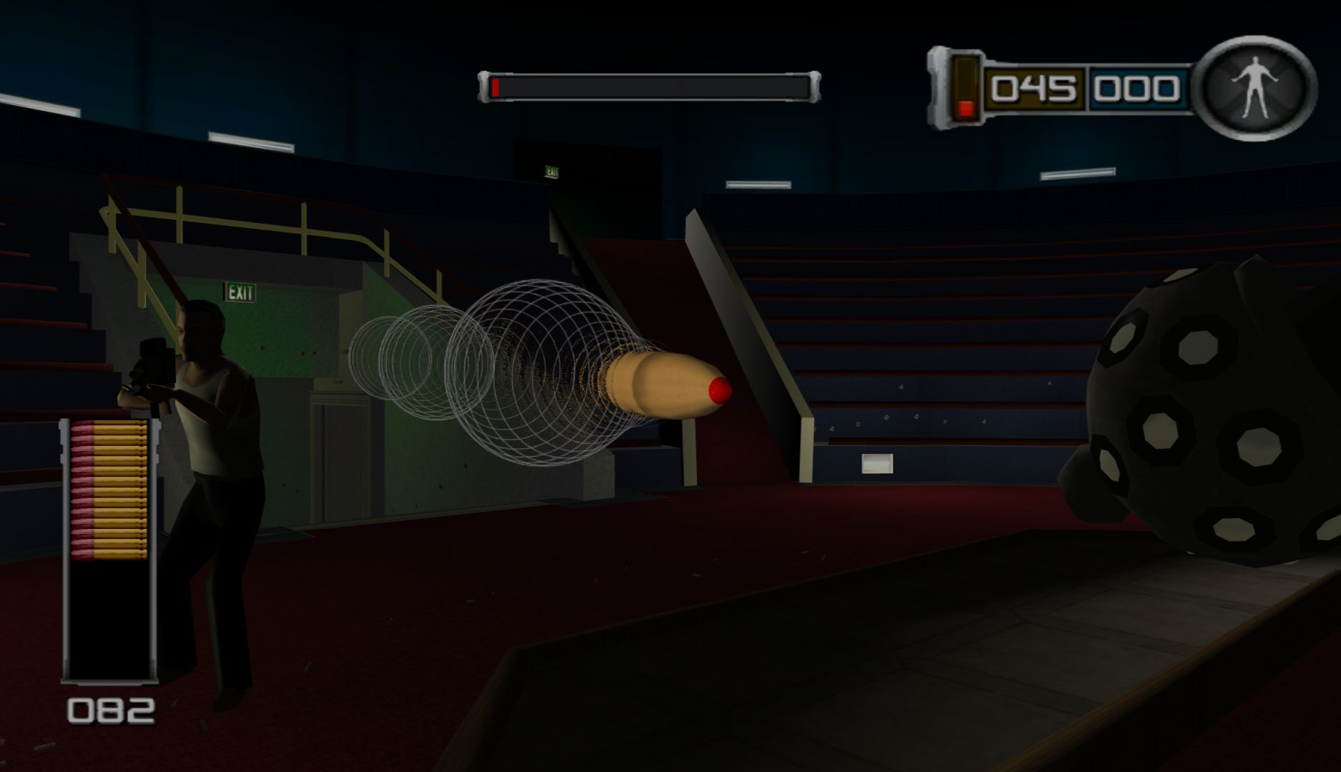 What lets the game down is that the levels are often confusing in the wrong ways, with no clear path forward, or an awkwardly placed button. Sometimes you just have to shoot things you never would have thought to shoot. It means you can go from a very frantic situation to bumbling about the same small area for ages. In an early level, a Chinese Theatre, you need to get behind the stage. To do this, you need to get to a projection room, find a small box that’s easy to miss that powers on the organ and then ride the organ up to the stage.