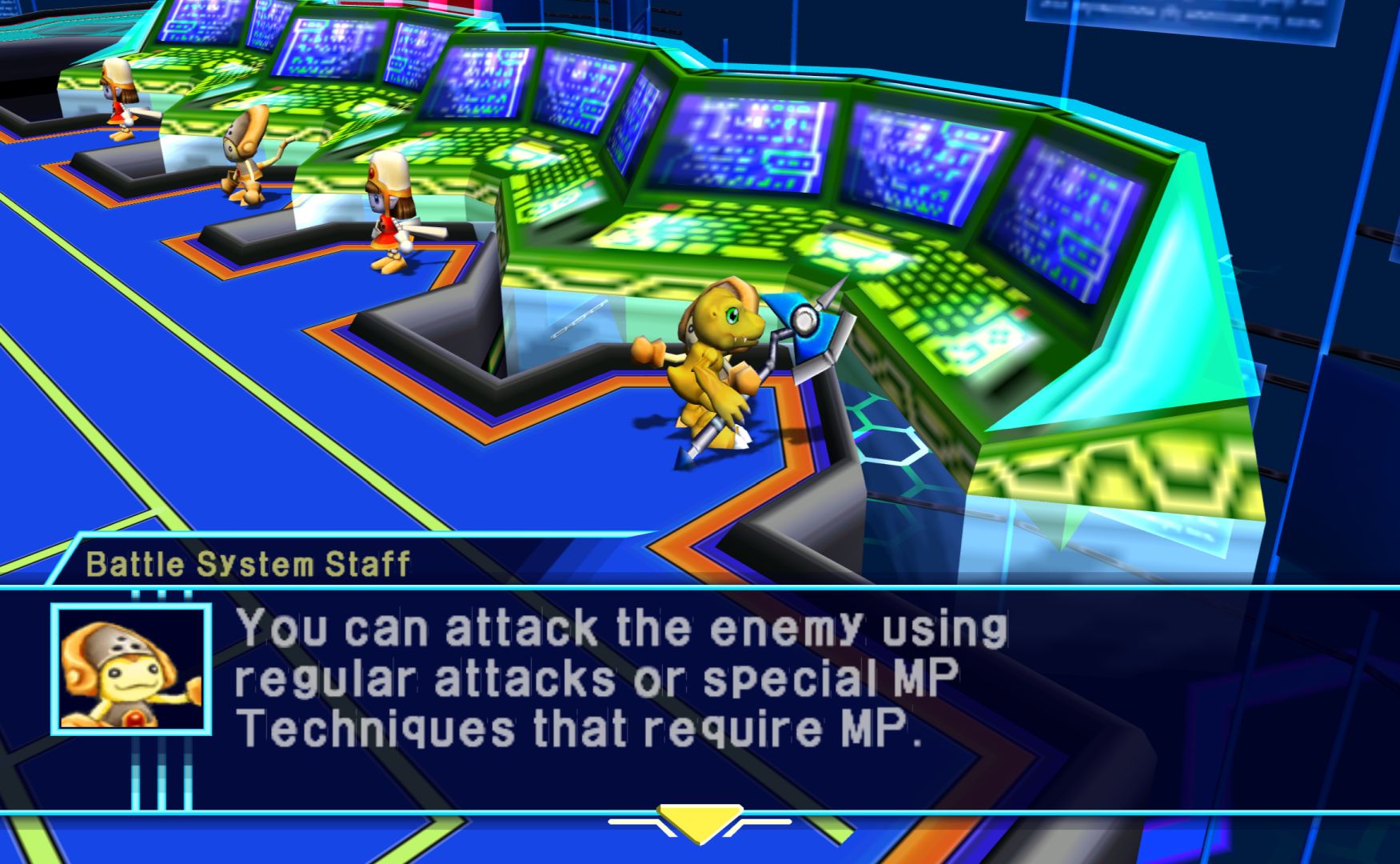 I only vaguely remember parts of the Digimon show from when I was a kid, but even I can tell that this is an unrelated game that had Digimon shoved in at the last moment. The Digimon World series, at least 1 to 3, are RPG games set in the Digimon universe, with the Digimon using their abilities to attack in turn-based combat.