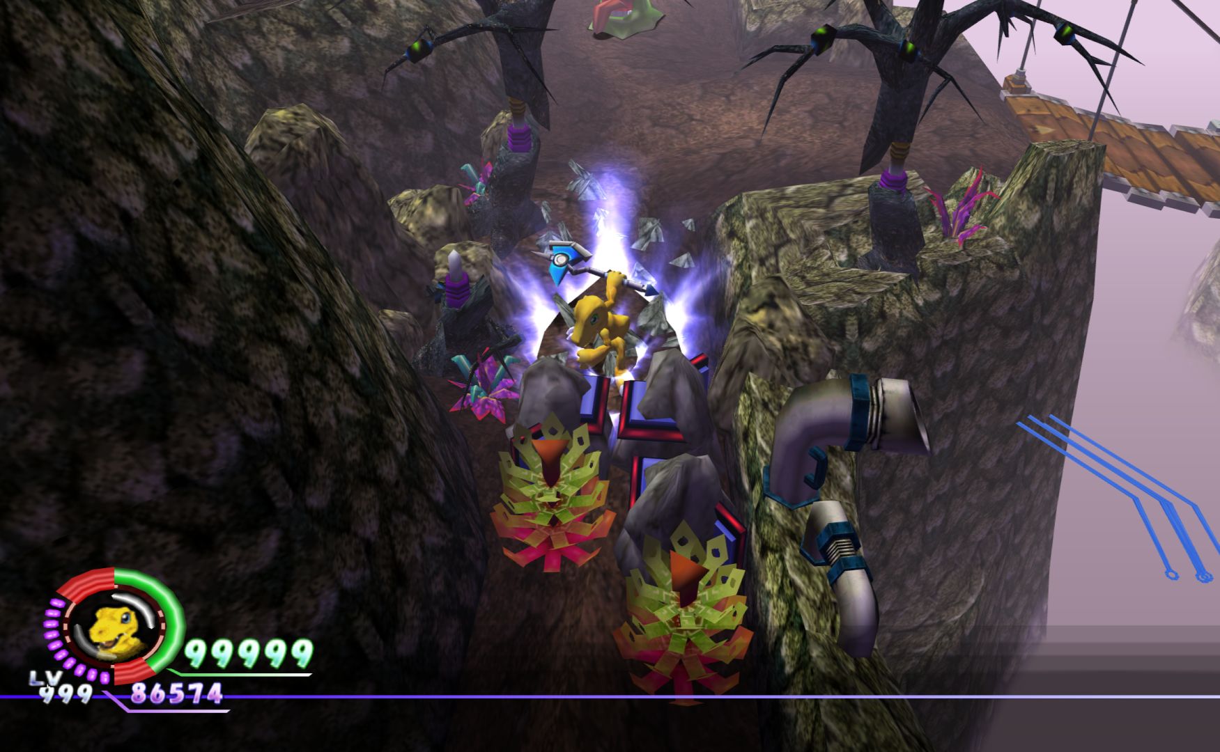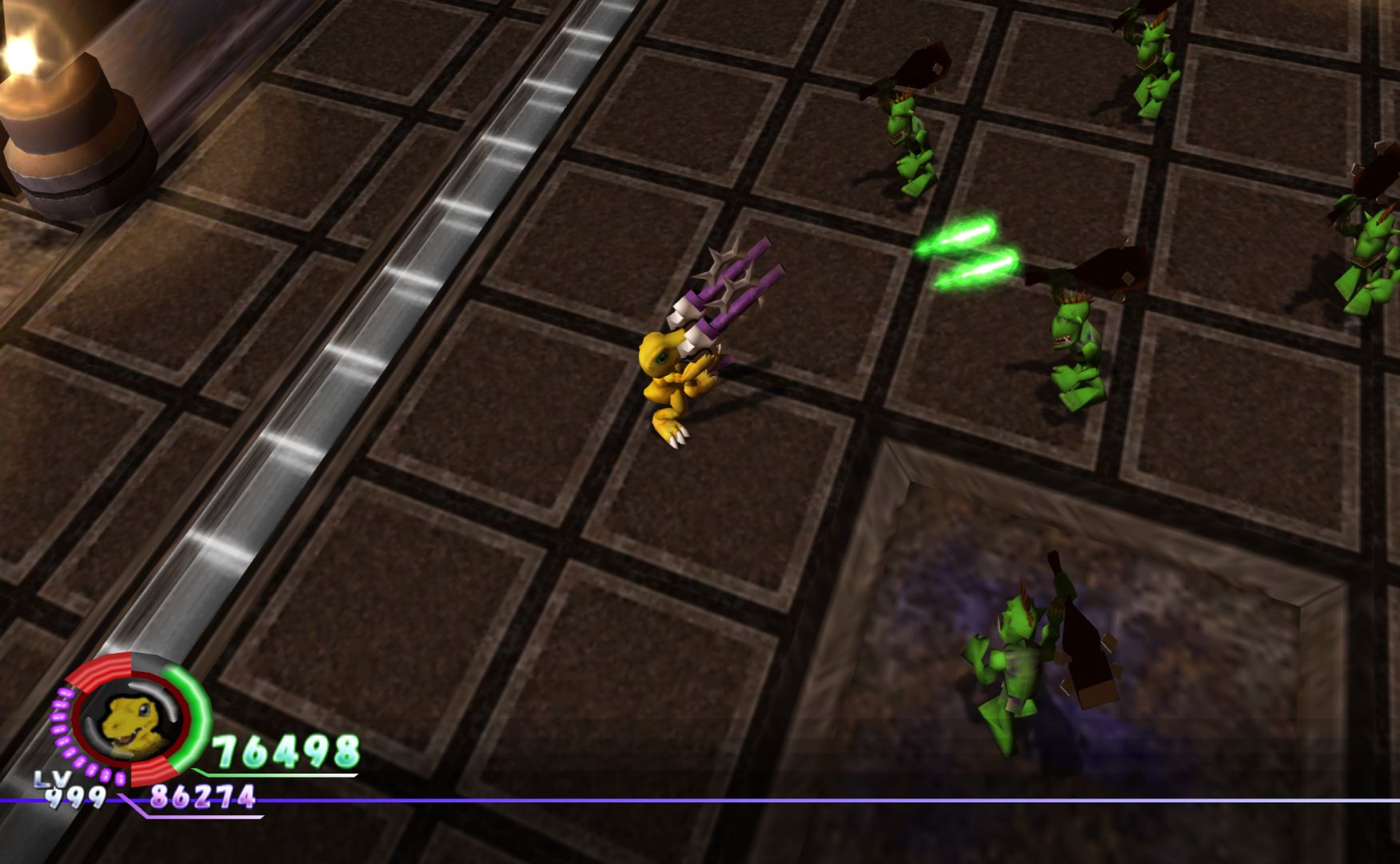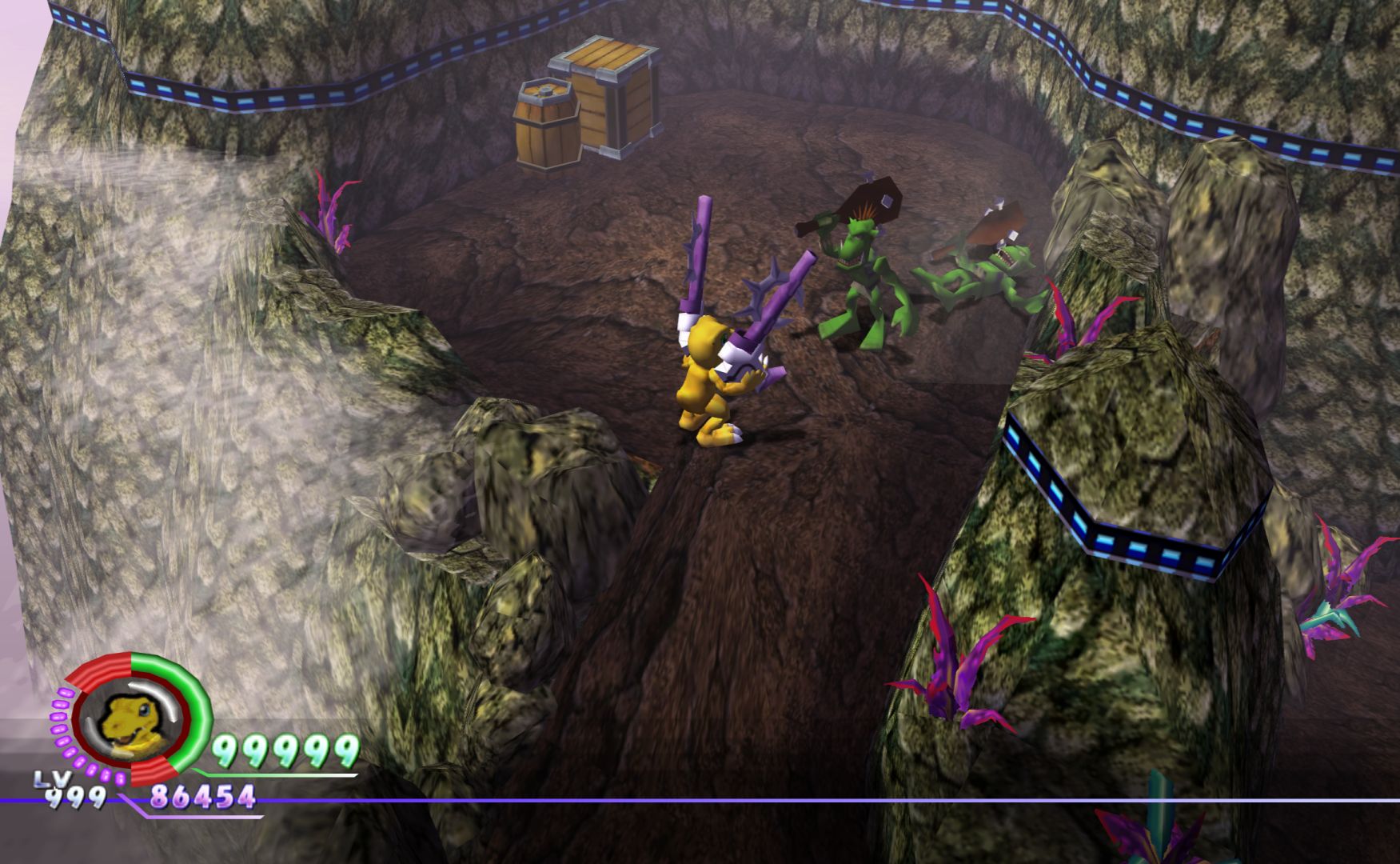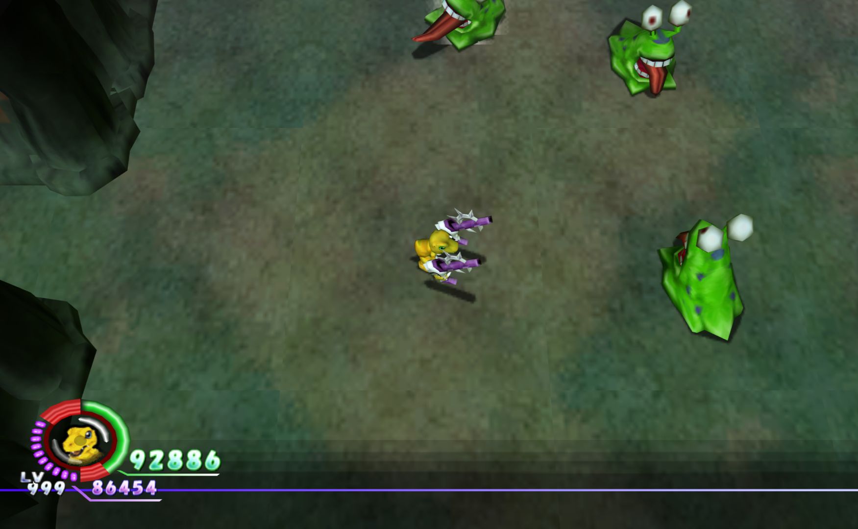 However, this fourth game is a dungeon crawler where the Digimon use axes and guns. It has absolutely nothing to do with the previous ones and doesn’t feel much like Digimon at all. You pick your starting monster (who you control directly, like you’ve morphed into them instead of entering the digital world yourself) and then proceed to attack endless enemies with very tedious attacks.