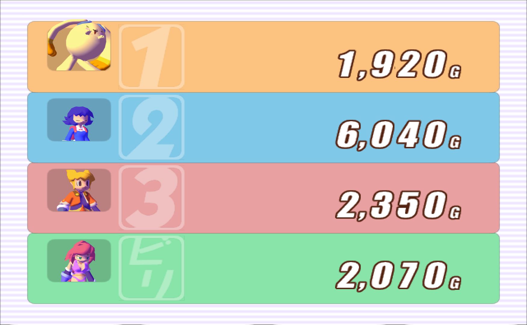 This is a standard roll and move affair, with the added annoyance that you have to roll the exact number to land on the final space of the board, meaning you can just flip flop around it while all the CPU players get to it with no issues. That said, I don’t fully understand the game’s mechanics (due to dodgy translation ) as, in the first match, I didn’t reach the final boss and I had the least money, but somehow came first.