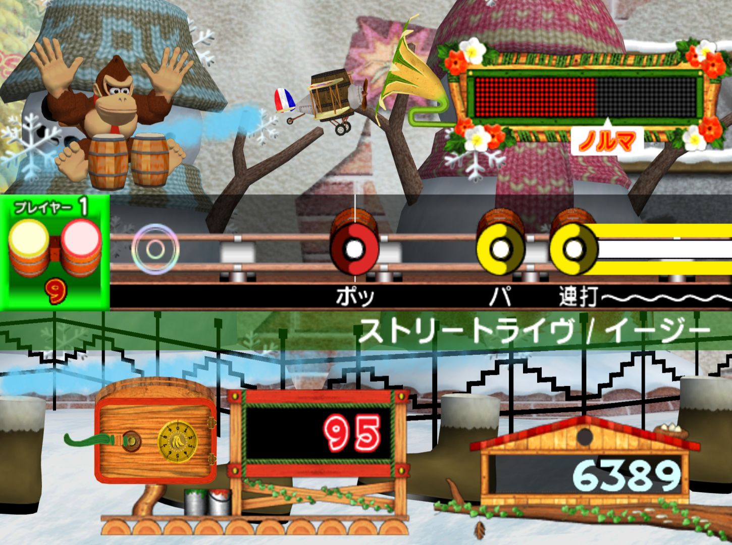 While Europe and North America only got two Donkey Konga games, Japan got three. This third one focuses more on multiplayer and community, with the introduction of “synchronised notes”, which award the group bonus points as long as they all bash or clap at the exact same time. You all get to work together to get more rewards, which is done via a tree minigame.