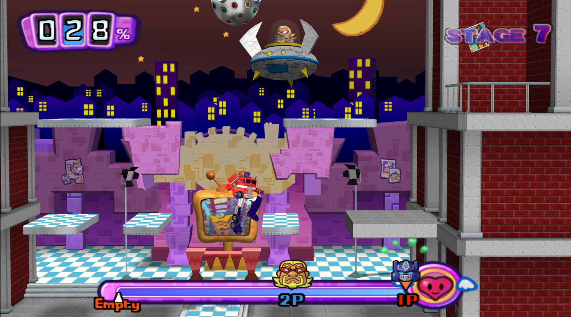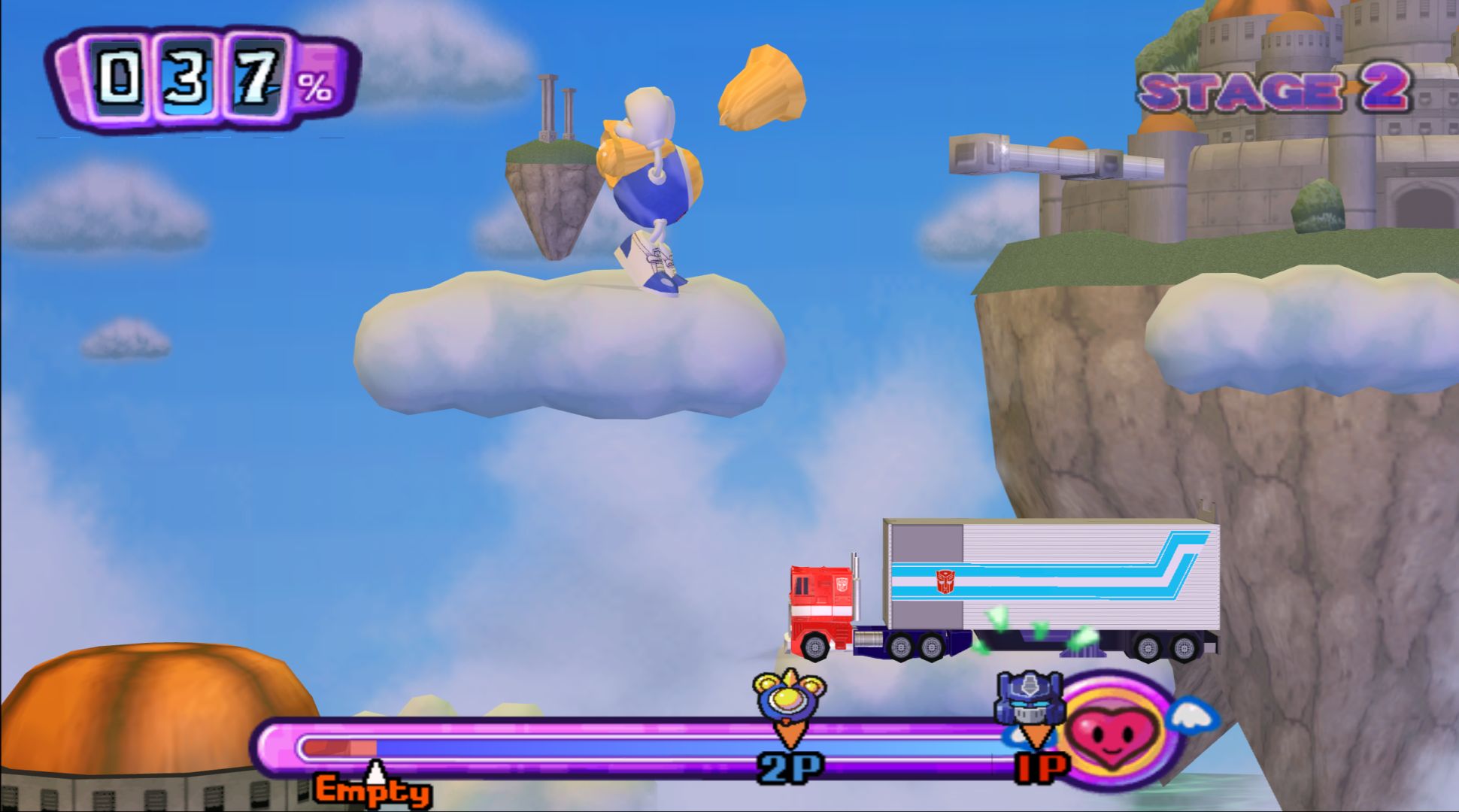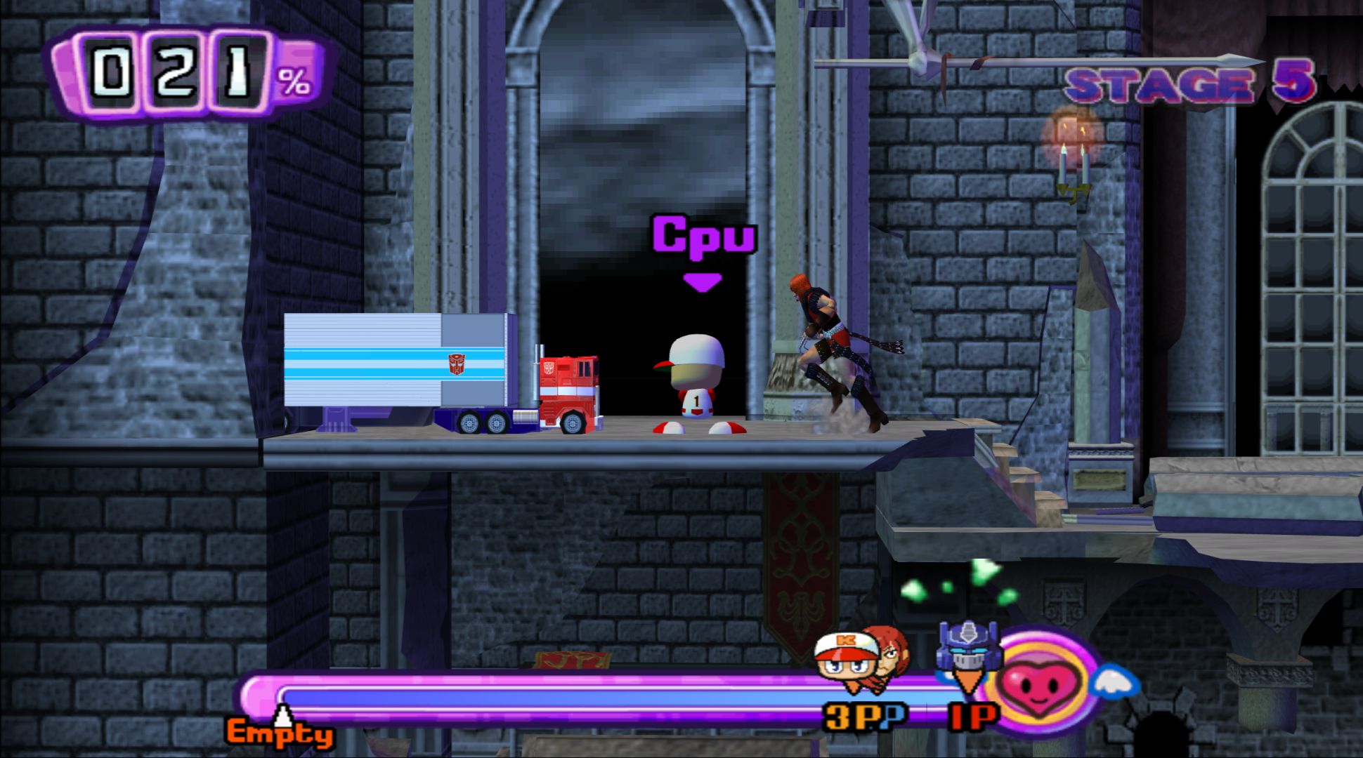 The fighting itself is similar to smash, with basic attacks on the A button and special attacks on the B button. It doesn’t seem quite as varied as Smash Bros does, though, but is fine for quick blasts. Some characters are very difficult to use, such as Snake, who lays mines that are more likely to harm himself while others, like Optimus Prime, can turn into a truck to hit anyone within reach.
