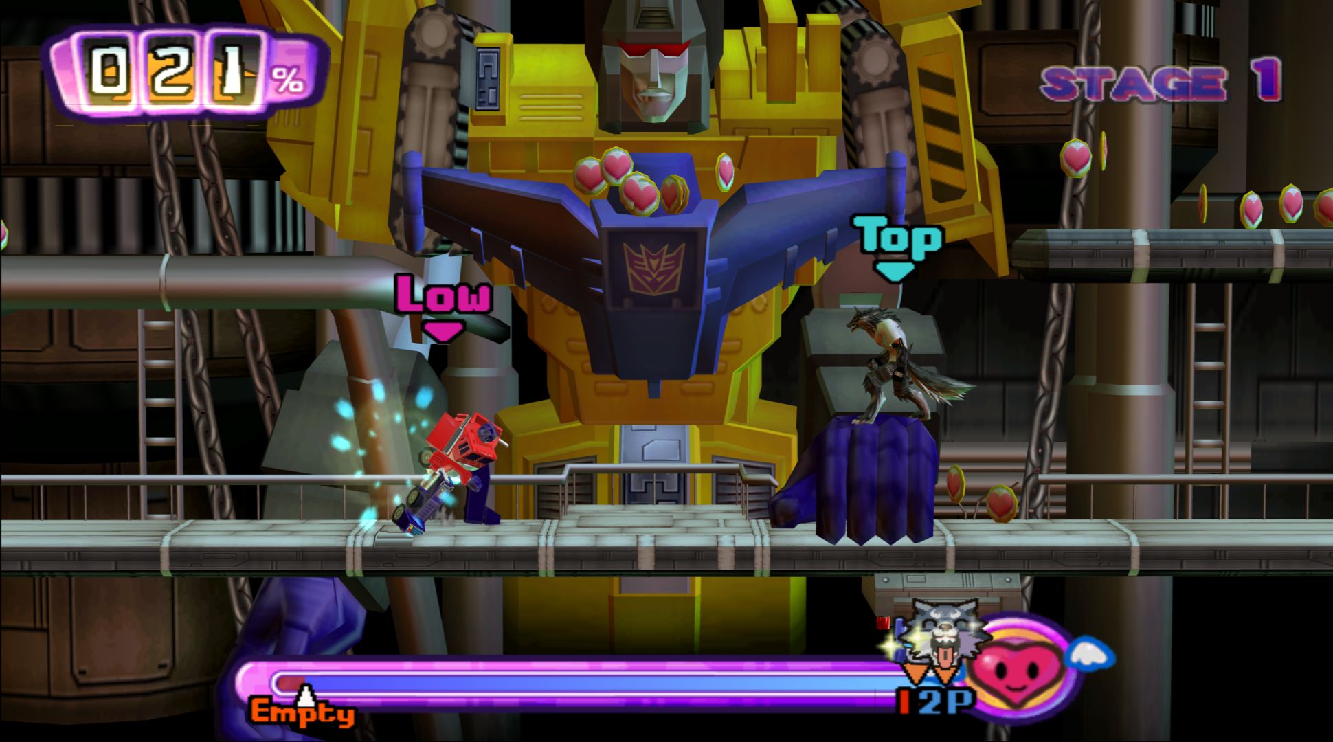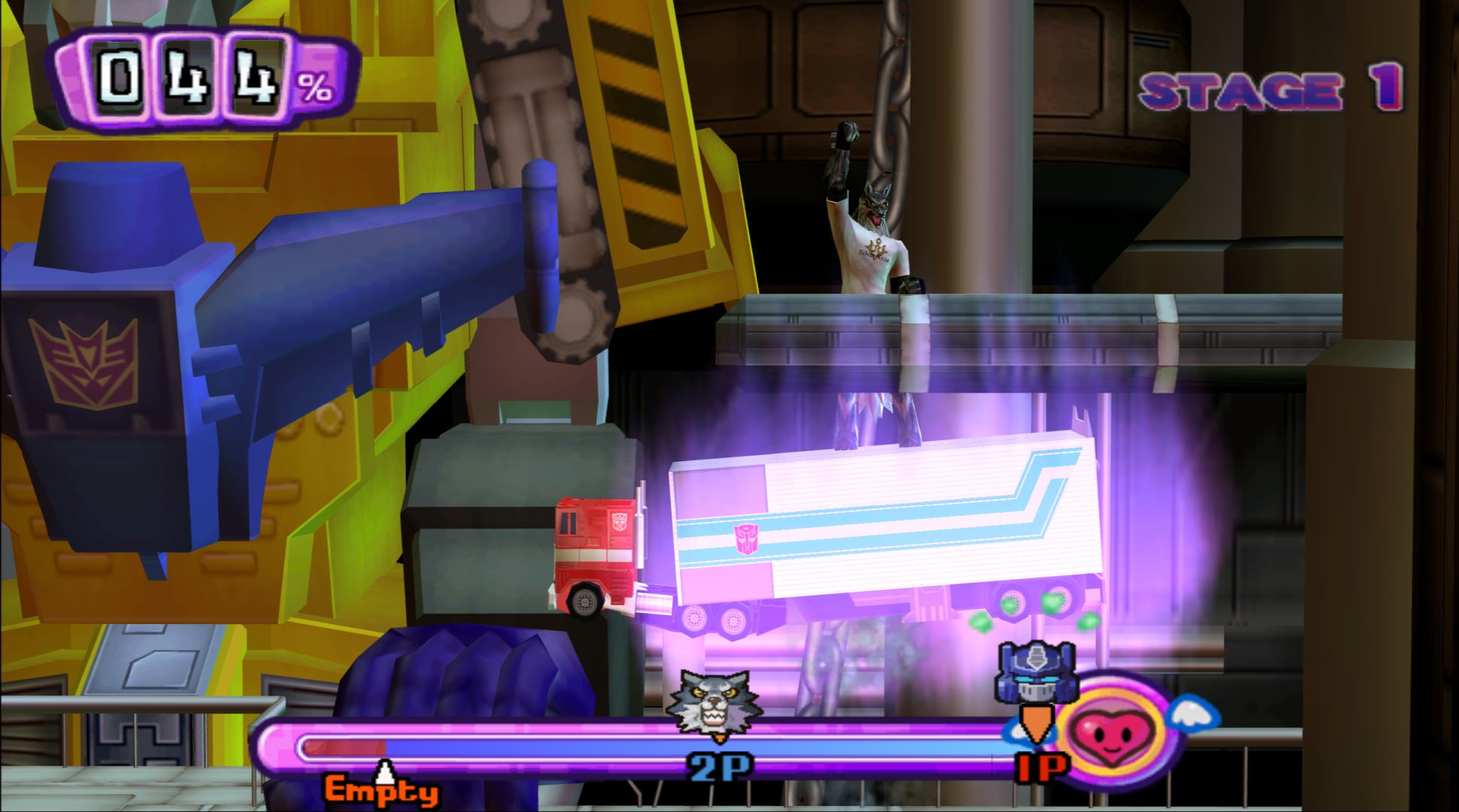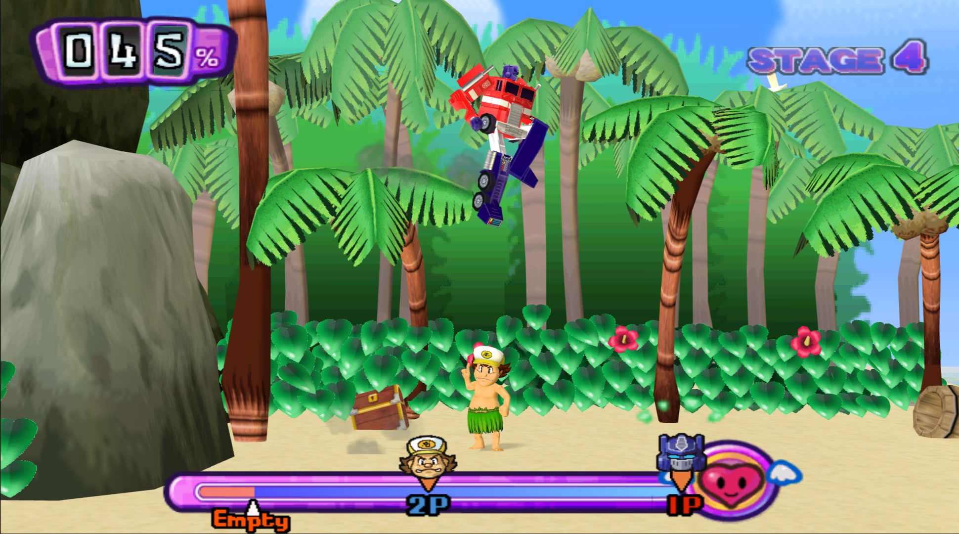 The fighting itself is similar to smash, with basic attacks on the A button and special attacks on the B button. It doesn’t seem quite as varied as Smash Bros does, though, but is fine for quick blasts. Some characters are very difficult to use, such as Snake, who lays mines that are more likely to harm himself while others, like Optimus Prime, can turn into a truck to hit anyone within reach.