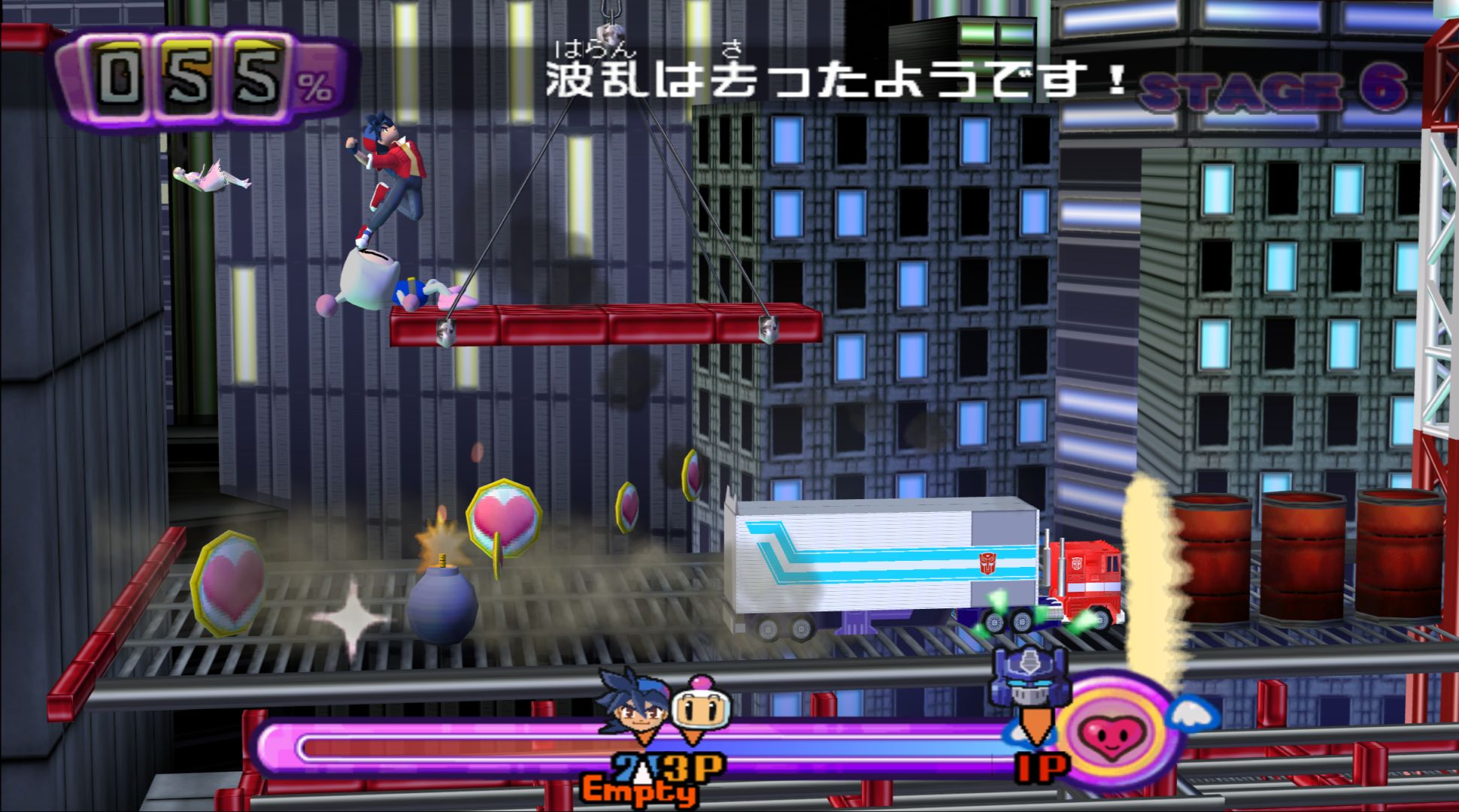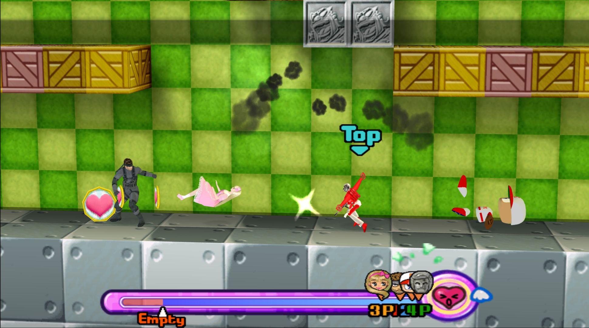 After the huge reception that Super Smash Bros Melee received, more fighting games in the same style were inevitable. This was one of the first, and was a joint venture between Konami, Hudson and the Takara toy company. This created an interesting mix of characters with Simon Belmont, Bomberman, the Japanese equivalent of Barbie, Twinbee, Beyblade dude (or “is that supposed to be Ash?” as my girlfriend asked), Optimus Prime and future Smash fighter Solid Snake.