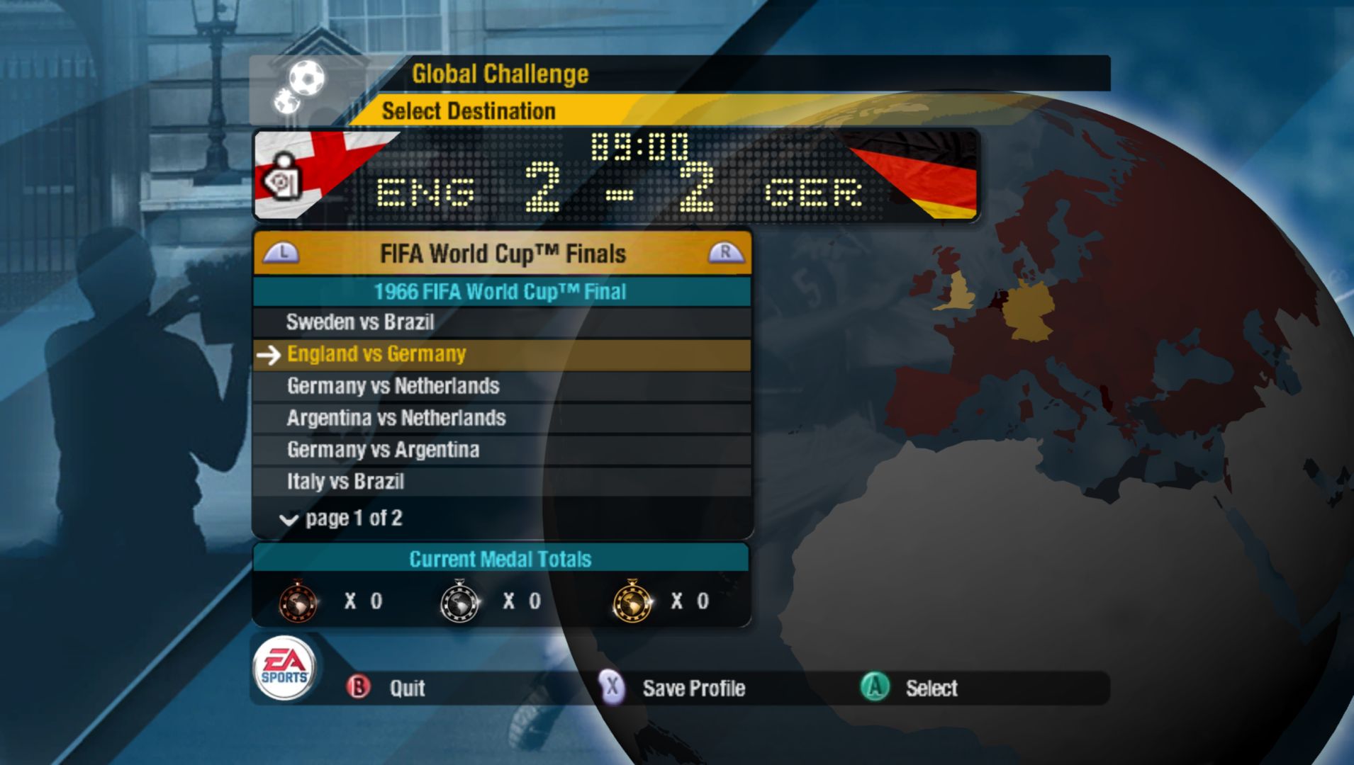 There was one thing that seemed interesting: it has a bunch of scenarios (like the N64 Internet Superstar Soccer games). Some that sounded interesting are ones based on some classic World Cup finals, such as England Vs Germany 1966. Unfortunately, this just sets the scores from then but the players are all modern ones. It would have been nice to have classic teams, even with non-official names.