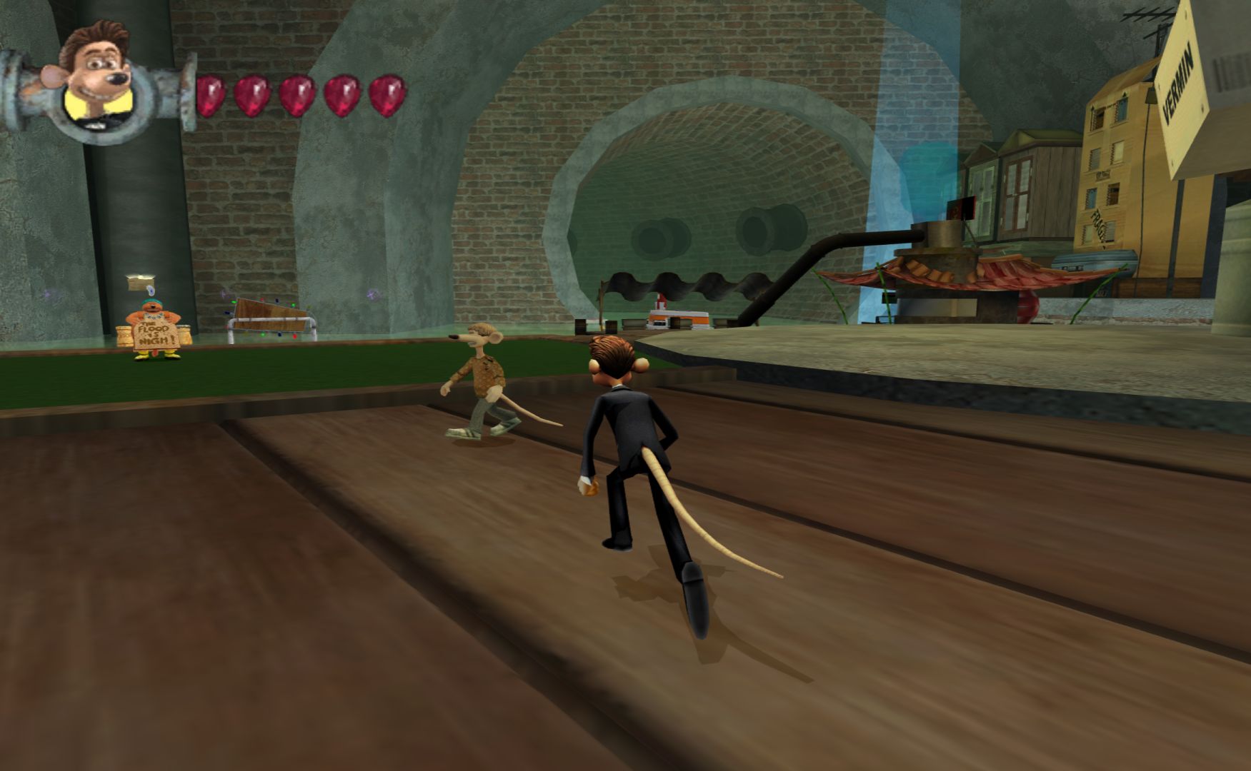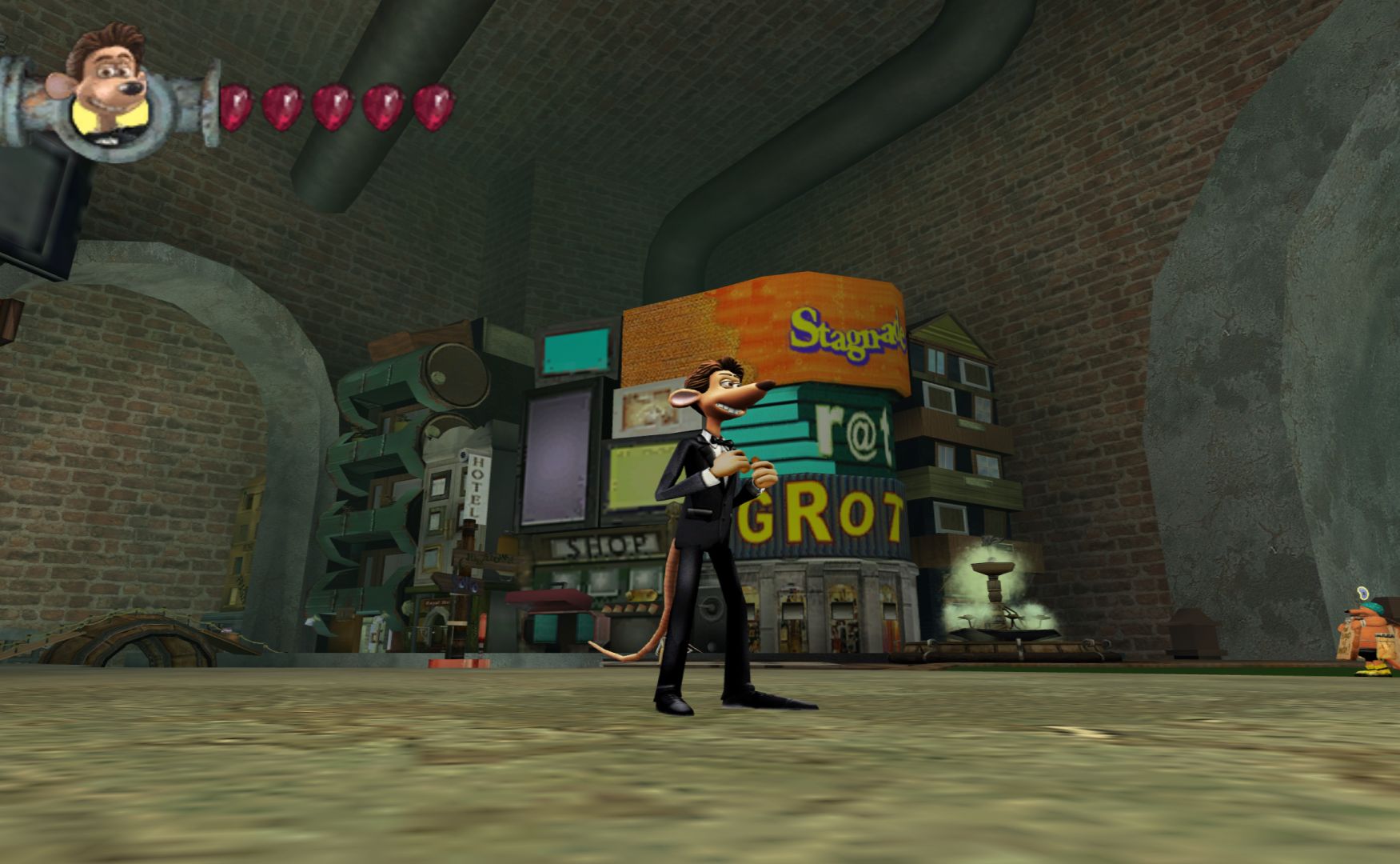 The game tie-in is a 3D platformer, but not with the typical style of levels. The first level, set in the fancy house, gives you a false sense of hope as it actually feels somewhat decent, but once you get to the sewer (told via stills of the film dubbed over by the game cast, very PS1 feeling) it all goes downhill.