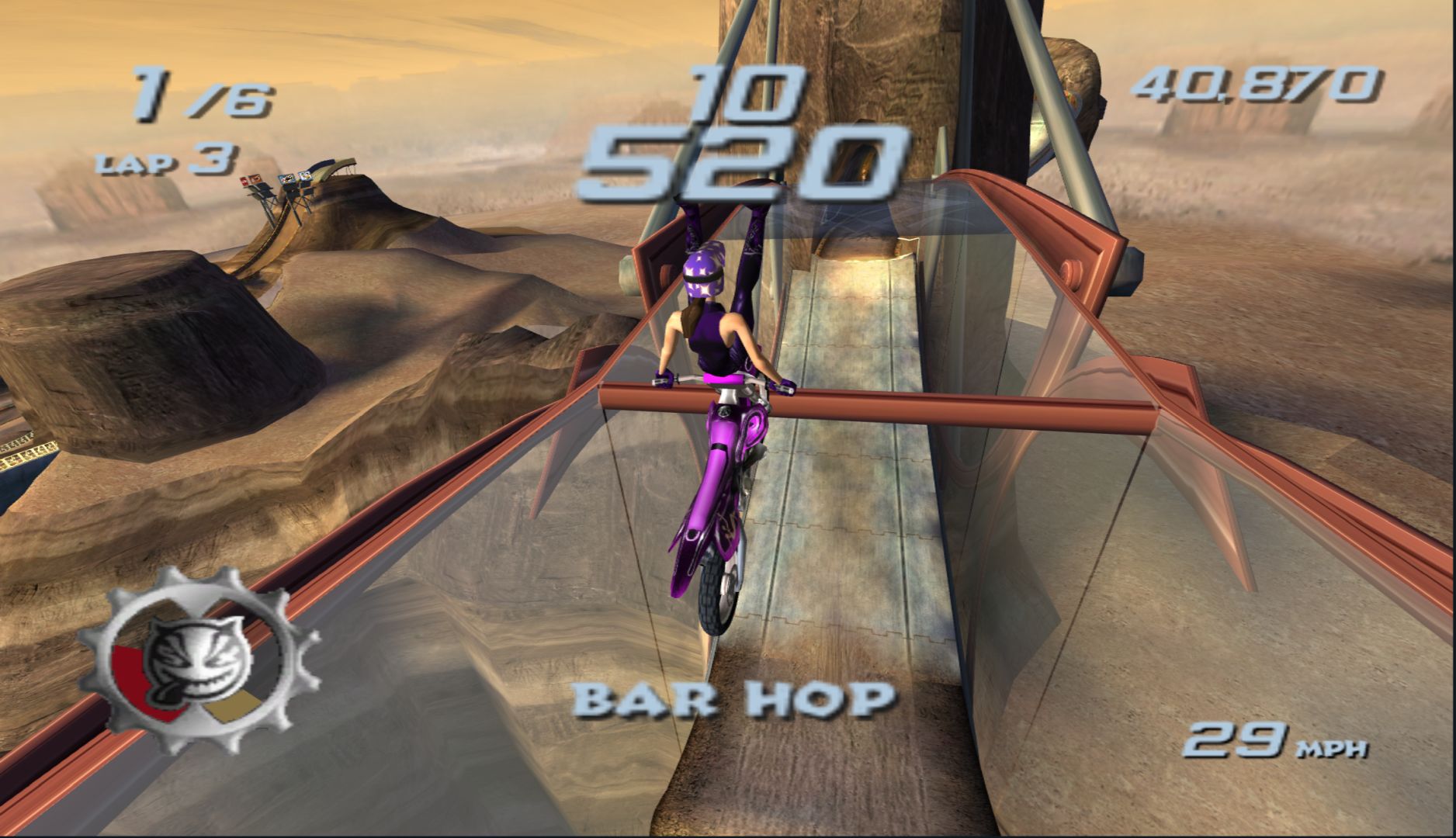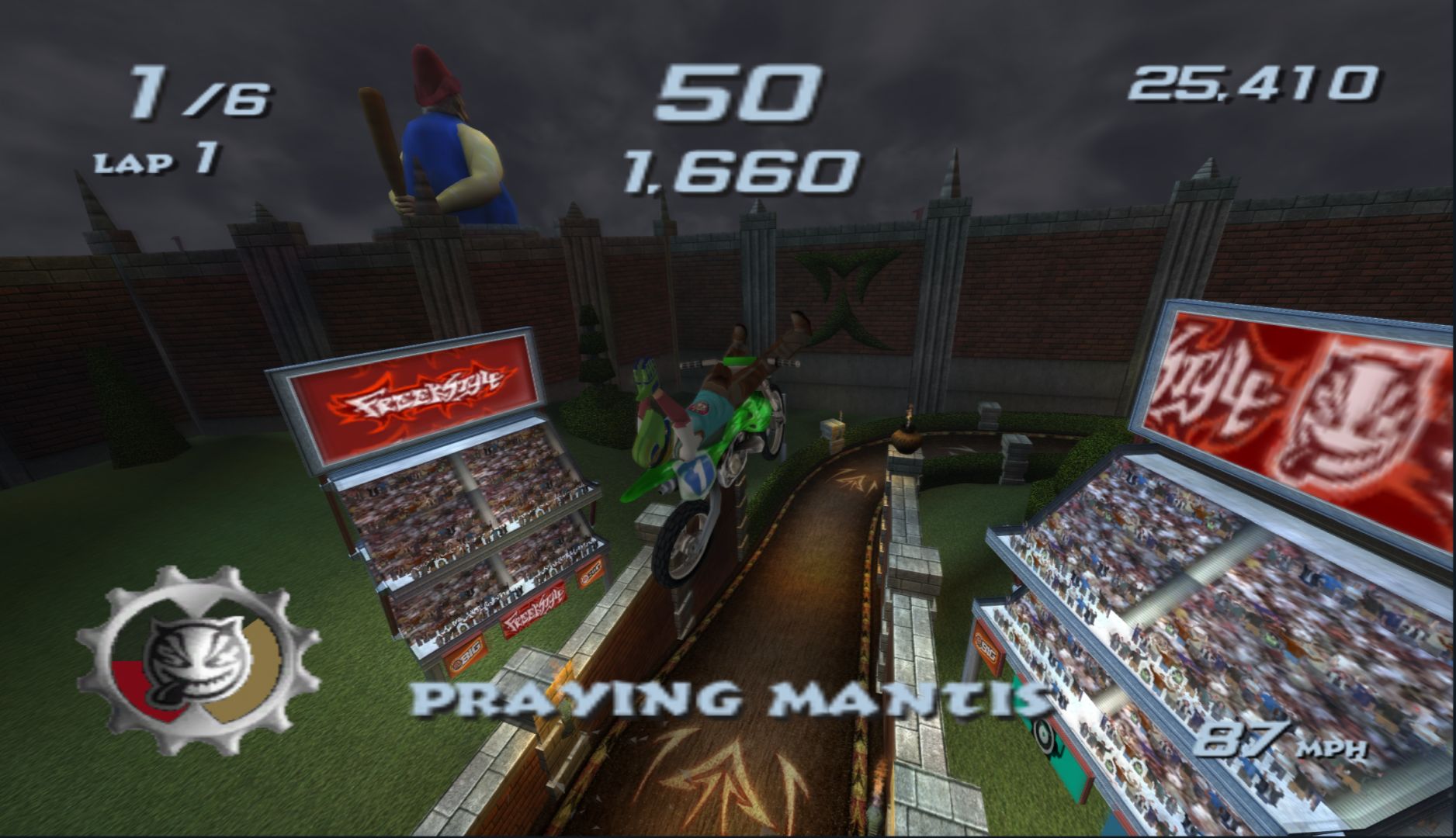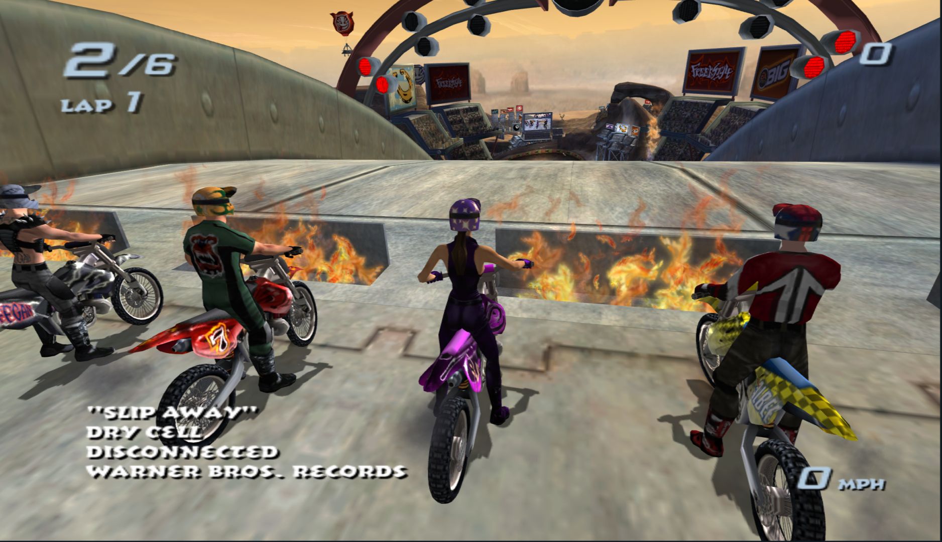 When you make “wacky characters” a big part of a game, they really need to have some charm to them. The cast of Freekstyle is a group of people that anyone would immediately dislike the moment they talk. Thankfully, the game makes up for that by its stunt-based racing gameplay, which takes what EA did in SSX and adds it to supercross motorbikes.