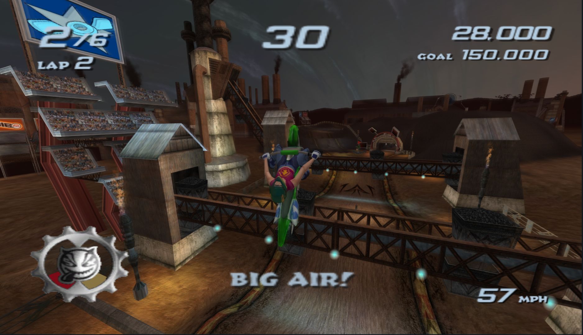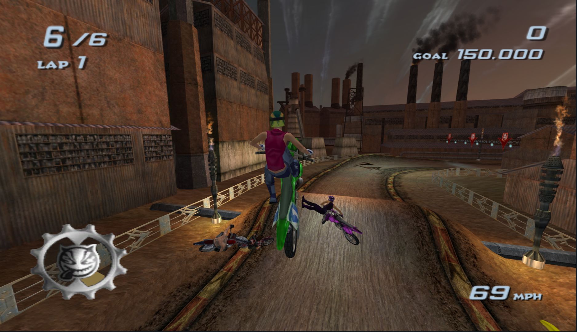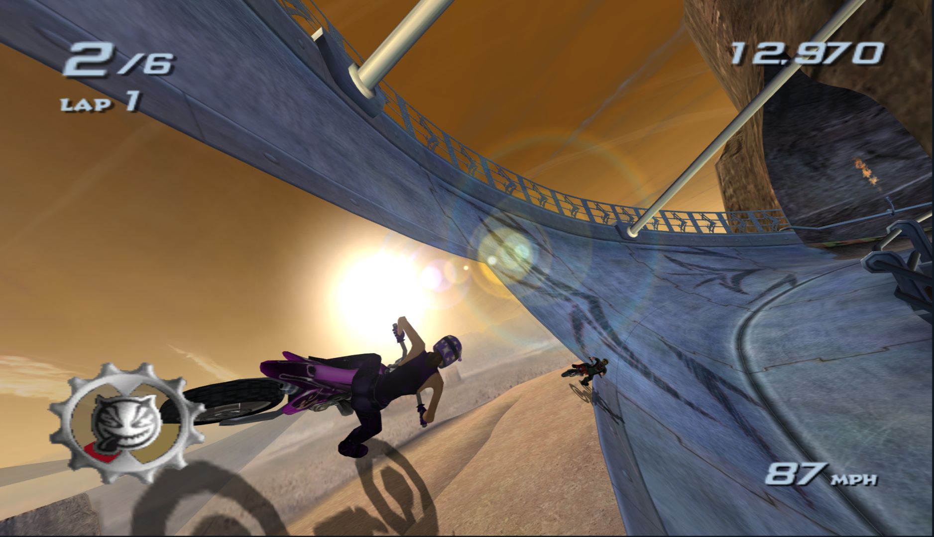 When you make “wacky characters” a big part of a game, they really need to have some charm to them. The cast of Freekstyle is a group of people that anyone would immediately dislike the moment they talk. Thankfully, the game makes up for that by its stunt-based racing gameplay, which takes what EA did in SSX and adds it to supercross motorbikes.