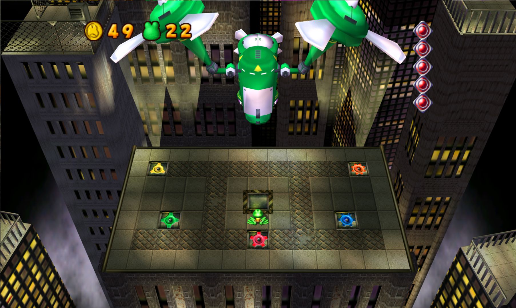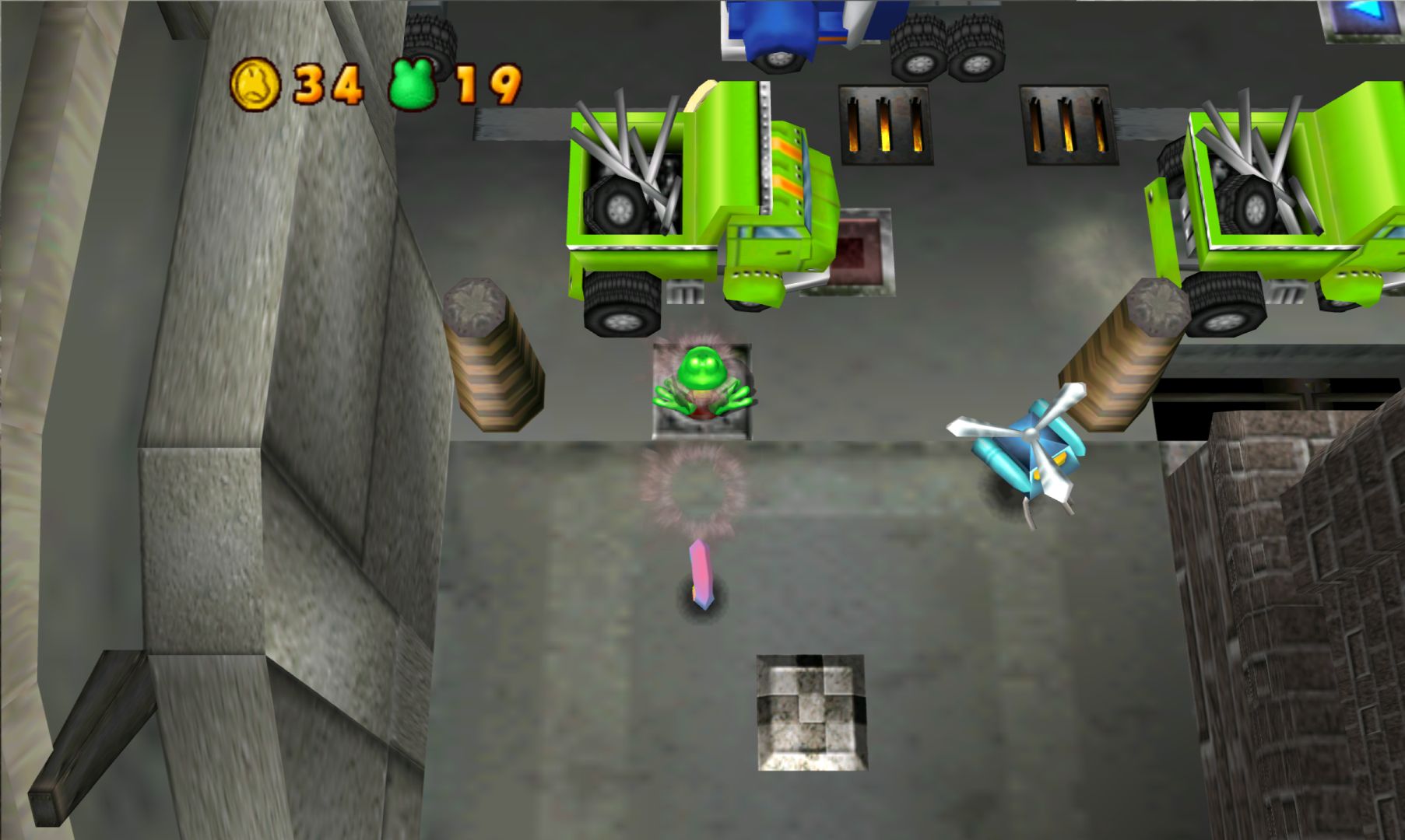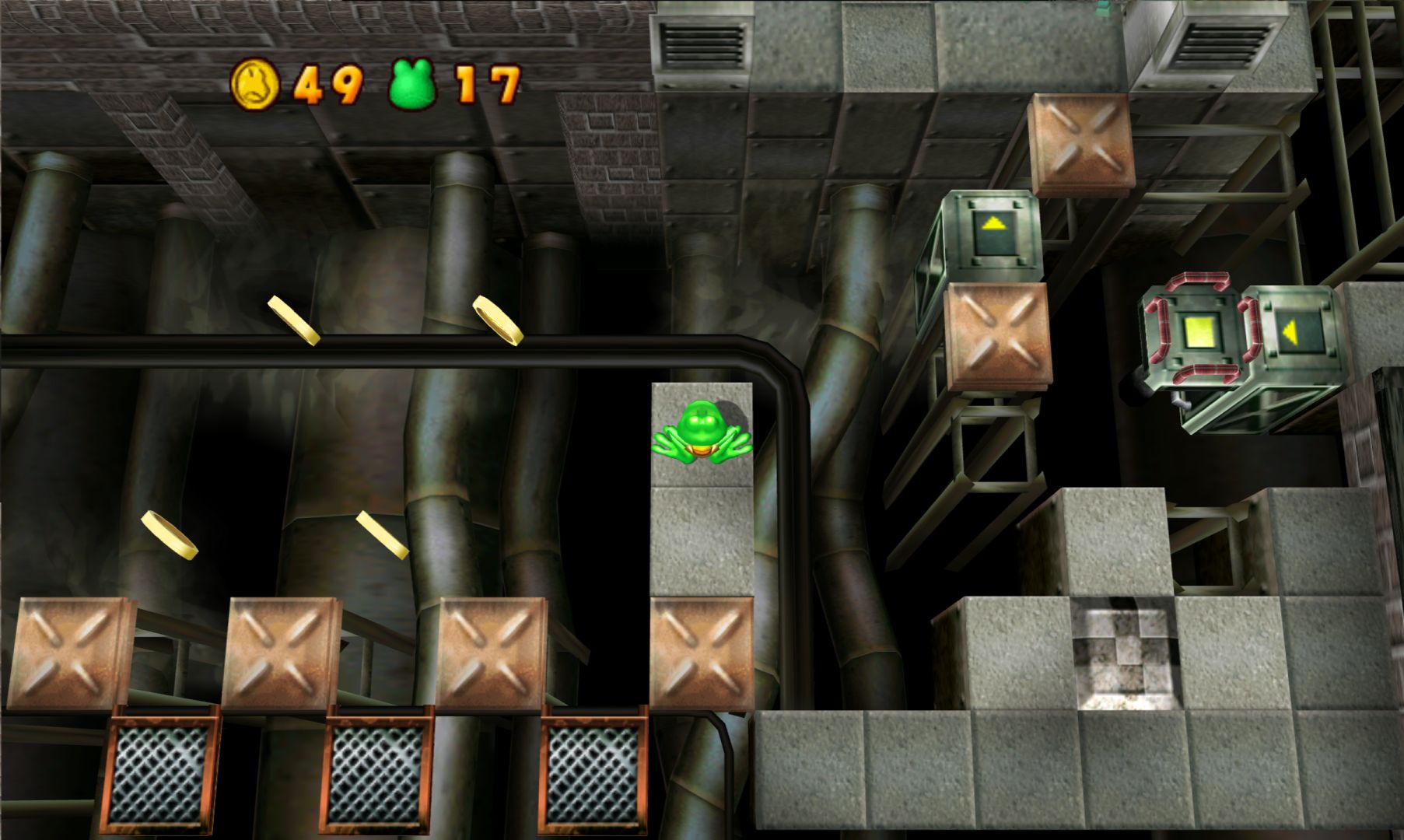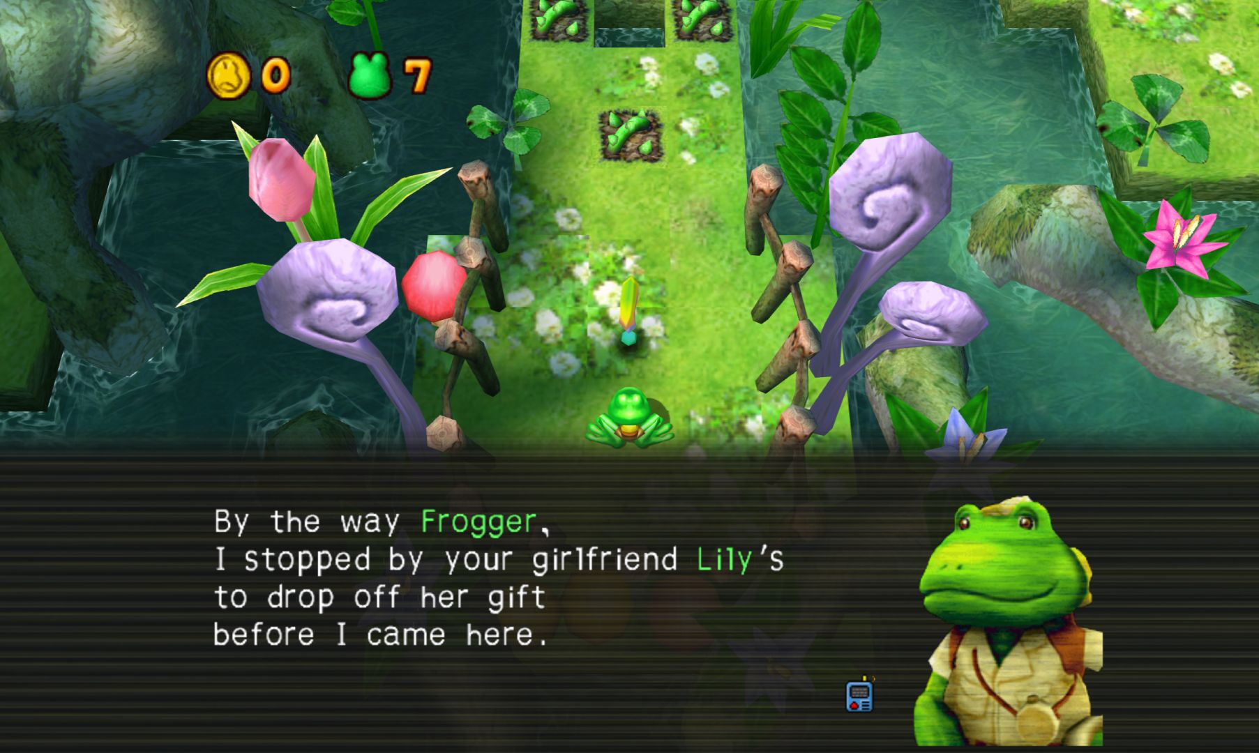 It also starts out with Frogger’s creepy uncle (or something) who then has a space ship land on him out of nowhere (also seemingly destroying the swamp, it’s really not explained very well) and you have to help FIRST (Frog International Rescue Support Team) take on TRIP (Tyrannical Reptiles in Power), because of course bad acronyms are involved.