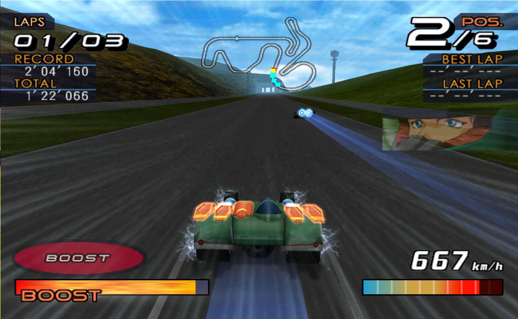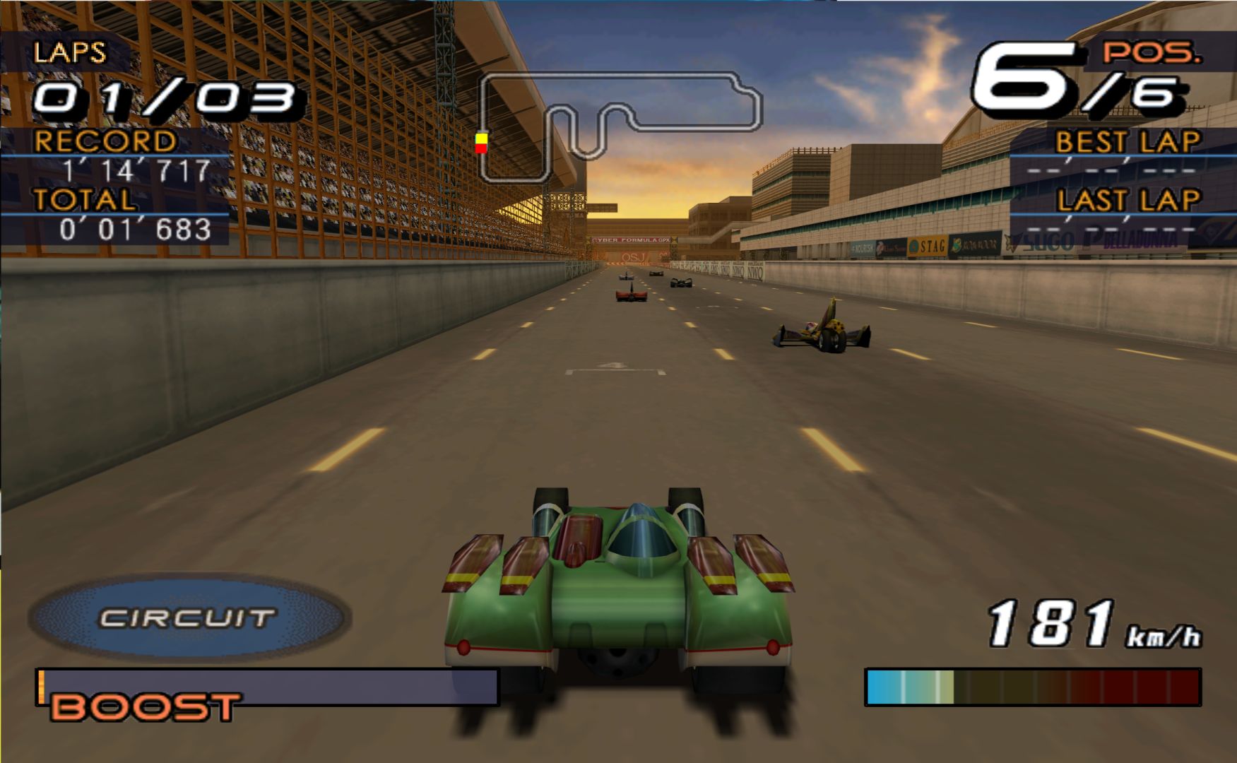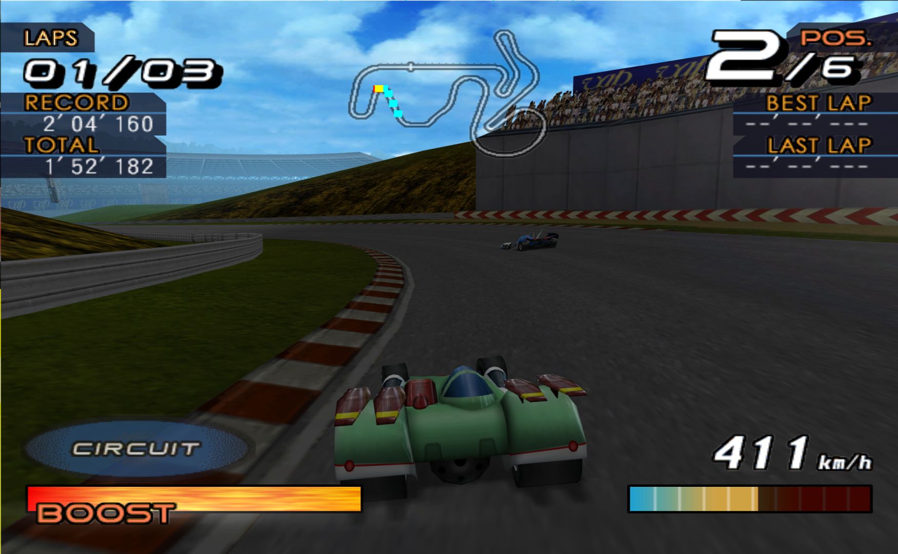 Future GPX Cyber Formula is an anime about futuristic formula 1 races – so a video game adaptation is a rather simple thing to do. You choose one of the many different tuned up cars to race with and race around courses that take place in cities. It’s a lot like Jacques Villeneuve’s Racing Vision, except actually done well.