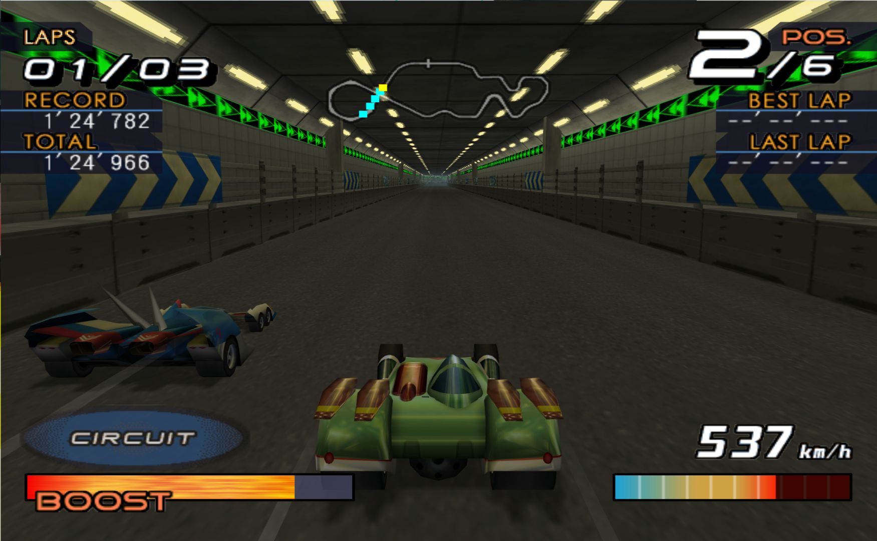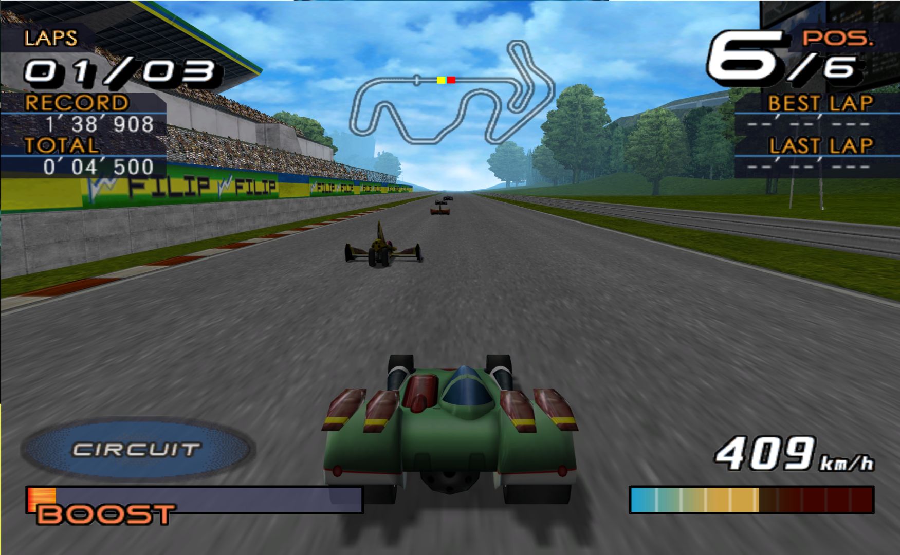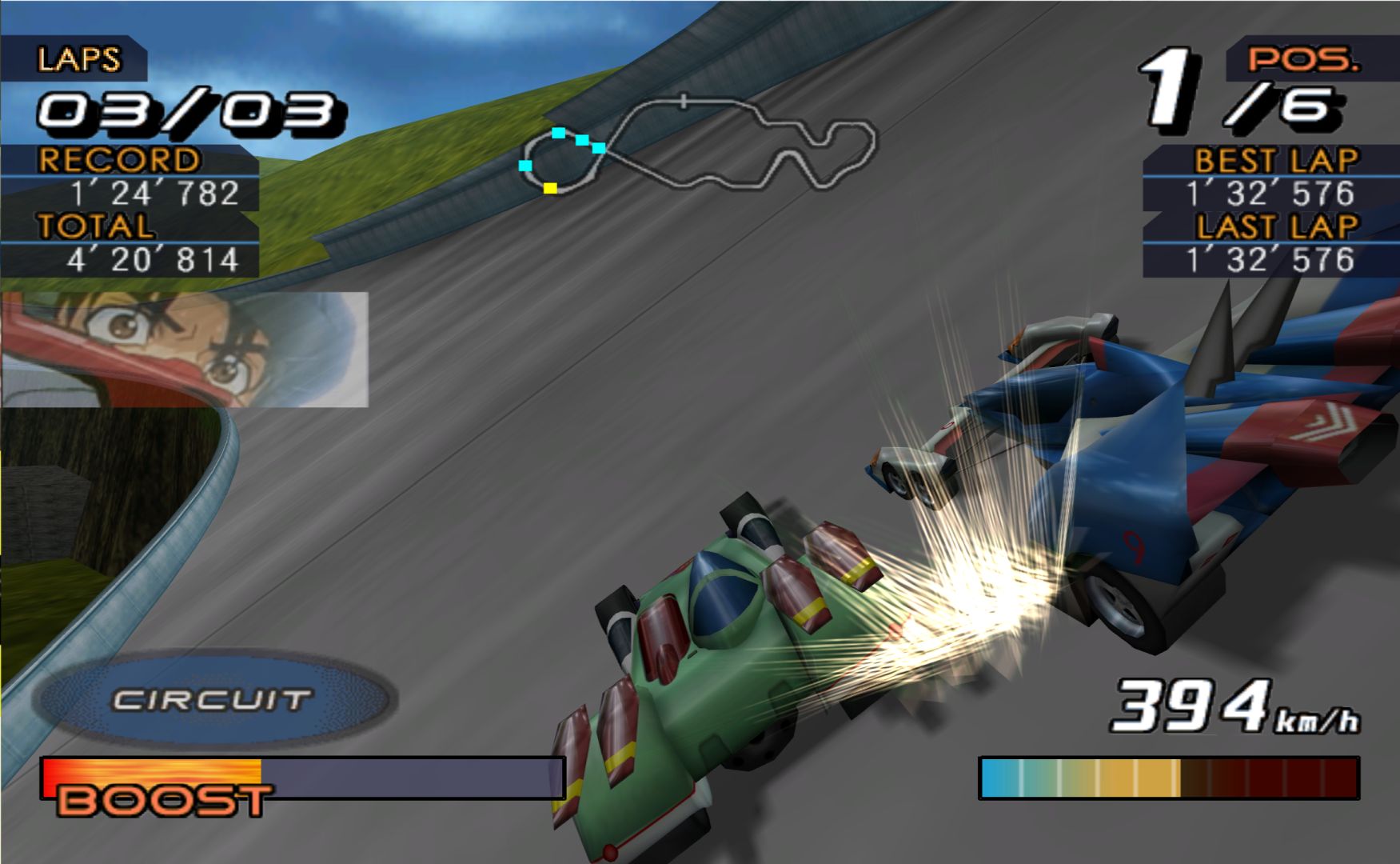 Future GPX Cyber Formula is an anime about futuristic formula 1 races – so a video game adaptation is a rather simple thing to do. You choose one of the many different tuned up cars to race with and race around courses that take place in cities. It’s a lot like Jacques Villeneuve’s Racing Vision, except actually done well.