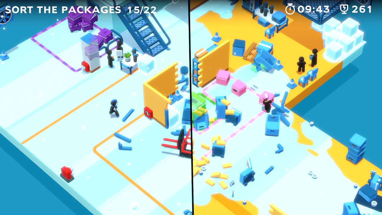 While reading views about other co-op games, this one popped up. It’s a Switch exclusive and published by Nintendo, but I had never heard of it. While there’s not a massive amount of levels, the physical-based chaos is a joy to unleash, especially when playing with someone else. You’re the son of a large business owner and have to climb the ranks of the company. The first task is to move a projector into a meeting room. How you do it doesn’t matter, you can carefully open doors and manoeuvre it around, or create a slingshot with an electrical cable and launch it through the walls.
