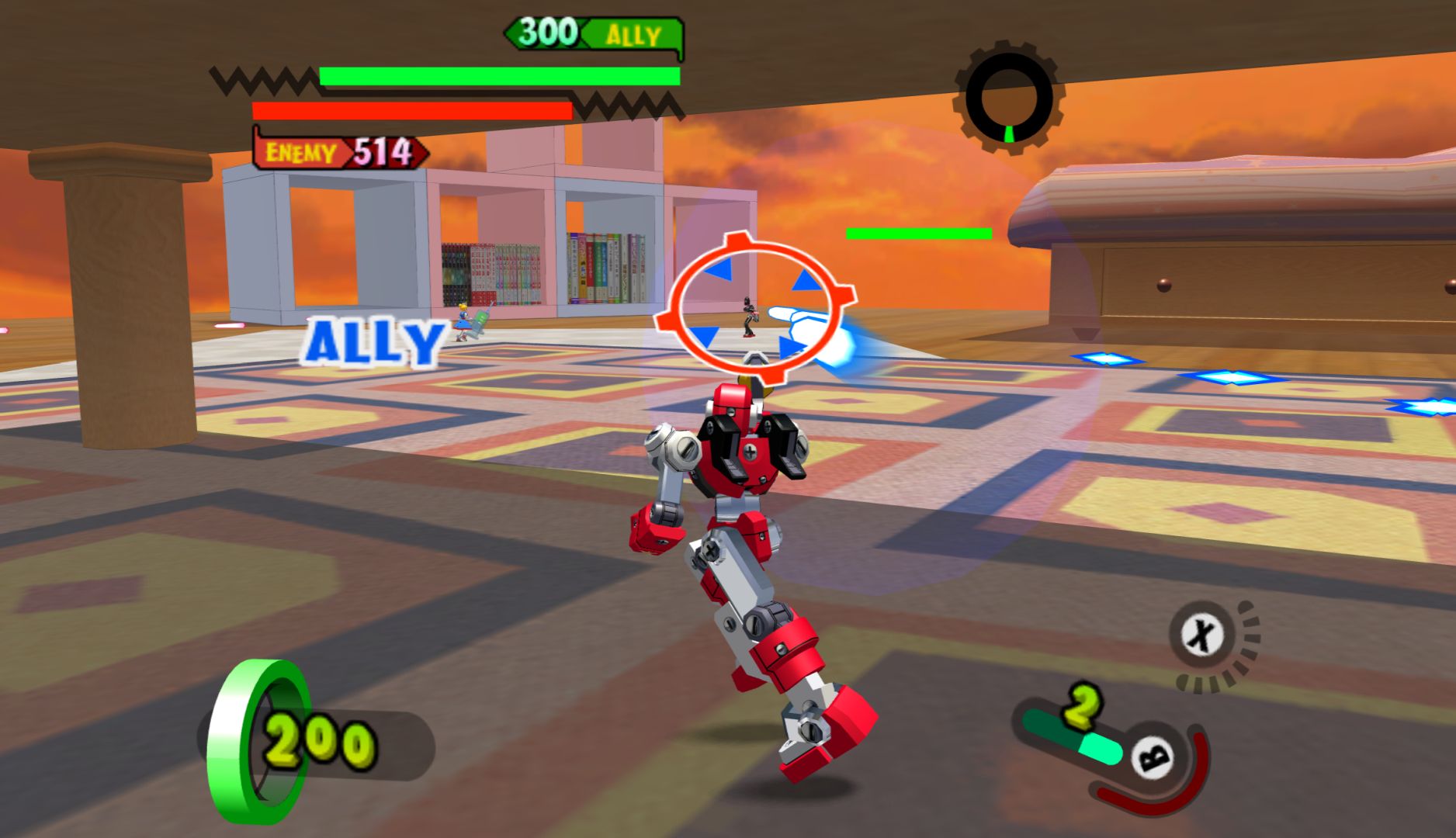 The controls also feel awkward, your melee dash attack seems to go in a random direction and you automatically lock on to enemies. You have a jetpack, but it’s unwieldy and inconsistent. Without the solid movement of Custom Robo, it’s just very basic and grows tiresome over time. You can play as different robots – they kind of act like extra lives, but they don’t change things much.