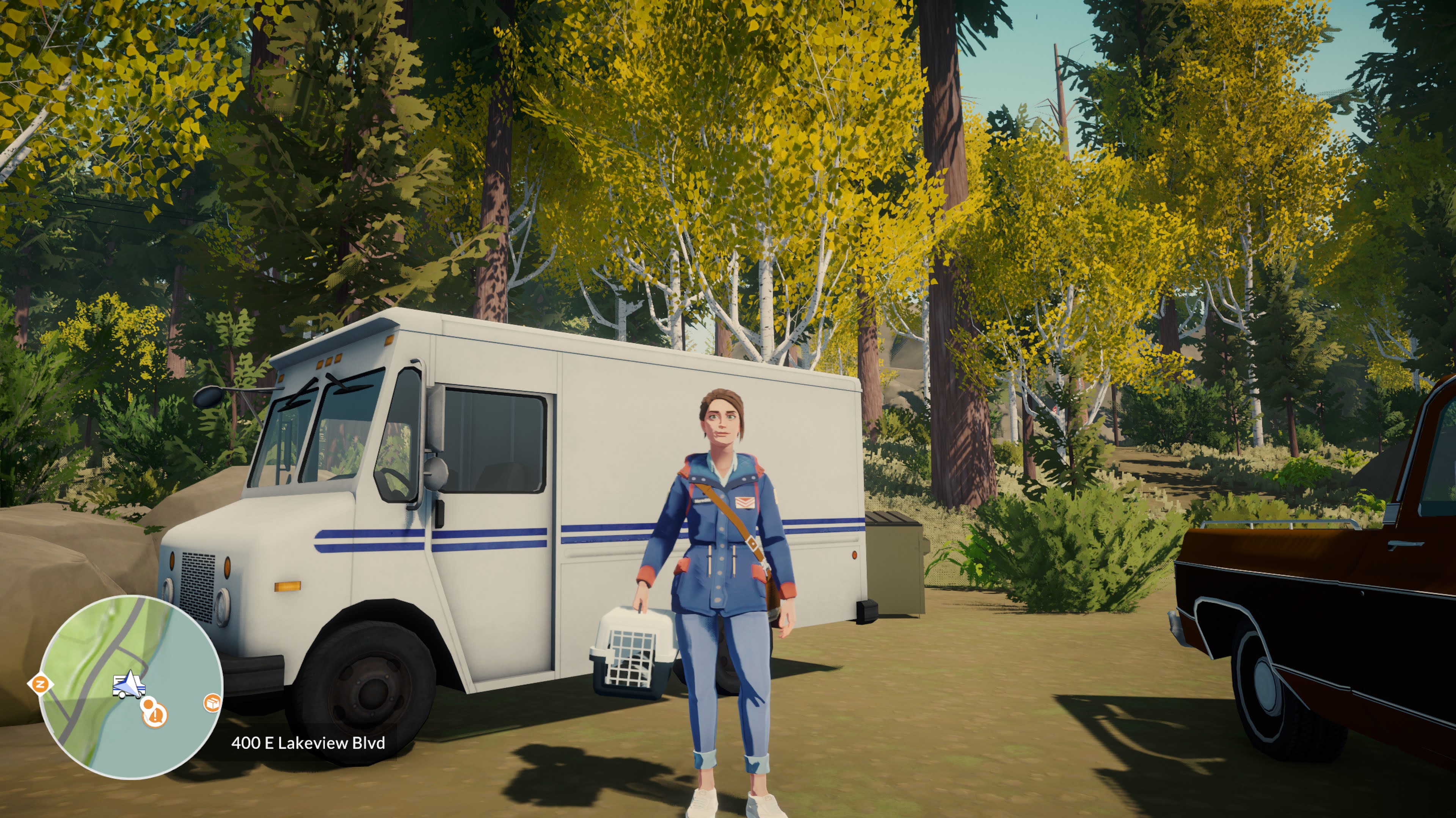 Lake is a game about delivering parcels. You play as Meredith Weiss, a software designer in 1986. She takes a break from her time-consuming job to fill in for her dad in her hometown of Providence Oaks. Throughout the game you will deliver packages, help out residents, meet up with old friends and new faces. Will you find a love for the peaceful rural setting, or will you head back to the fancy software job in the big city?