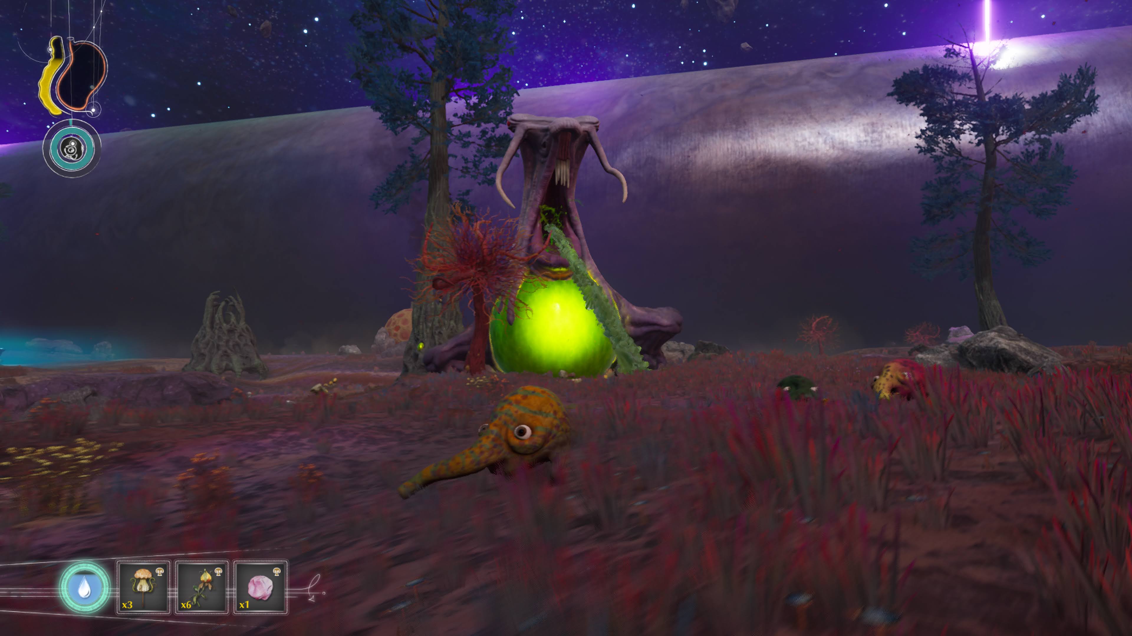 While there are many, many harsh dangers to face, there is one thing that The Eternal Cylinder is generous about: No matter what abilities are needed, as long as the Trebhum you control can progress, the others in your family will find their way to you. This means you don’t have to hunt for multiples of the same ability just to progress. The other Trebhum are not immune from any danger, though – if they’re caught by nearby predators or the Cylinder itself, they will die.