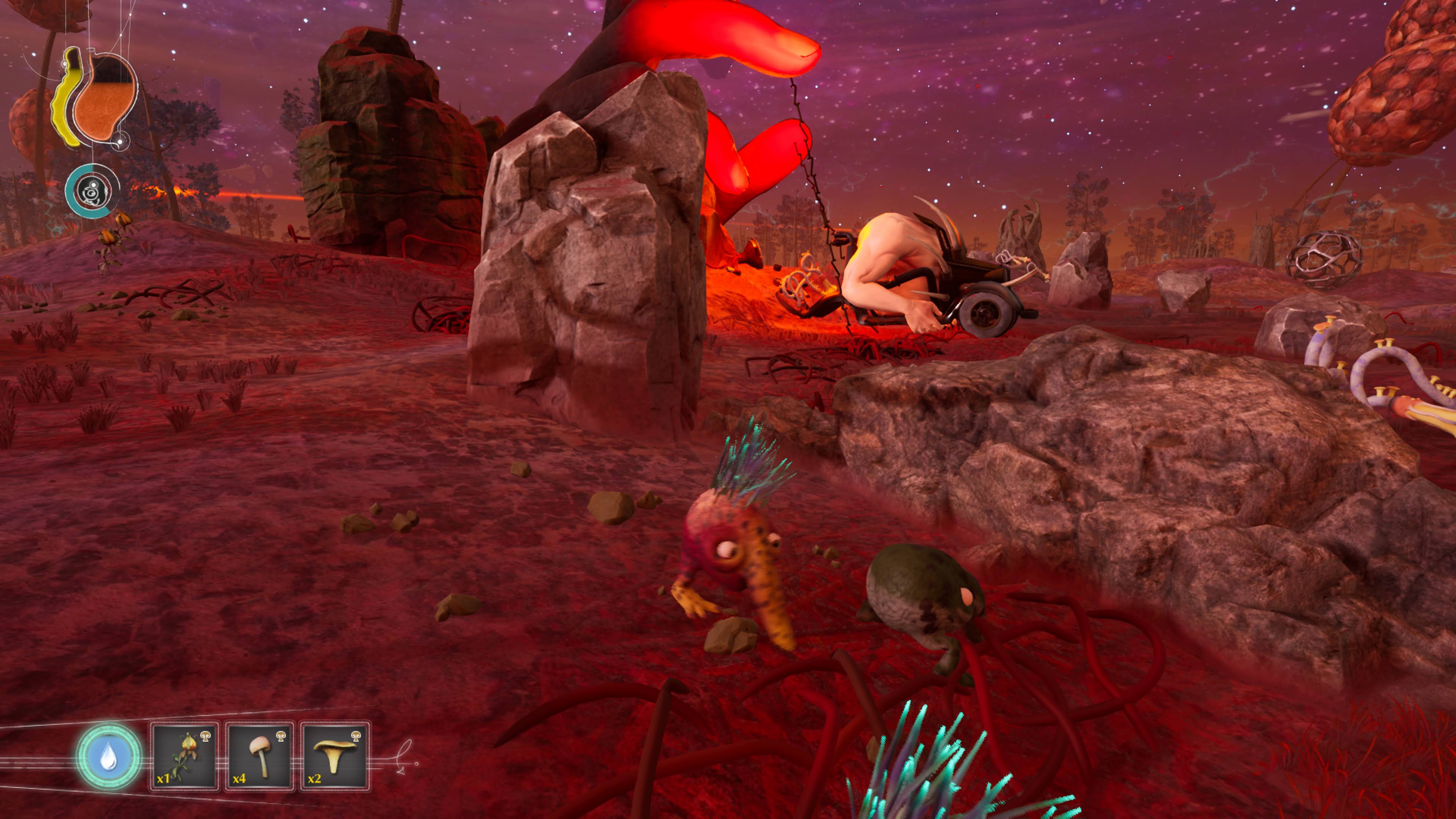 Alongside the various wonderful and wacky creatures, you will also encounter creatures described as servants of the Cylinder. These monstrosities look like human-like body parts mixed with machinery, such as a hot-rod with arms. These creatures are extremely dangerous, and even their gaze is devastating, as the green light they produce will slowly take away the mutations your Trebhum have.