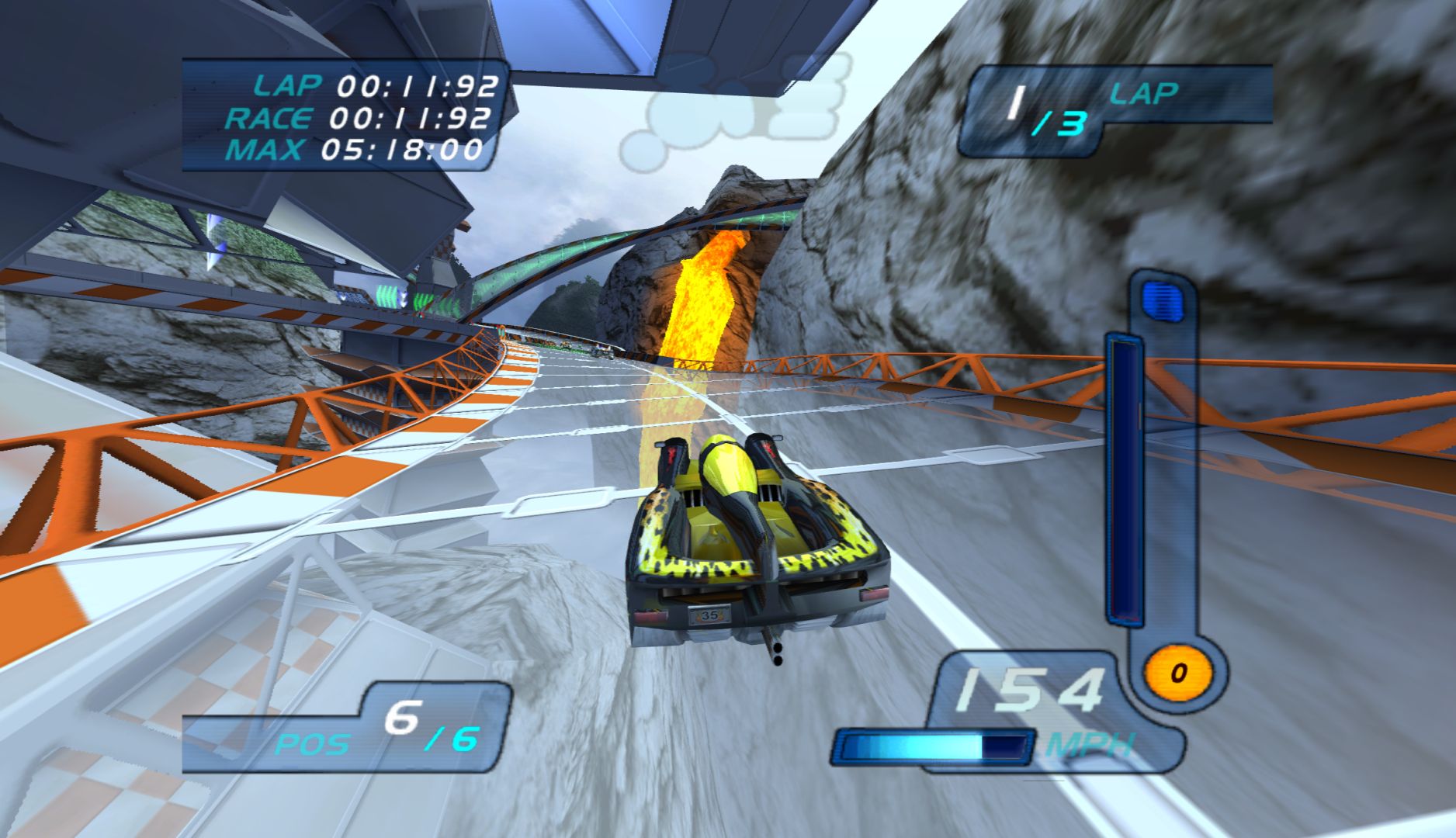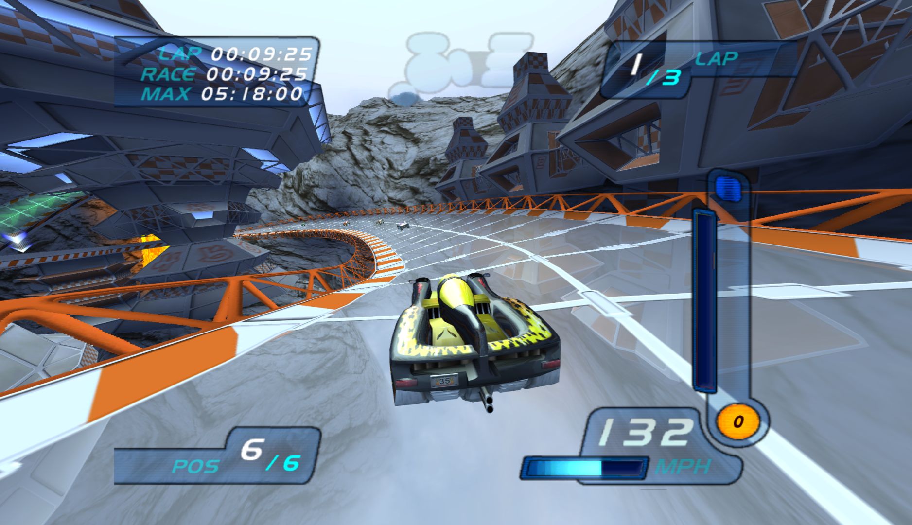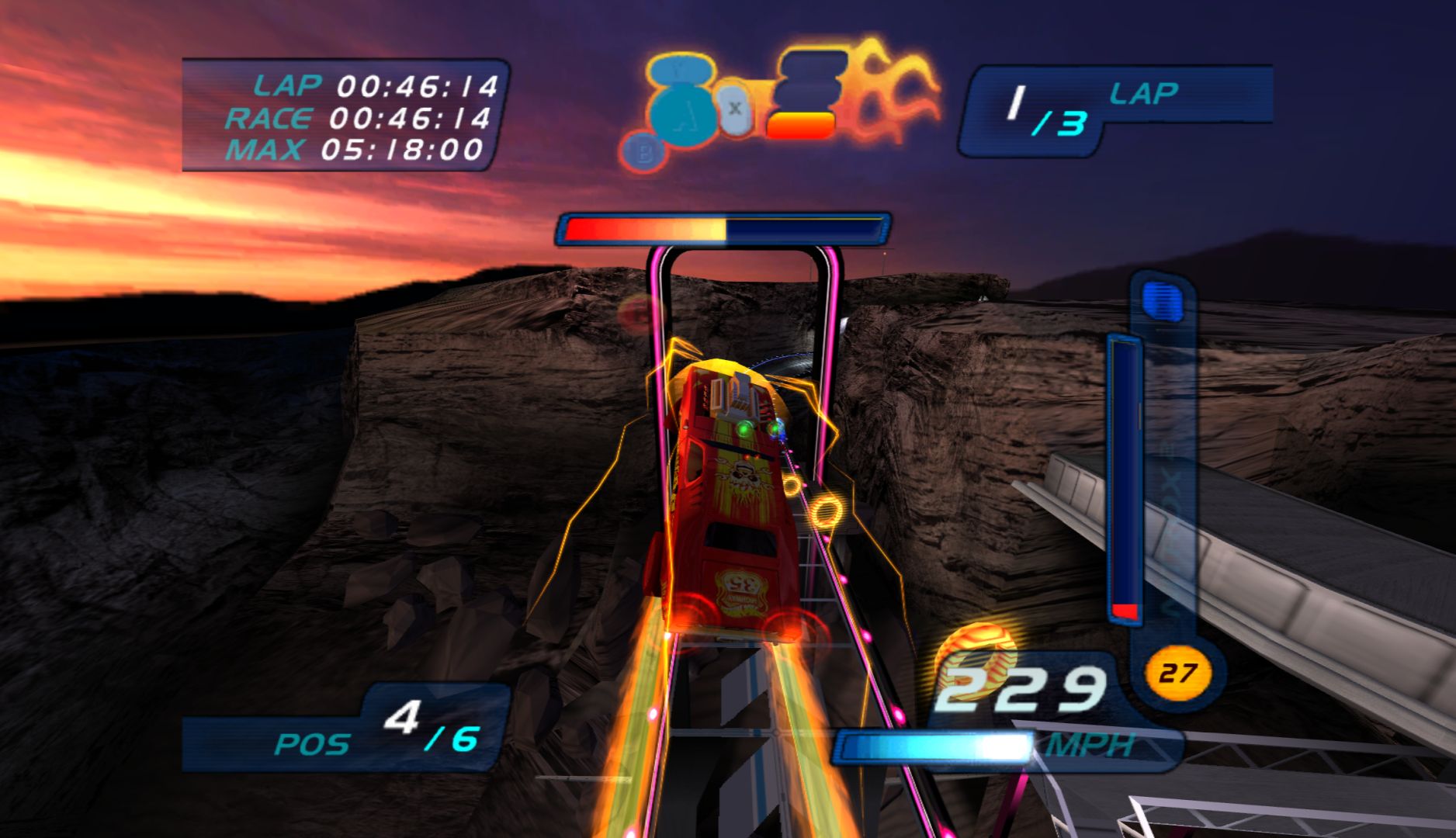 While the previous Hot Wheels game, Velocity X, had a significant focus on story, this one removes it completely, instead just having a bunch of tracks to race on. This is also strange in that this game is based on a film and TV show. It also moves from the “Futuristic City” concept and onto full on F-Zero style racers, making it immensely generic. What doesn’t help matters is that, unlike every other futuristic racer, this is very slow, and the cars have terrible handling.