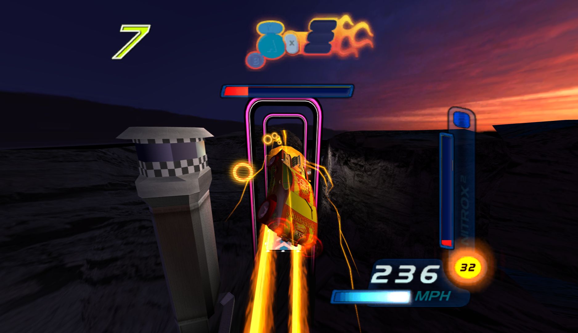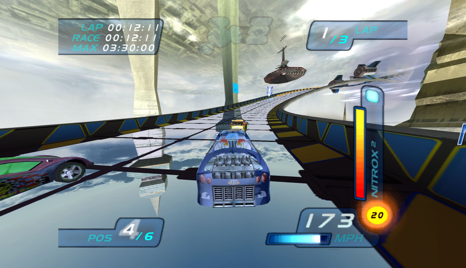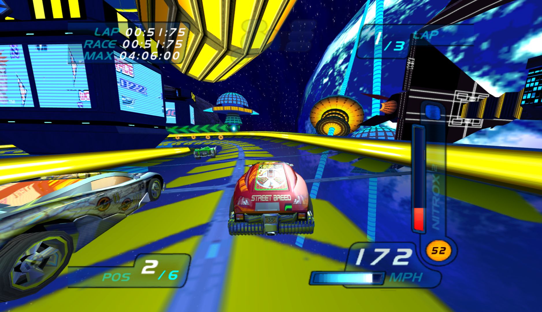 While the previous Hot Wheels game, Velocity X, had a significant focus on story, this one removes it completely, instead just having a bunch of tracks to race on. This is also strange in that this game is based on a film and TV show. It also moves from the “Futuristic City” concept and onto full on F-Zero style racers, making it immensely generic. What doesn’t help matters is that, unlike every other futuristic racer, this is very slow, and the cars have terrible handling.