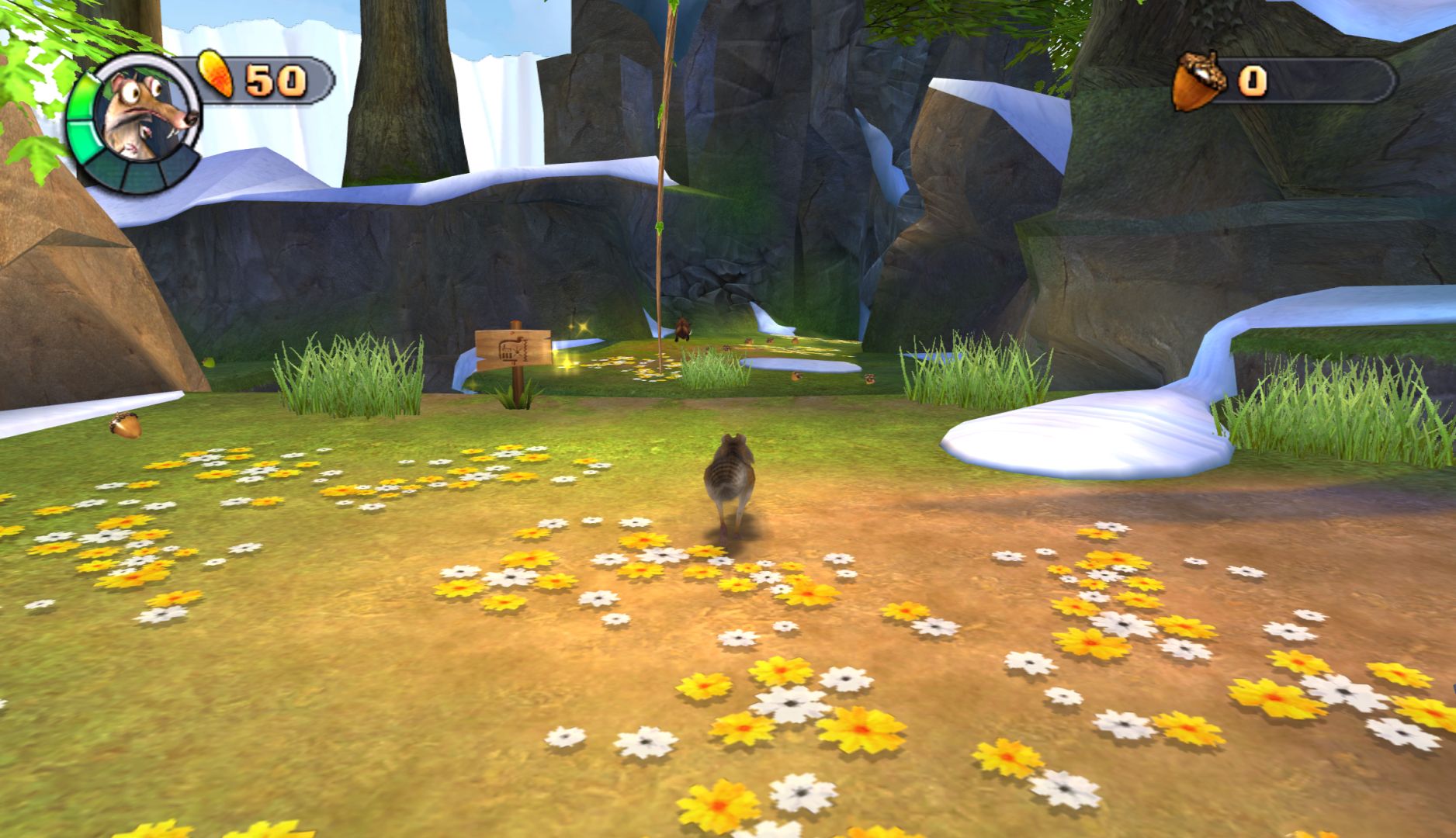 The Ice Age films are something that, despite their popularity, I’ve never actually properly watched. I am aware that Scrat, the squirrel-like creature that is the star of this game – spends the entirety of the films hunting for an acorn to bury it. So I found it odd that in this game, you collect thousands of icons – and they’re only used to unlock gallery images so you’ll quickly start ignoring them. There is a golden acorn that seems to be Scrat’s aim here, but it still seems odd.