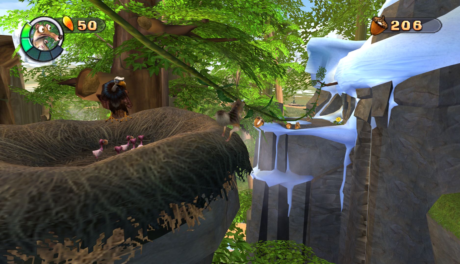 What you get is a fairly typical 3D platformer. The movement and most mechanics are good, although you can only stun enemies for half a second so it’s best to just ignore them all. The problem, instead, lies in the game’s tedious challenges, like slowly collecting chicks or really dull minigames. Some levels also have hidden walnuts you need to progress, but there’s no consistency to them. Some are rewards for minigames, some are at the end of obvious platform challenges while others are just off to the side, hidden behind tree trunks or something.