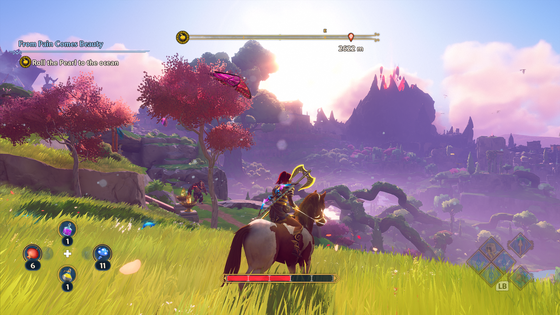 The main thing I had heard about this was that it’s very inspired by Breath of the Wild, which is a good enough game to be inspired by. While this influence is undeniable, Fenyx Rising also feels like a completely different game at the same time. With the wings of Icarus, you can glide quite a long distance, navigating the world is very easy but also enjoyable.