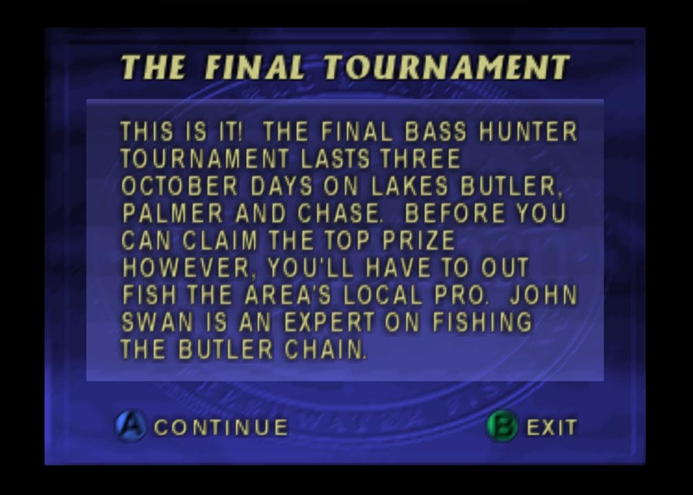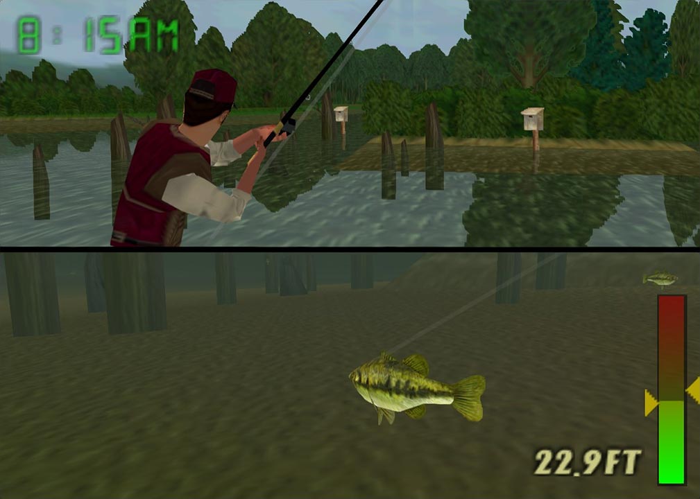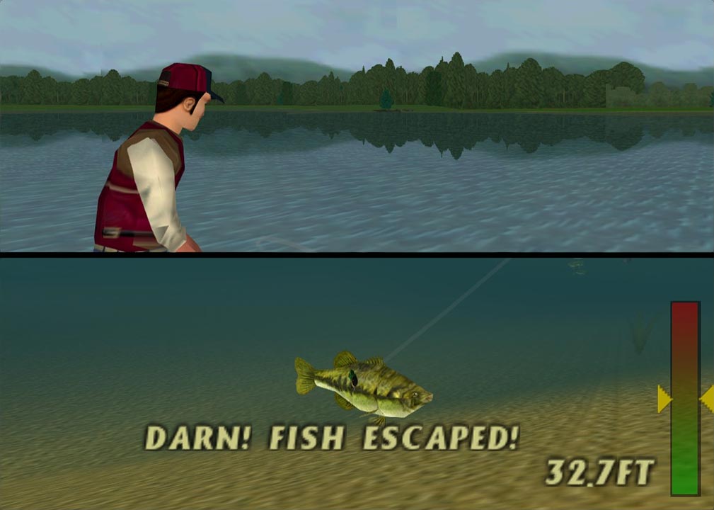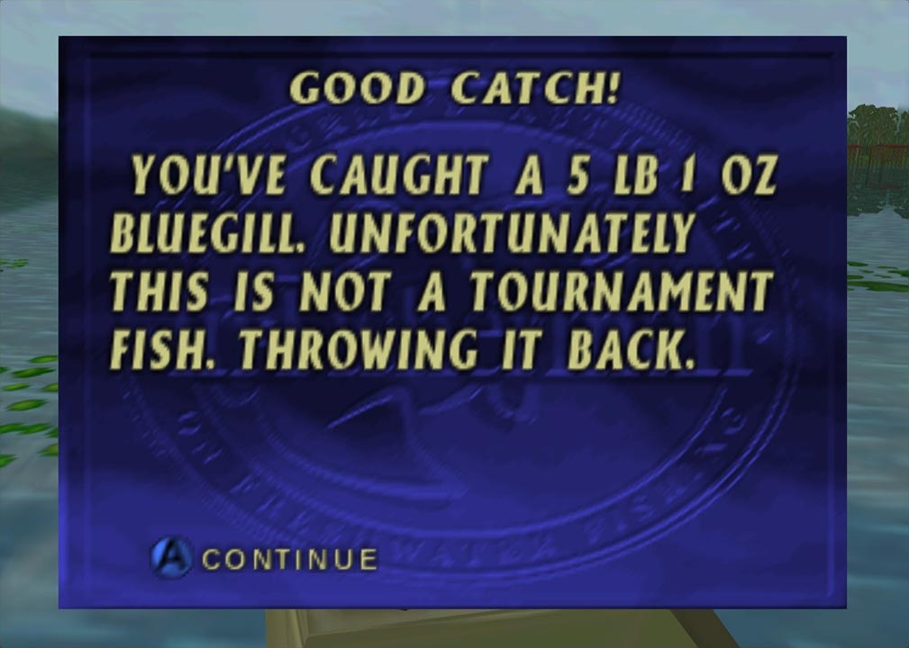 Which kind of bring us to the game’s biggest flaw: Ocarina of Time’s fishing is just more fun. Bass Hunter has a lot more depth and detail, but that’s tedious stuff, and I suspect people who enjoy fishing also like the whole outdoor nature of it. In Zelda, you can just get straight to the fishing (well, once you get to the fishing pond), and there’s even a hidden fish to try and catch. In this, the hunt for fish is just slow and boring, without the enjoyment that comes with the environment around you in real life.
