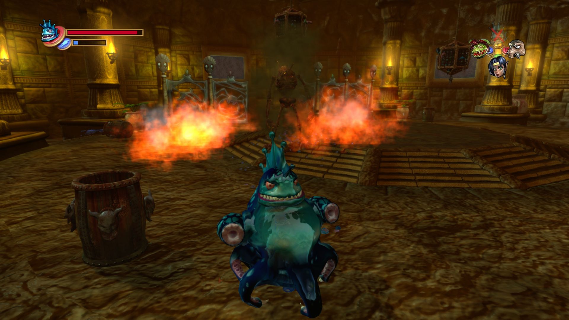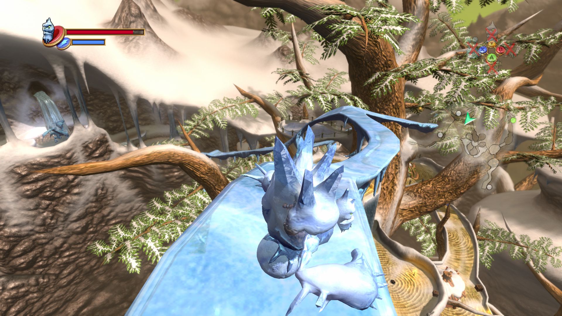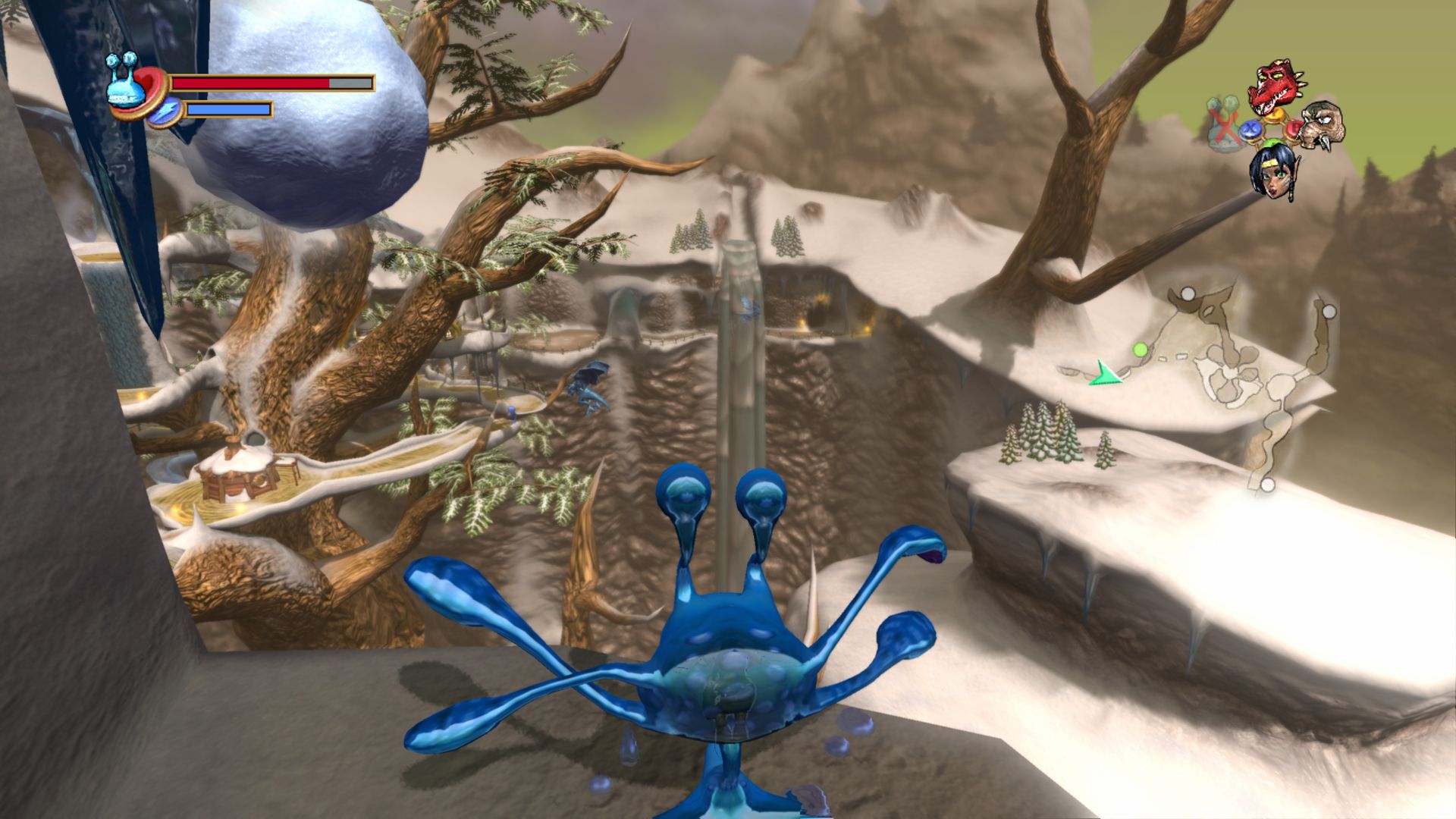 After Rare got purchased by Rare, it’s transition to Xbox (which then became Xbox 360) was more of a complete restart, changing the nature of the game entirely. Being able to capture any enemy was abandoned, and the more open game was transformed into a more Zelda-like game, where you unlocked a smaller cast of special Elemental Warriors which had abilities that let you traverse the game’s various dungeons.