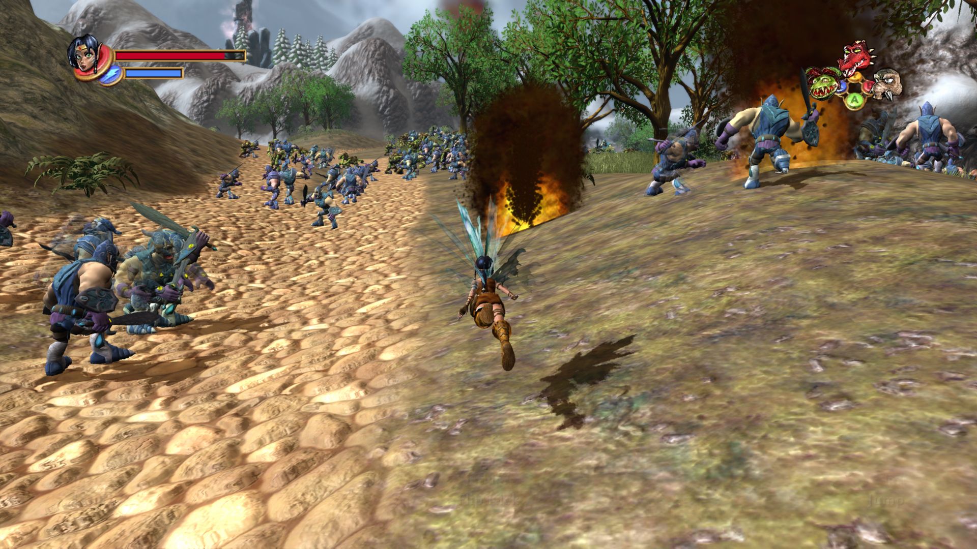 Combat is probably where these creatures shine, as on top of their original abilities, you can unlock new attacks using magical fruit you can locate in the various towns and villages and from completing side-quests. Some enemies will require specific warriors to fight them (such as the fire trolls needing to be doused with water), but for the most part you have a lot more freedom in how you attack enemies, letting you play to your style.