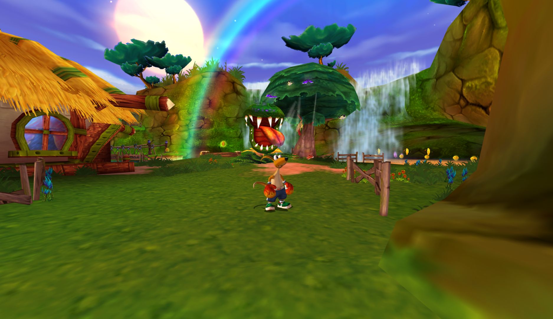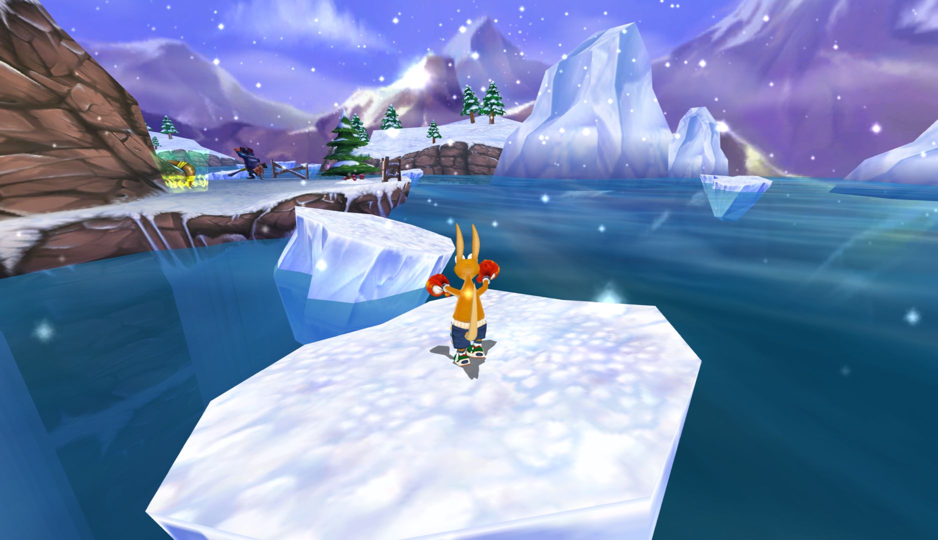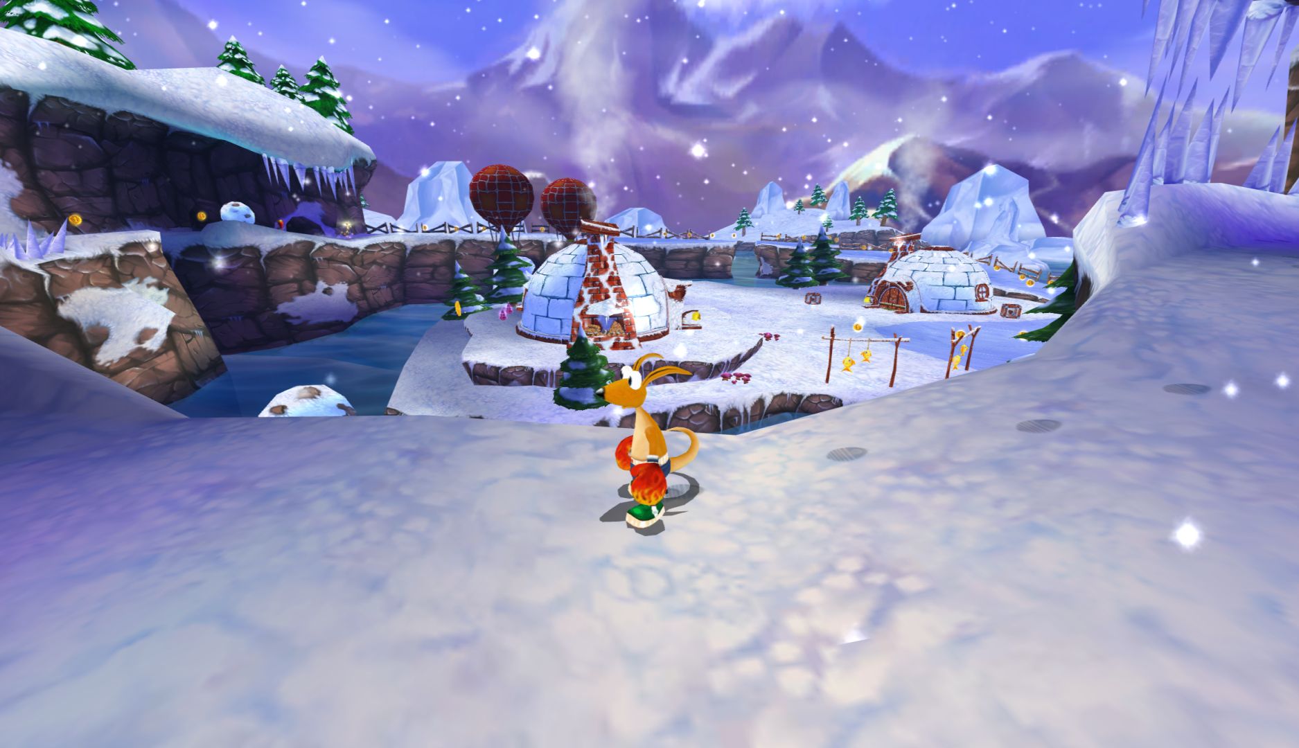 The thing is, being like Rayman 2 on paper doesn’t make it play like Rayman 2. Platforming is stiff and Kao’s jump is not satisfying. You can collect stars to make further jumps, but the difference is negligible. There are a few sections to add variety – a snowboarding level, some races, but even these feel like you’ve already played them.