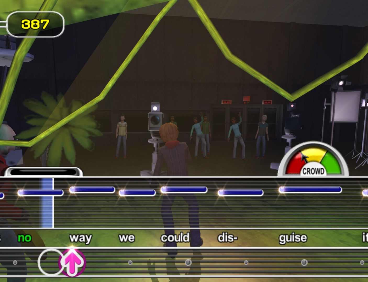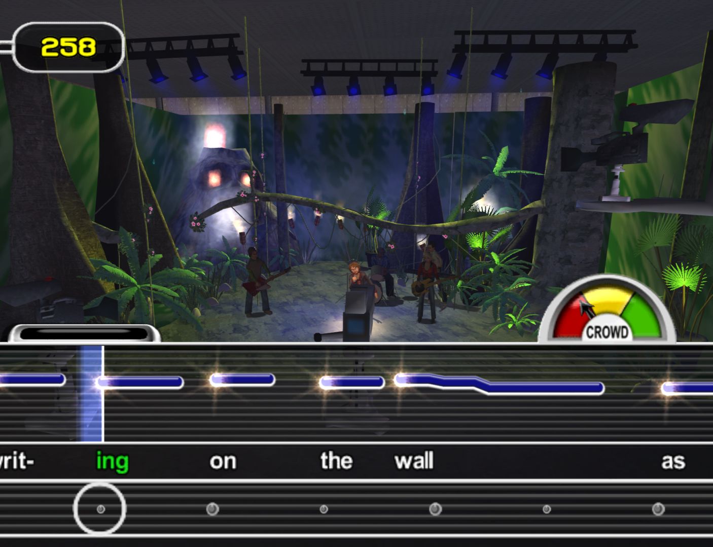 Of course, humming being more effective isn’t exclusive to Karaoke Revolution Party as Singstar does the exact same thing. It’s just a quirk of this style of game and there is a basic Karaoke mode. The song selection is a good mix with a bunch of covers of popular songs and you can turn off the vocals as well.