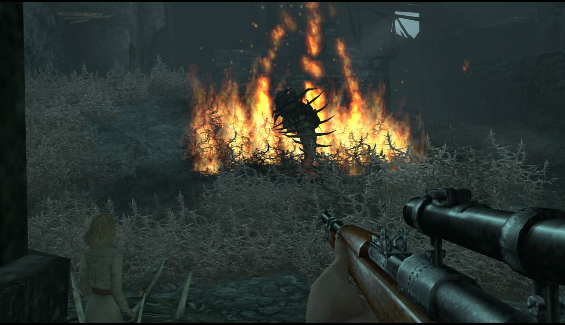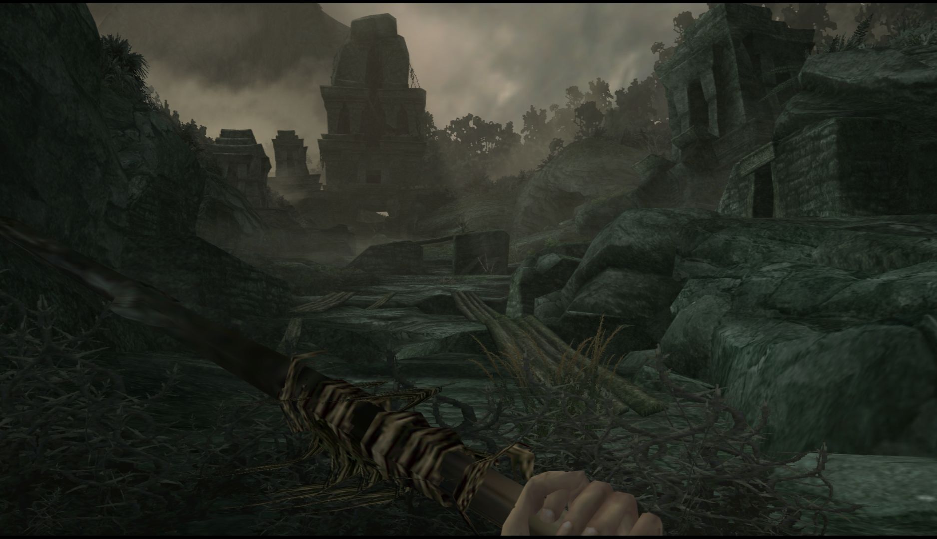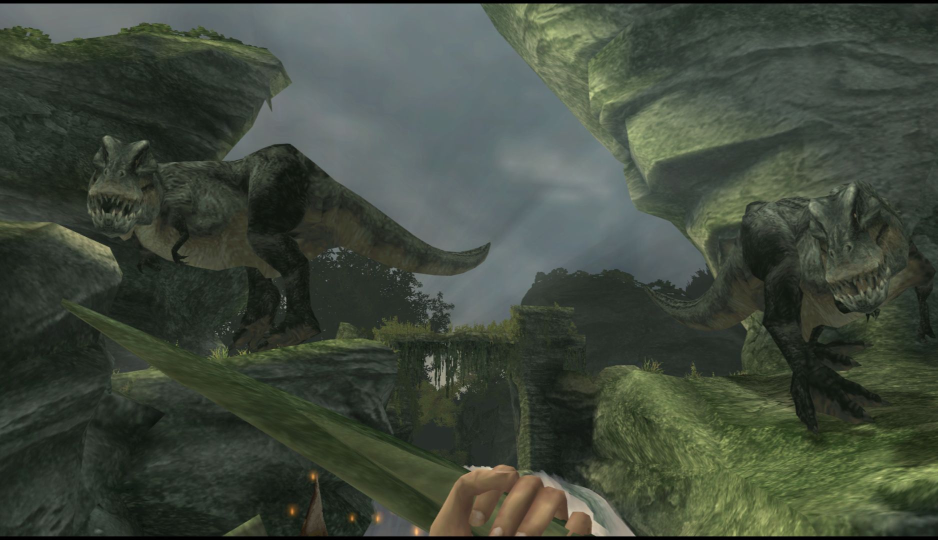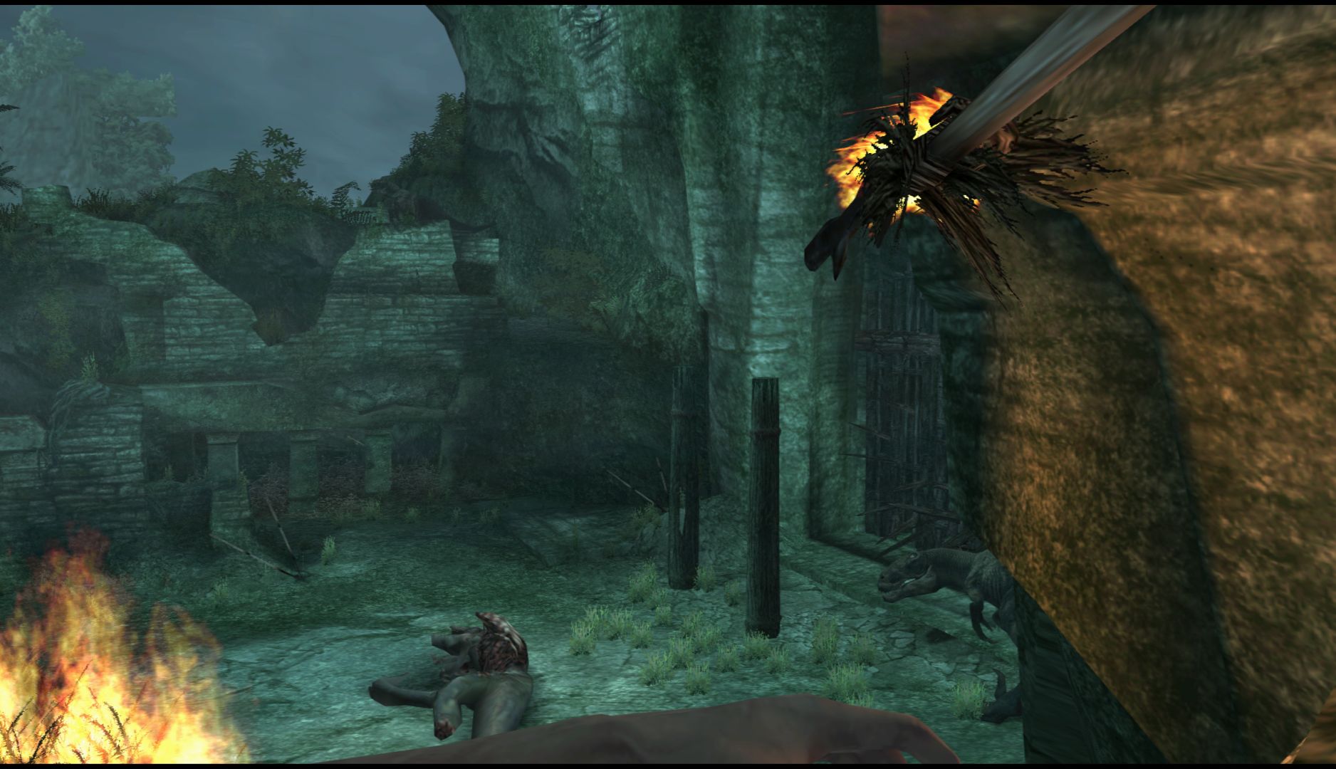 Ammo is quite scarce but there are always spears, bones or sticks for you to use to take care of the many large creatures you’ll encounter. You’ll have to make use of the environment to hide from creatures and work your way around them, waiting for the right moment to strike. When you do find guns, you can only have one at a time so you’ll have to account for what kind of creatures you’ll likely encounter in the current section. It all ends up feeling surprisingly strategic.