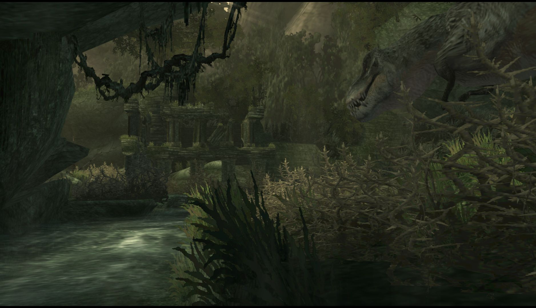 The developers also really cared about the look of the game, not just in the luscious environment, but also from the lack of a HUD. It creates a really cinematic feeling. The gameplay has also been made to suit this, as you have recharging health (generally, two bites from a dangerous creature will kill you) and there’s a button where your character (you play as Jack, the writer) will say how much ammo you have left.