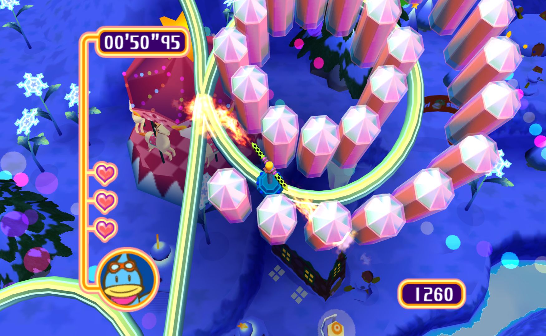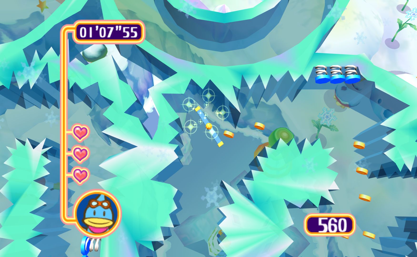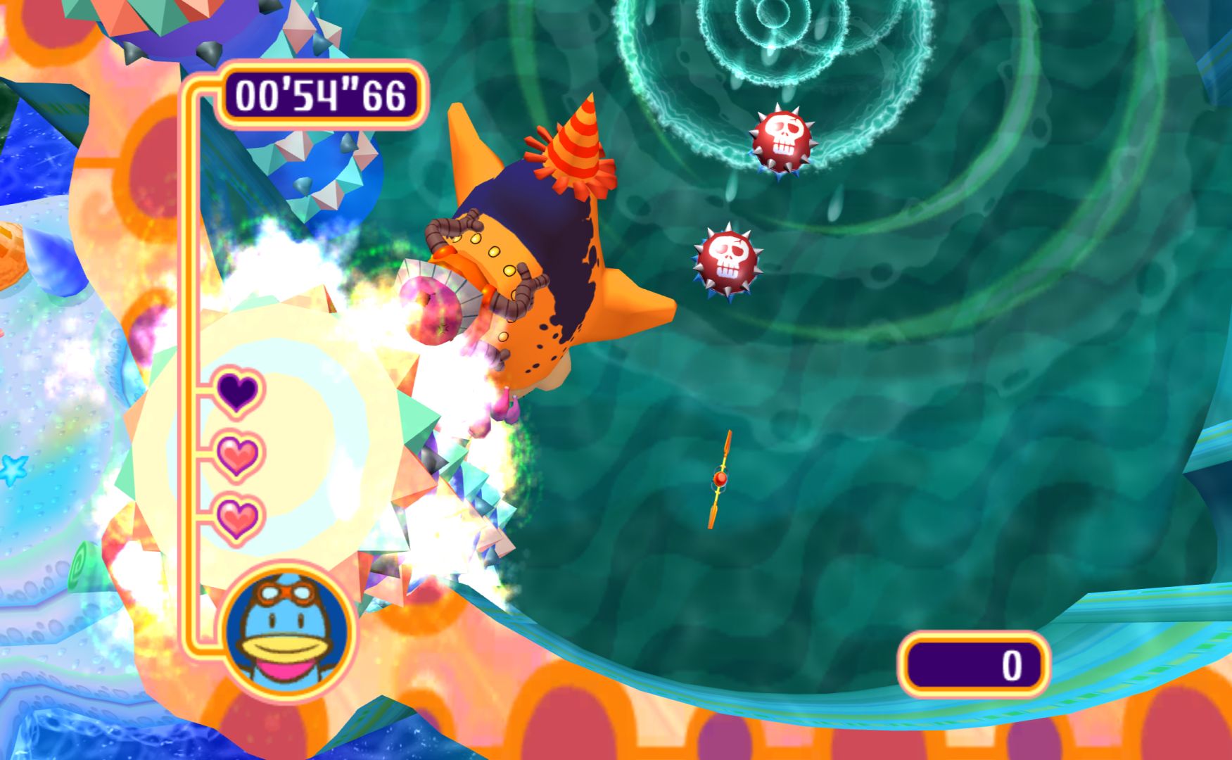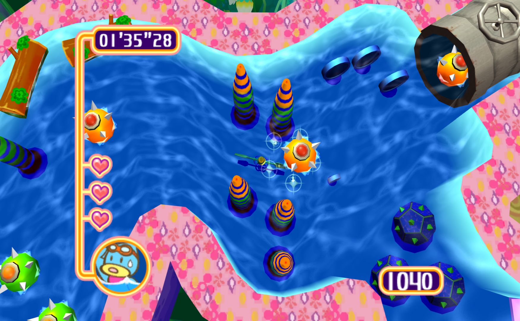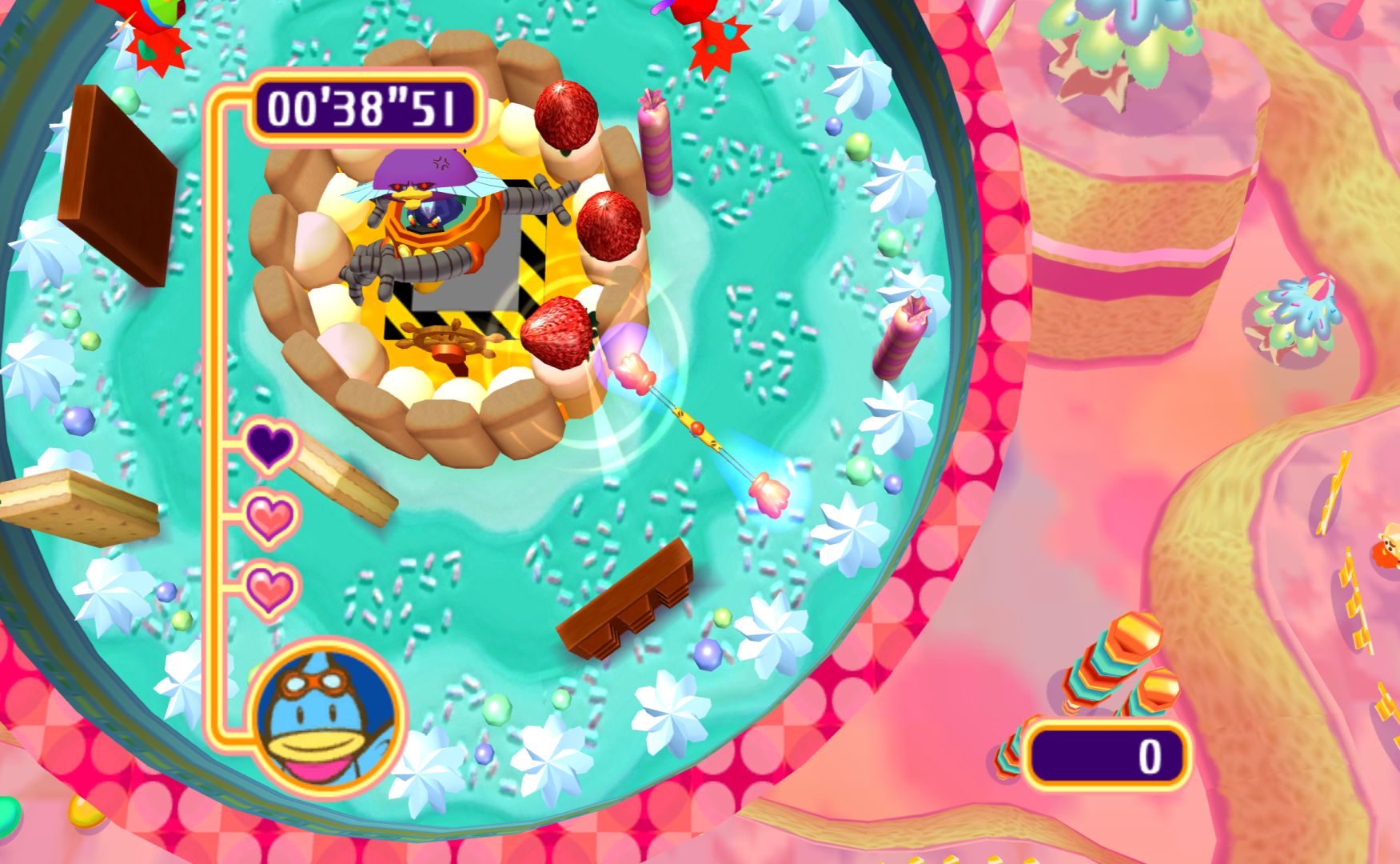 Like the other Kururin games, you control a spinning stick as you navigate mazes. It’s something that sounds simple but is immensely difficult, as the rotation of the stick will alter how difficult certain bends are. Levels have gimmicks to change things up, the simplest one being springs that let you change the direction of the spin.